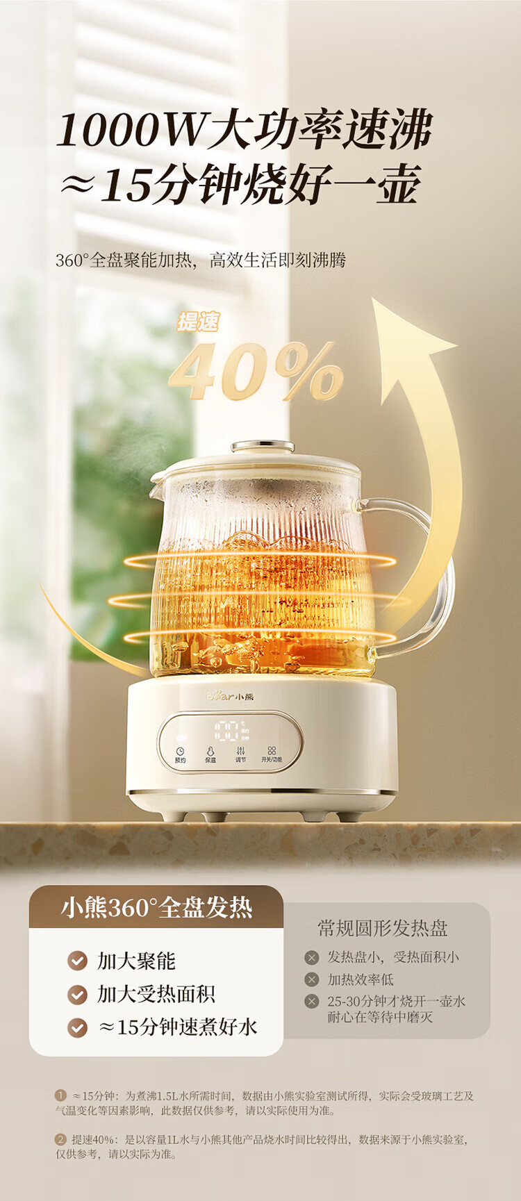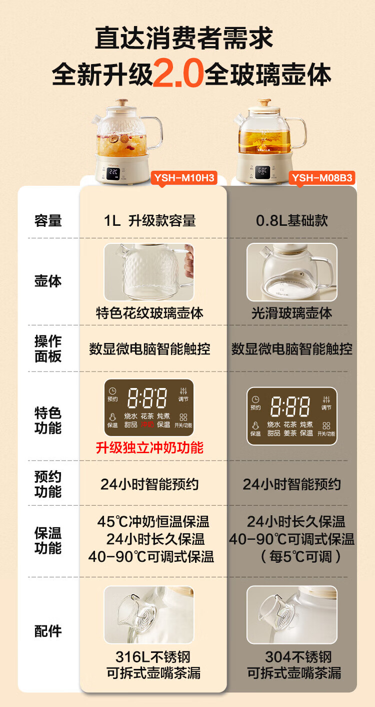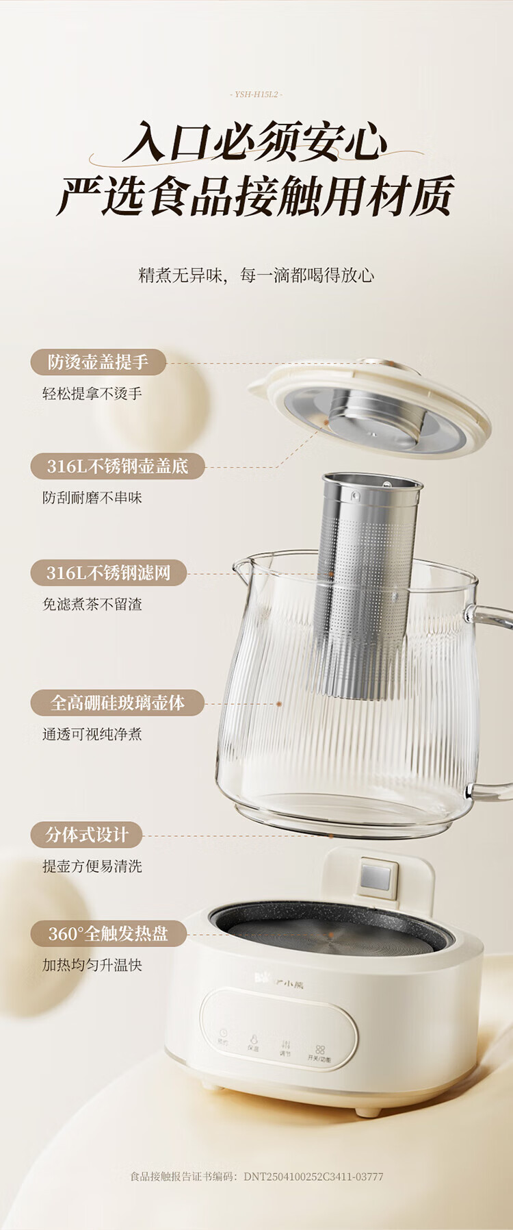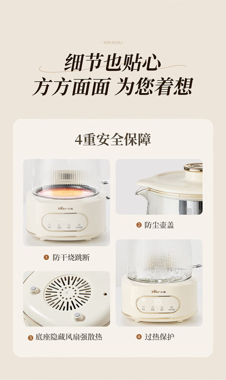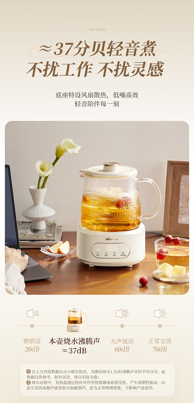 Bear (Bear) all-glass body health pot thermostatic kettle office multi-function teapot flower teapot 0 metal health cup 24h reservation 24h heat preservation 1L YSH-M10H3 all glass