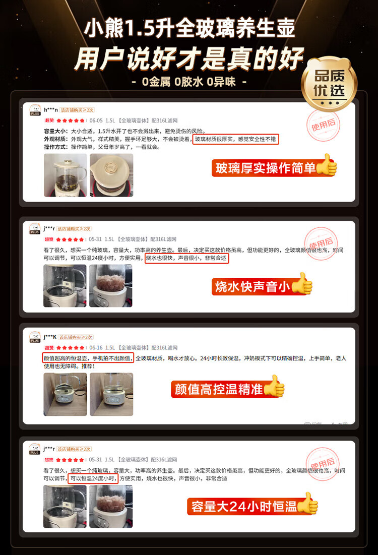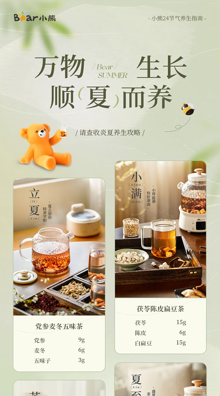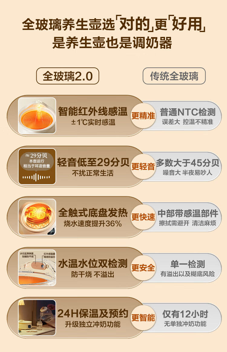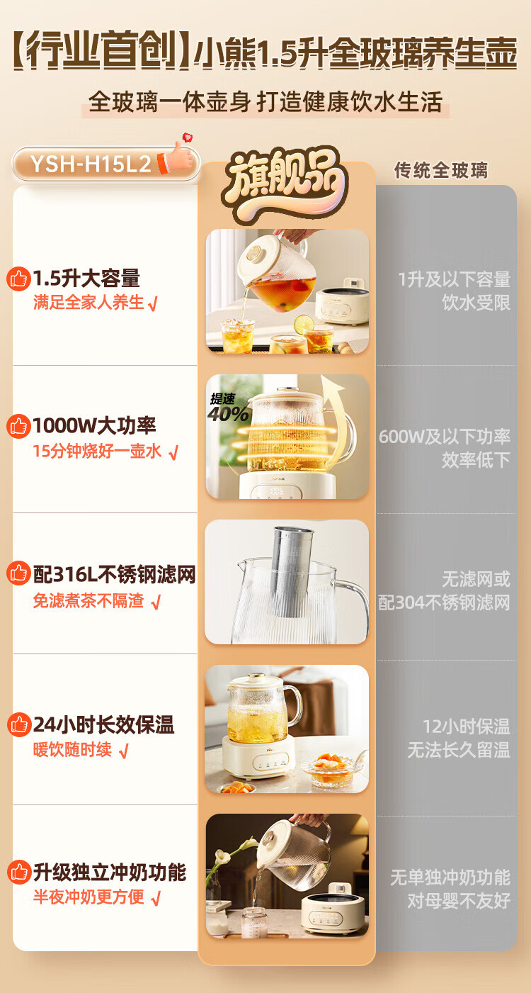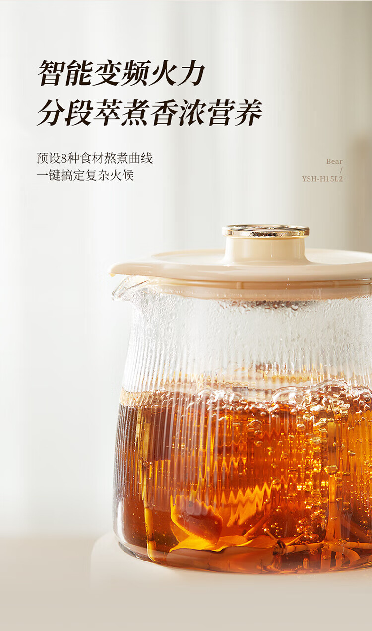 Bear (Bear) all-glass body health pot thermostatic kettle office multi-function teapot flower teapot 0 metal health cup 24h reservation 24h heat preservation 1L YSH-M10H3 all glass