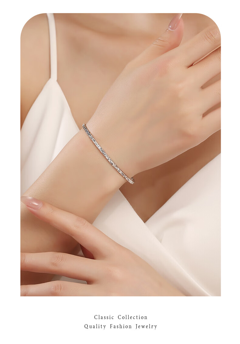 Cuihua Platinum Crushed Ice Bracelet Platinum Jewelry Internet Celebrity Gift Gift Anniversary Gift for Girlfriend and Wife Birthday Gift Crushed Ice Bracelet Total Weight Approximately 6.4g 54#