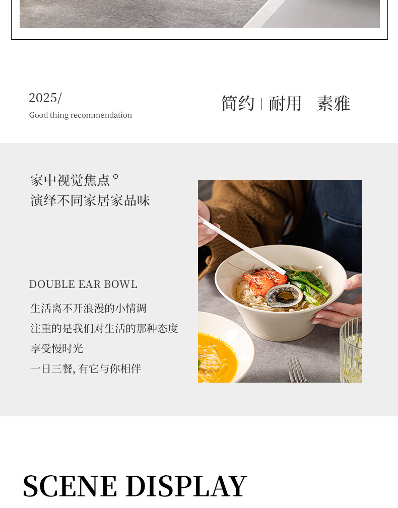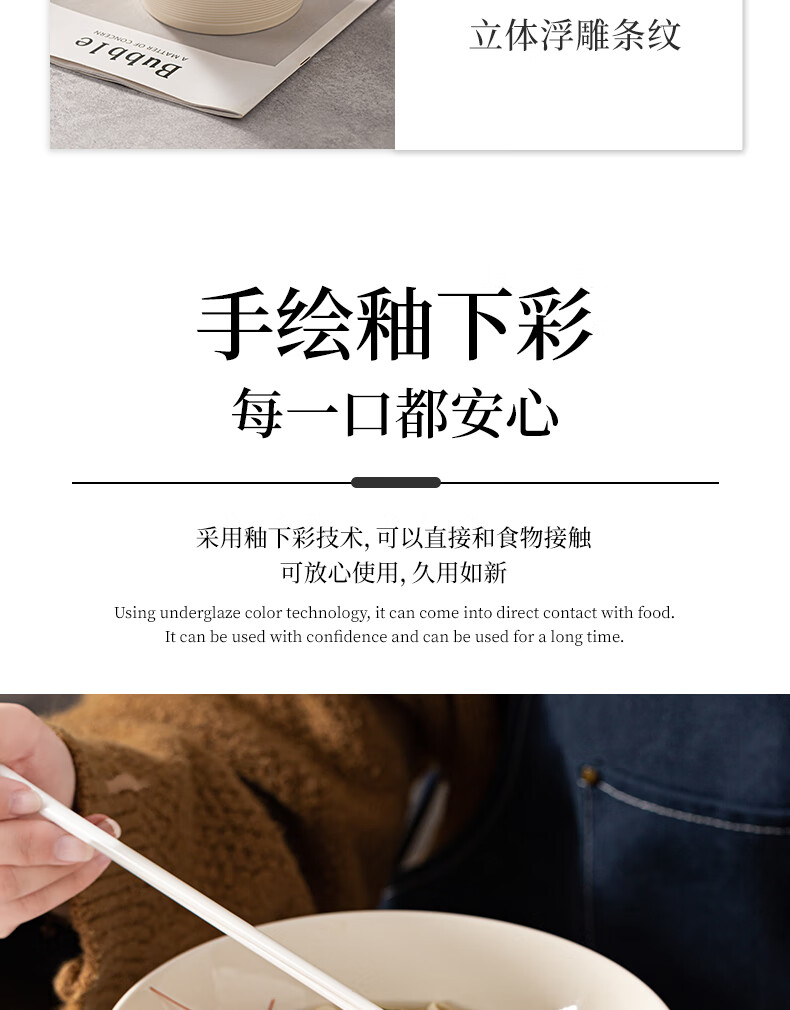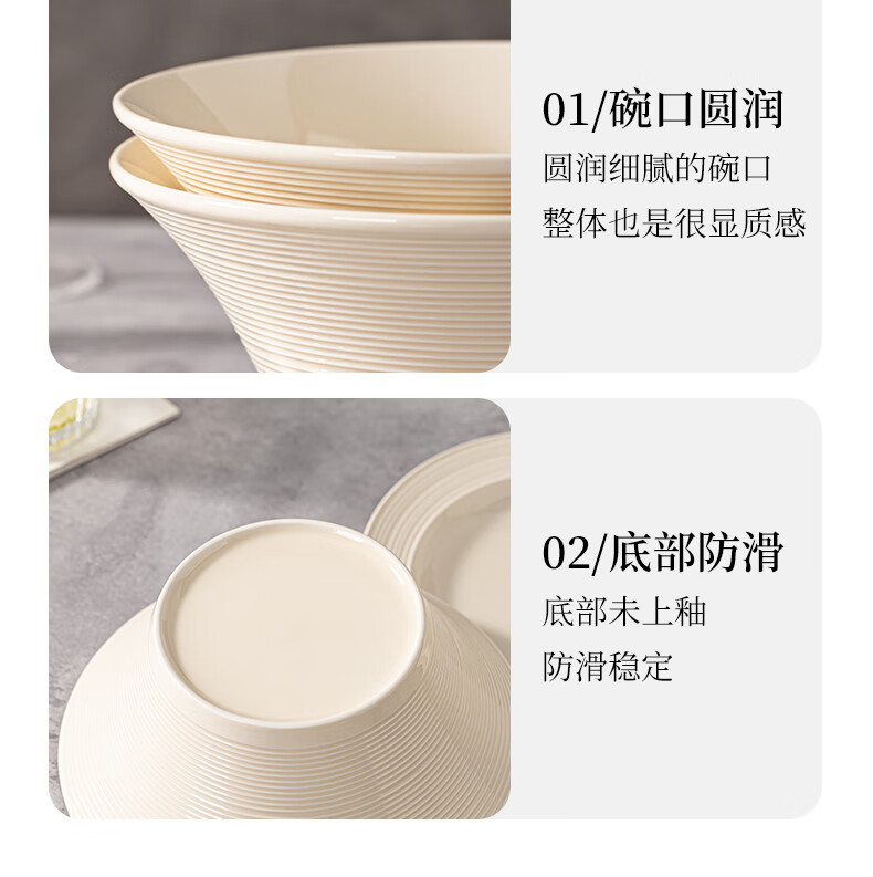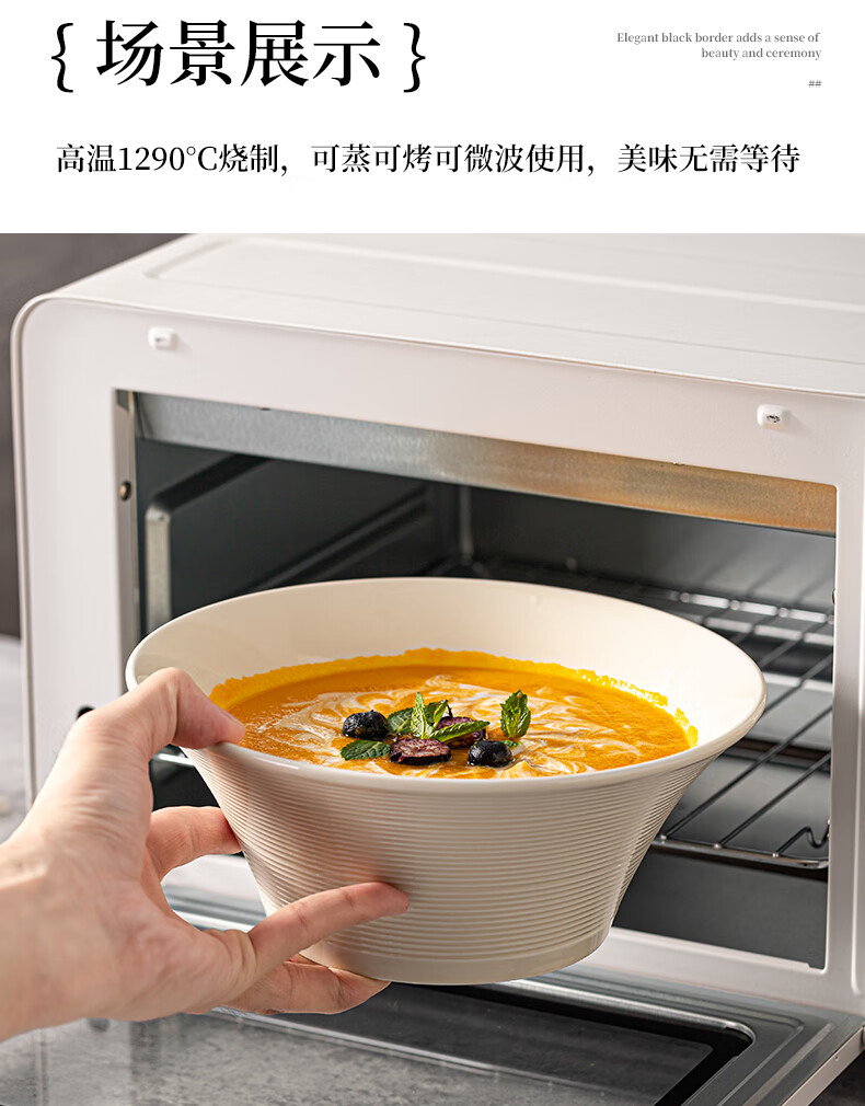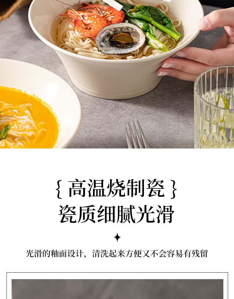Cream threaded ceramic household noodle bowl, bamboo hat bowl, high-end ramen bowl, spicy snail noodle bowl, large soup bowl, 1 8-inch trumpet noodle bowl