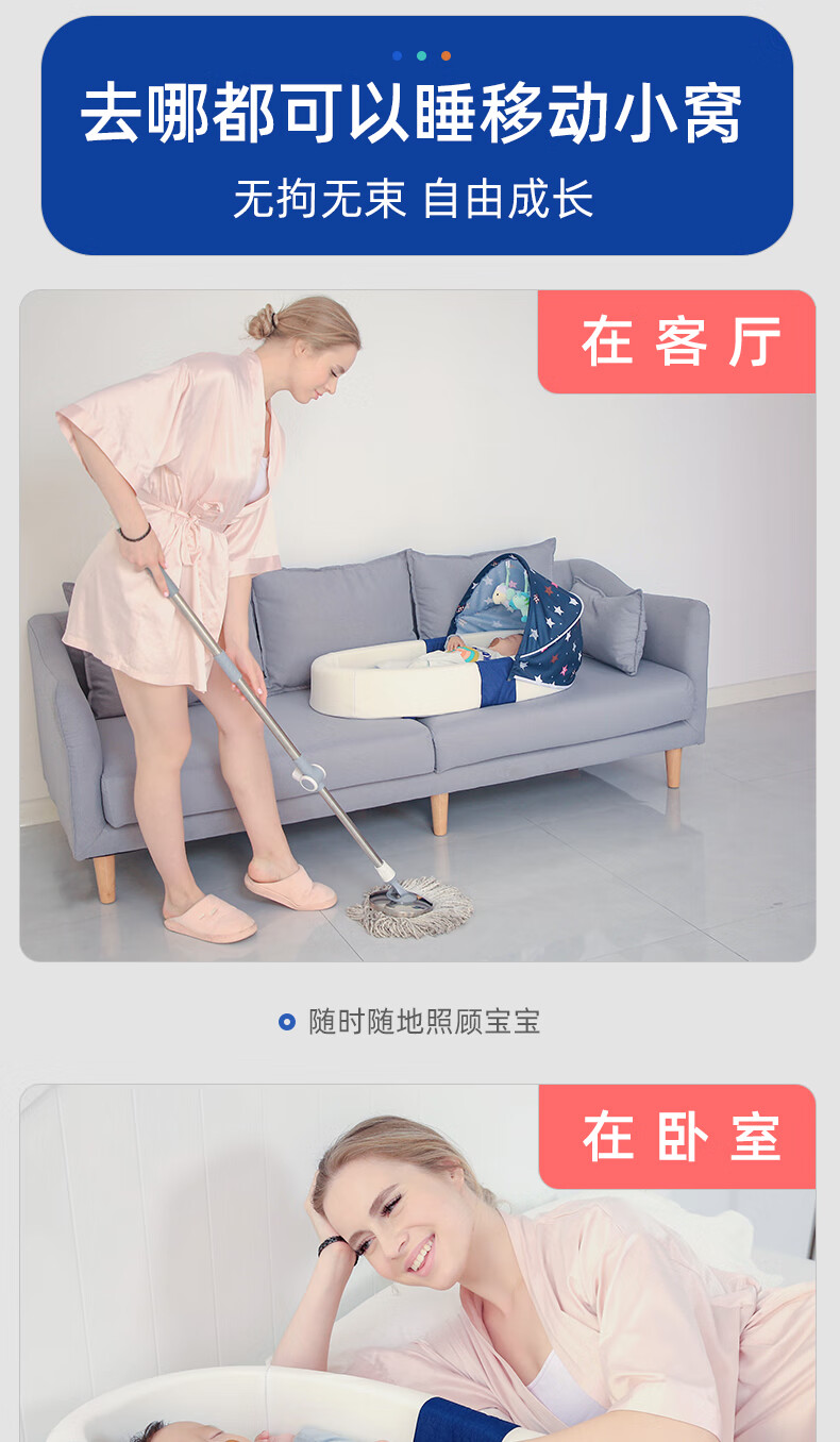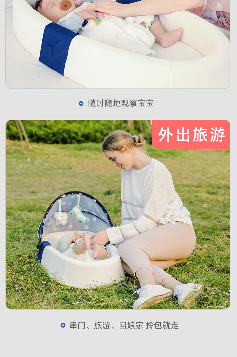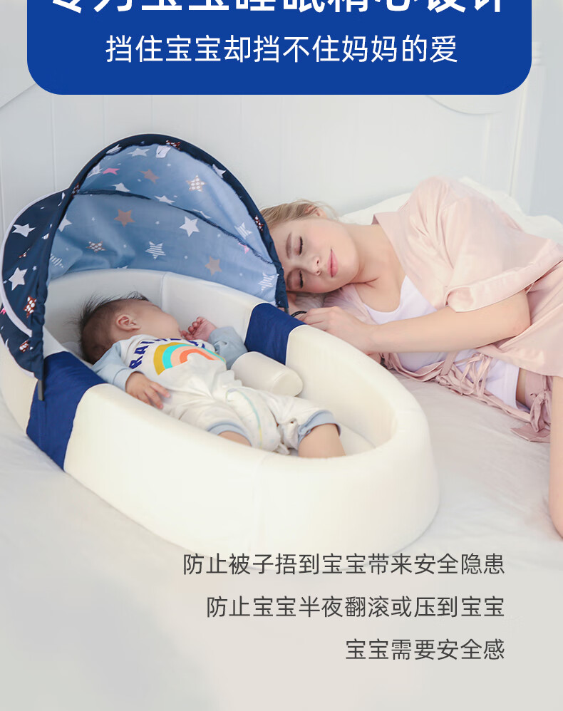 AIBODUO portable crib baby bed-in-bed foldable removable newborn bed bionic bb bed anti-pressure bed-in-bed mommy bag