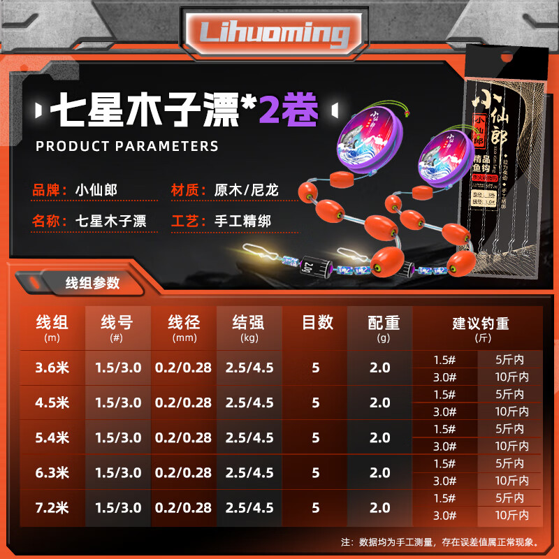 Xiaoxianlang Breaking the Wind Long-Range Cast Seven-Star Float Adjustment-Free Line Set Complete Fishing Line Combination Set Stream Automatic Bottom Finding Muzi Drift 3.6m/1.5# Main Line 1 Roll