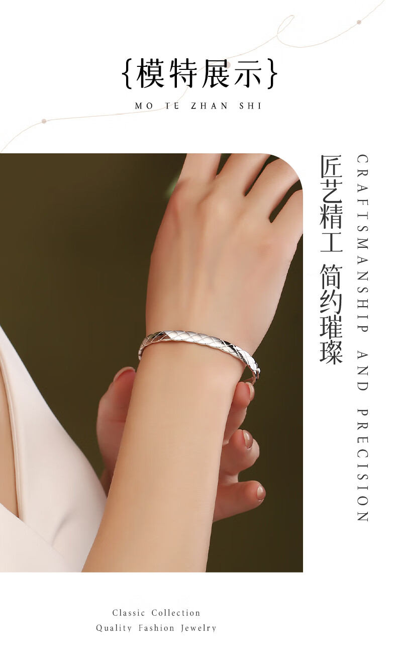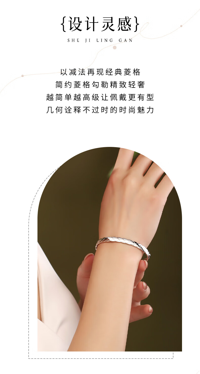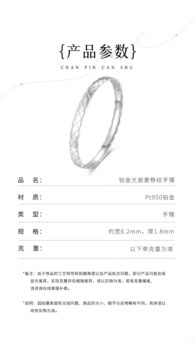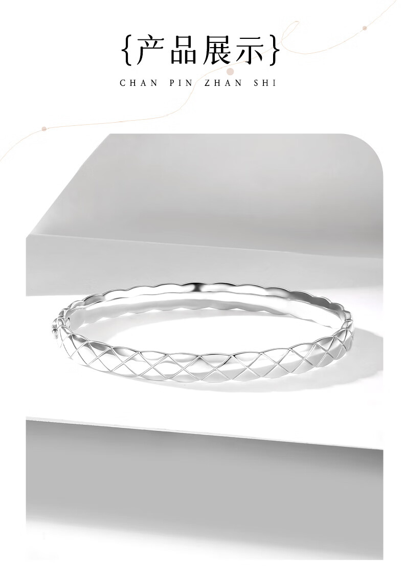 Cuihua Platinum Glossy Diamond Pattern Bracelet Platinum Jewelry Gift Anniversary Gift for Girlfriend and Wife Birthday Gift Glossy Diamond Pattern Bracelet About 35g 54#