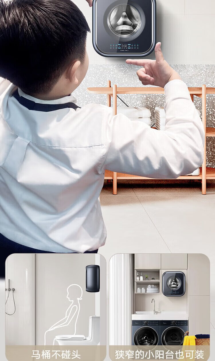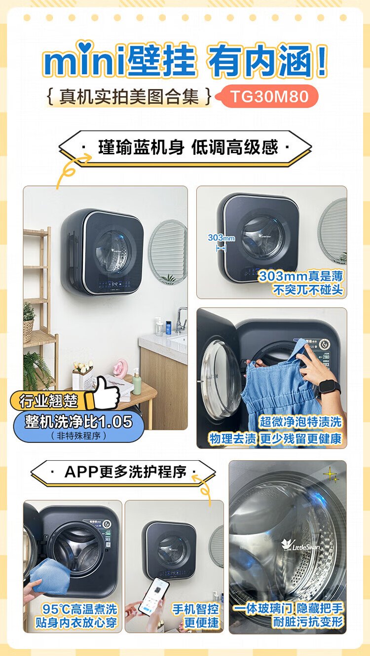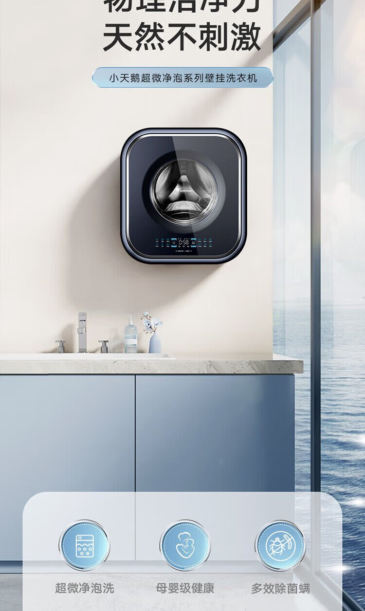 Mini lavadora totalmente automática de pared LittleSwan 3KG, cubo de agua, esterilización con vapor a alta temperatura, eliminación de ácaros con un solo clic, diseño sin dobleces, funcionamiento minimalista, lavado y secado integrados TD30M80W, esterilización y eliminación de ácaros