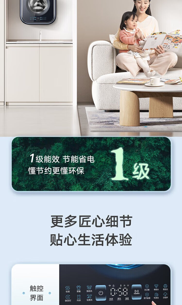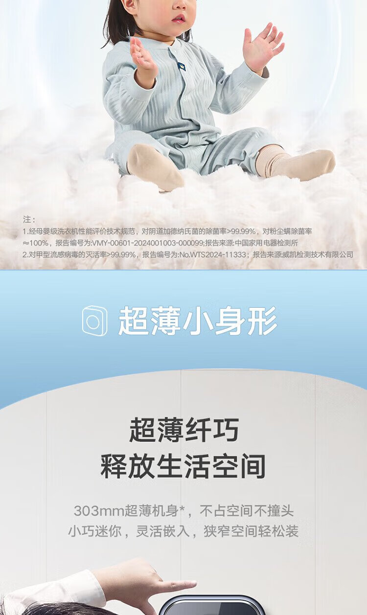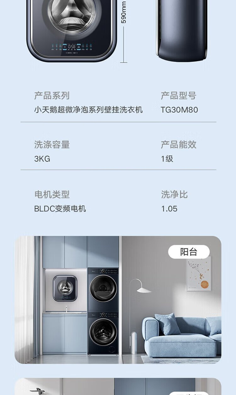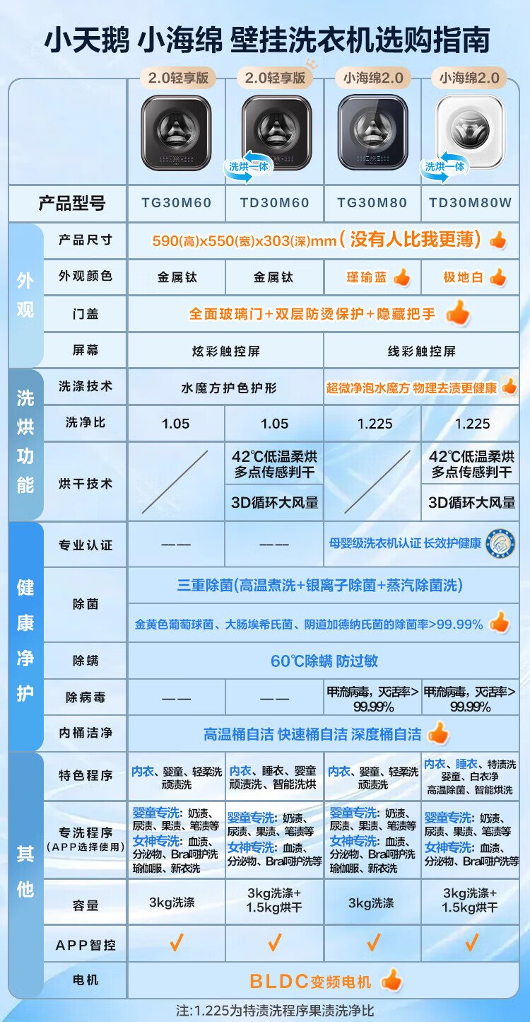 Mini lavadora totalmente automática de pared LittleSwan 3KG, cubo de agua, esterilización con vapor a alta temperatura, eliminación de ácaros con un solo clic, diseño sin dobleces, funcionamiento minimalista, lavado y secado integrados TD30M80W, esterilización y eliminación de ácaros