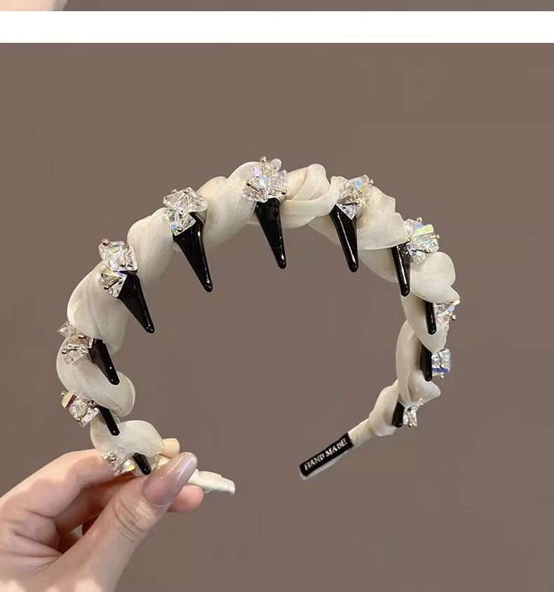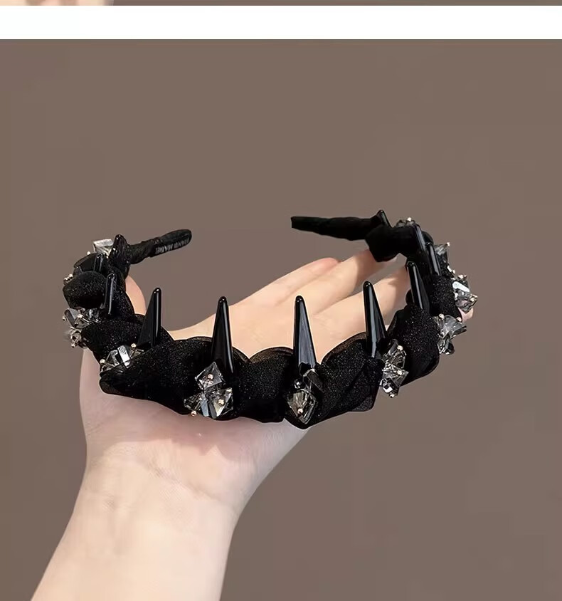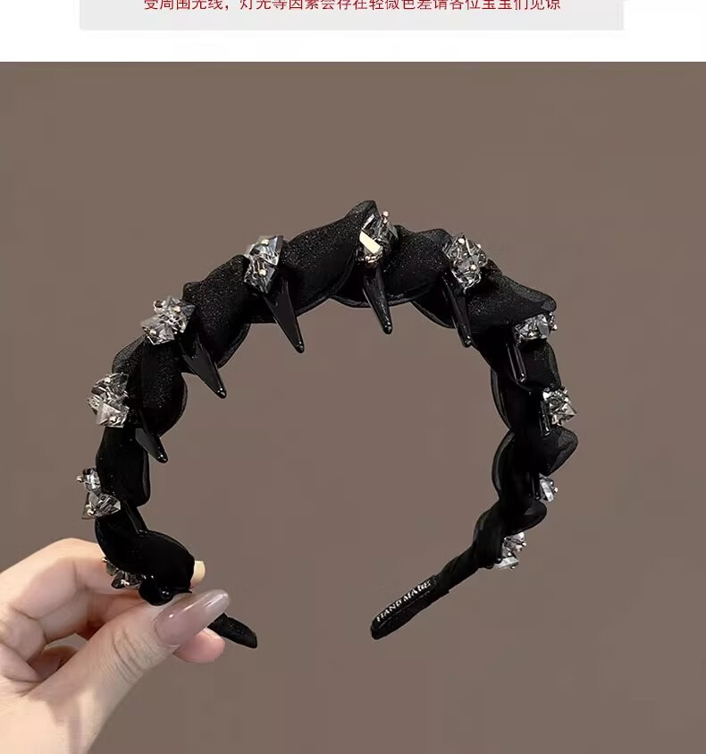 Two Worlds Happy Hairband for Women 2025 New High-end Headband with Teeth Anti-Slip Face Wash Headband High-end Rhinestone Hairpin Light Luxurious Hair Accessory Black