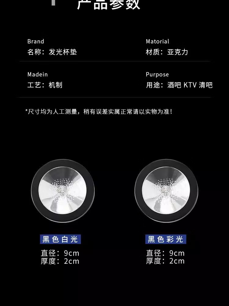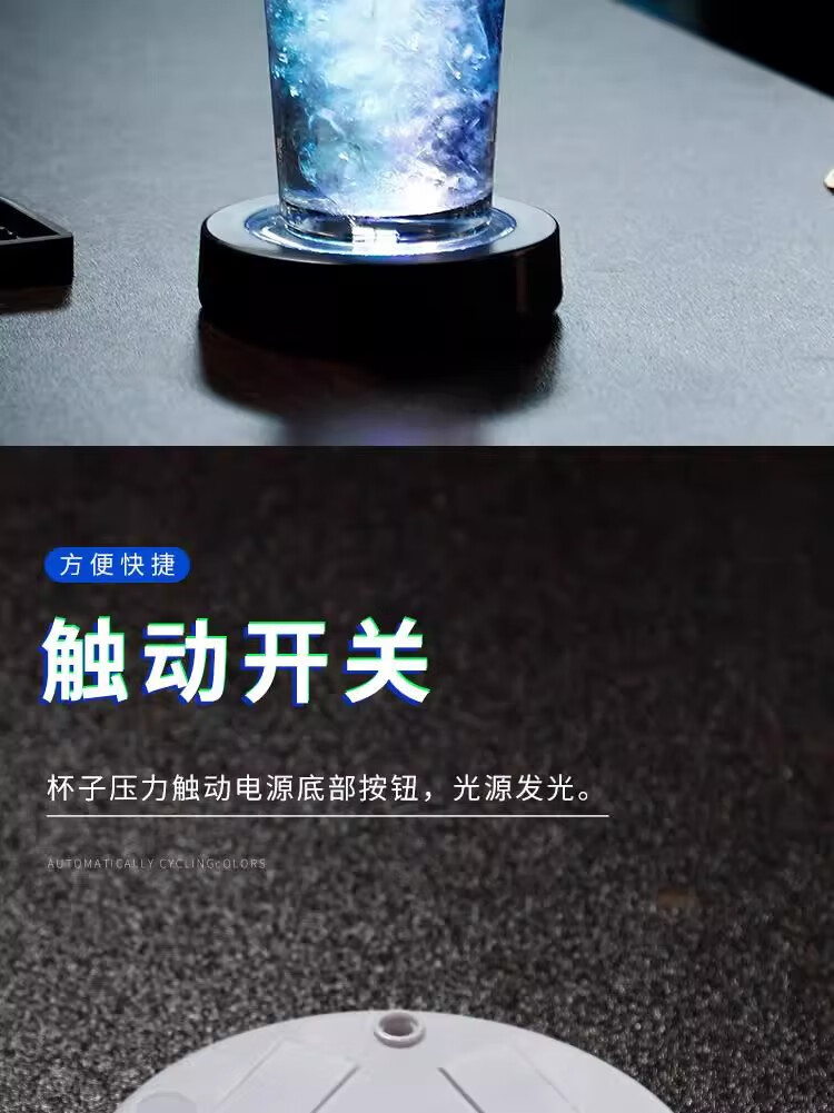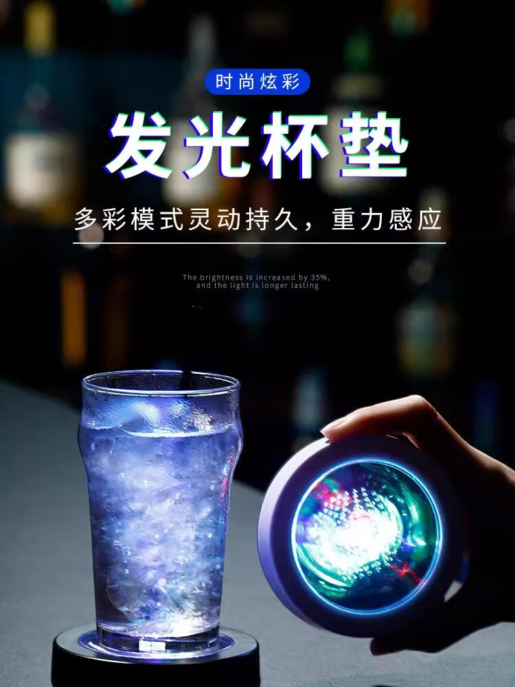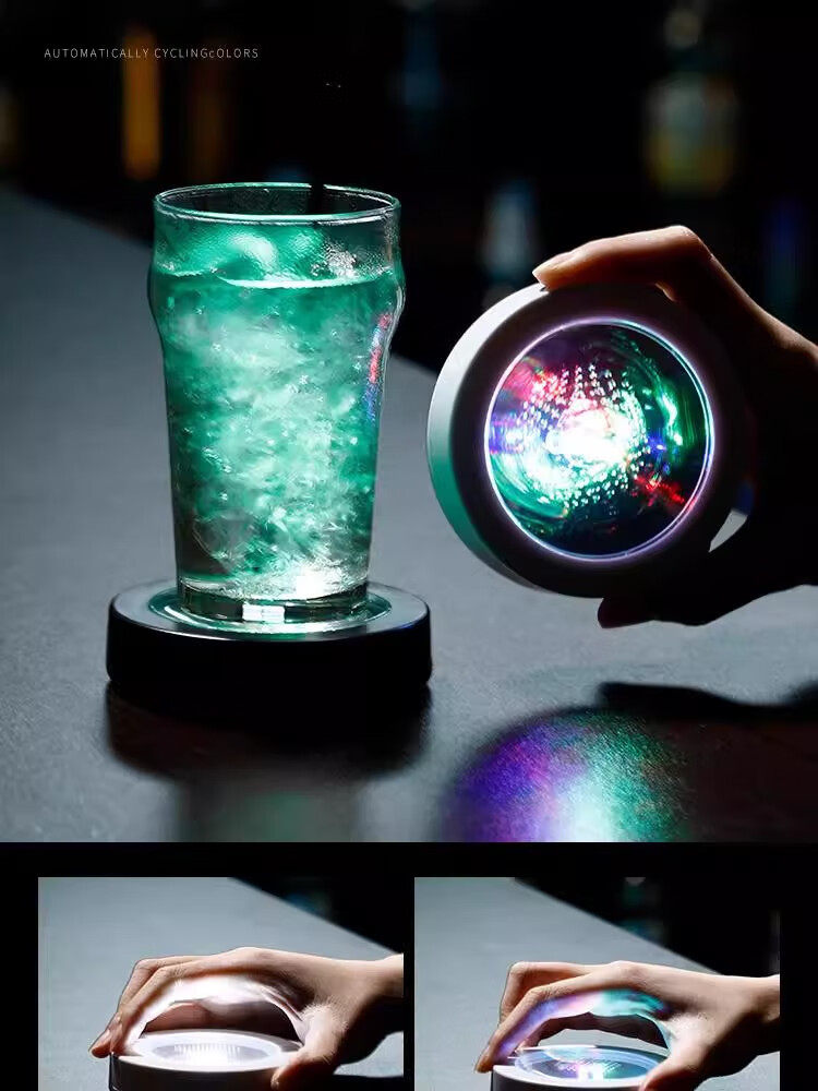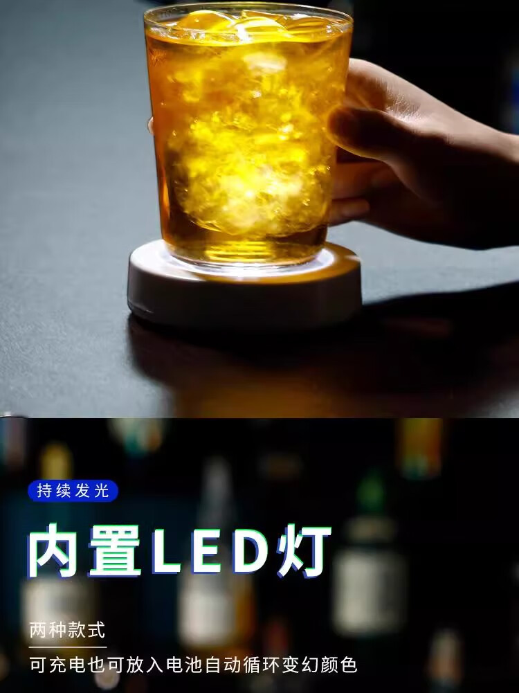 Mangong German quality luminous coasters led bar cocktail base light wine glass base light luminous bartending base white model white light (free 3 batteries)