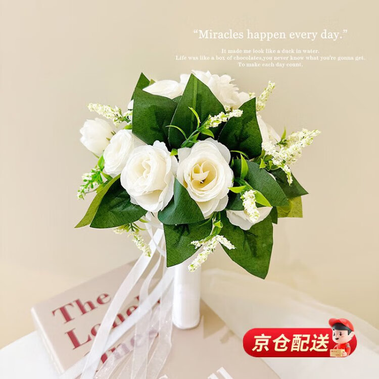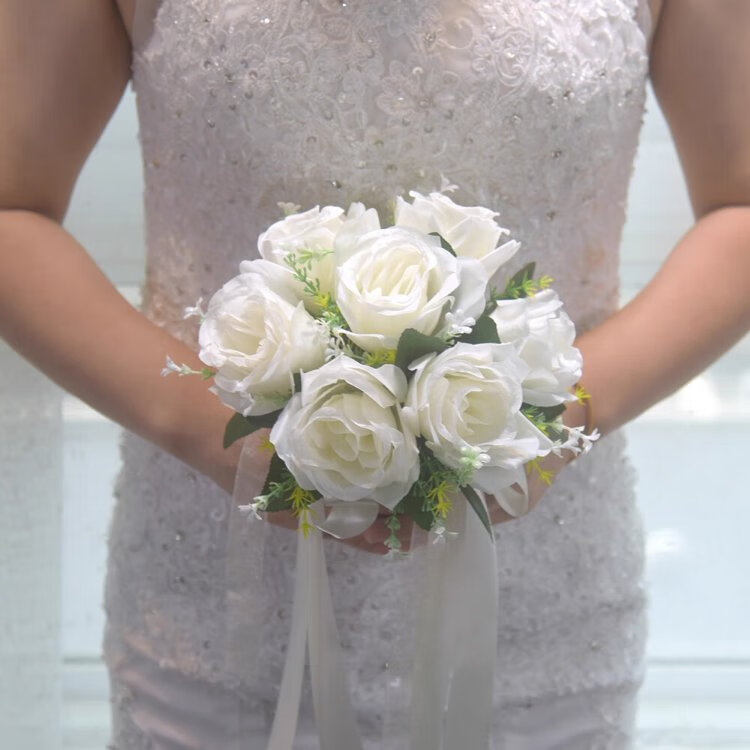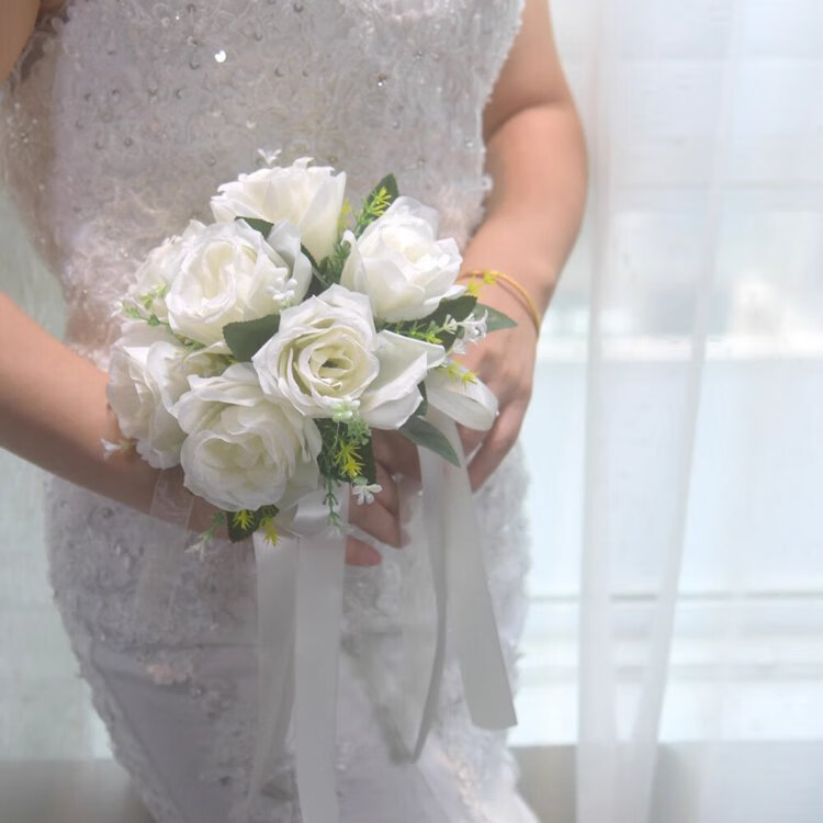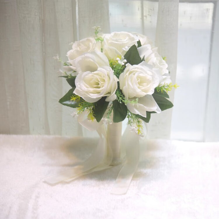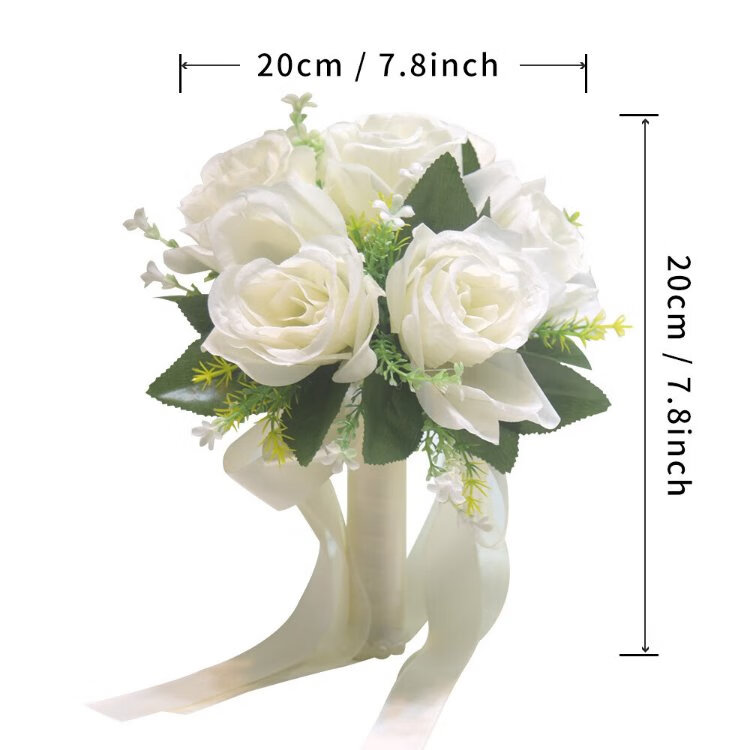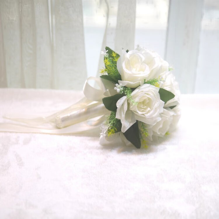Miao Yijia holds flowers in hand to receive certificate, simulated flowers, photo props, wedding bouquet, proposal, engagement bride, white rose fake flower, white rose hand held bouquet 20*20cm