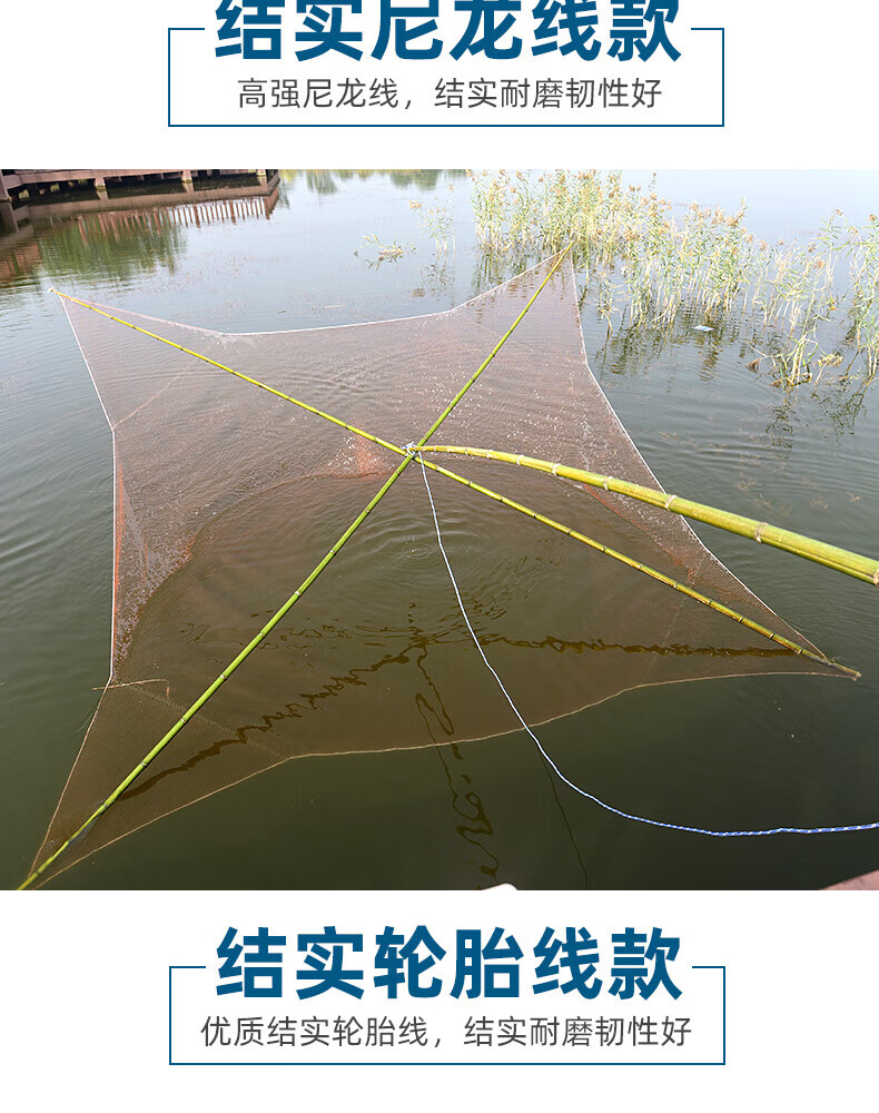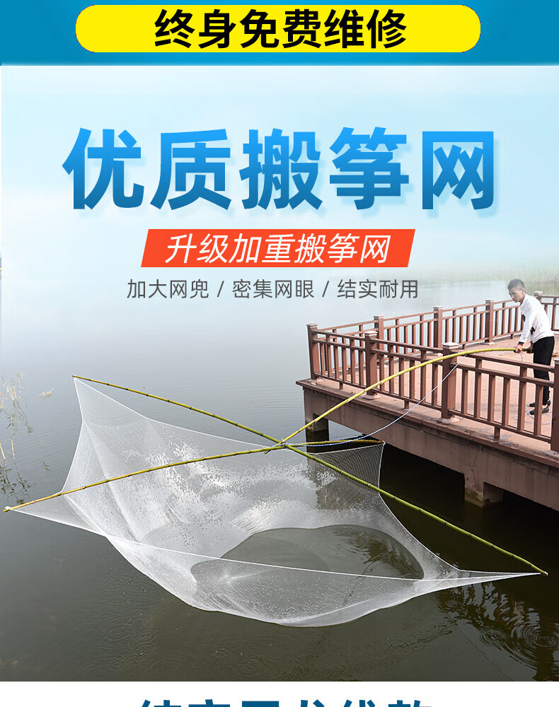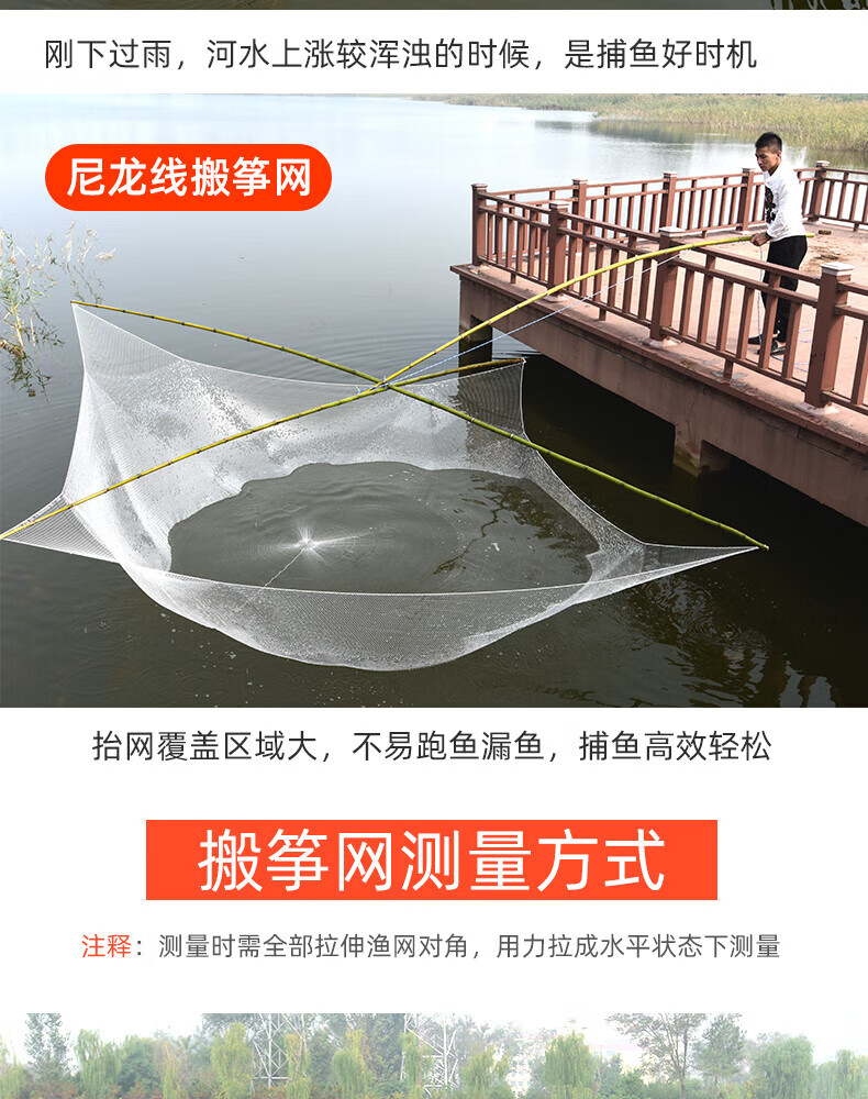 Fishing source moving kite net, automatic fishing net, fishing net, small moving net, large lifting net, pulling net, lifting net, pulling net, lifting net, upgraded nylon line, half-finger mesh, 3x3 meters