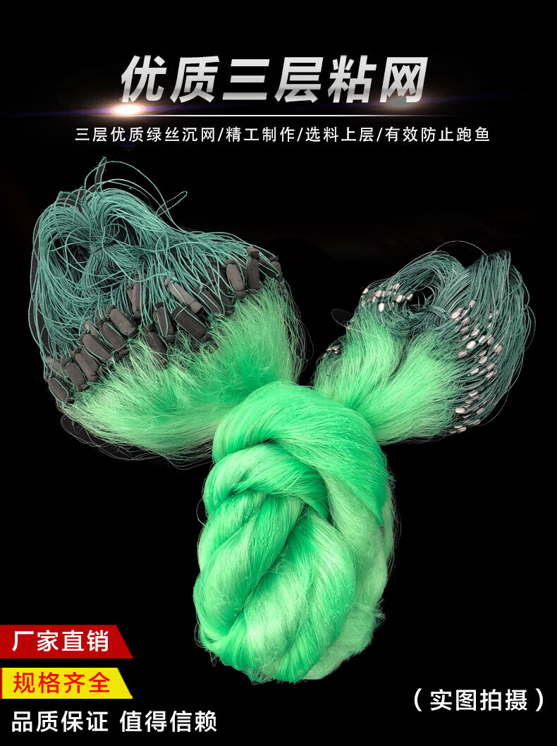 Fishing source green silk fishing net hanging net sticky mesh wire net fishing net single layer floating net fish net three layer sinking net 100 meters net fishing gear green silk three layer sinking 3 meters 3 fingers 100 meters
