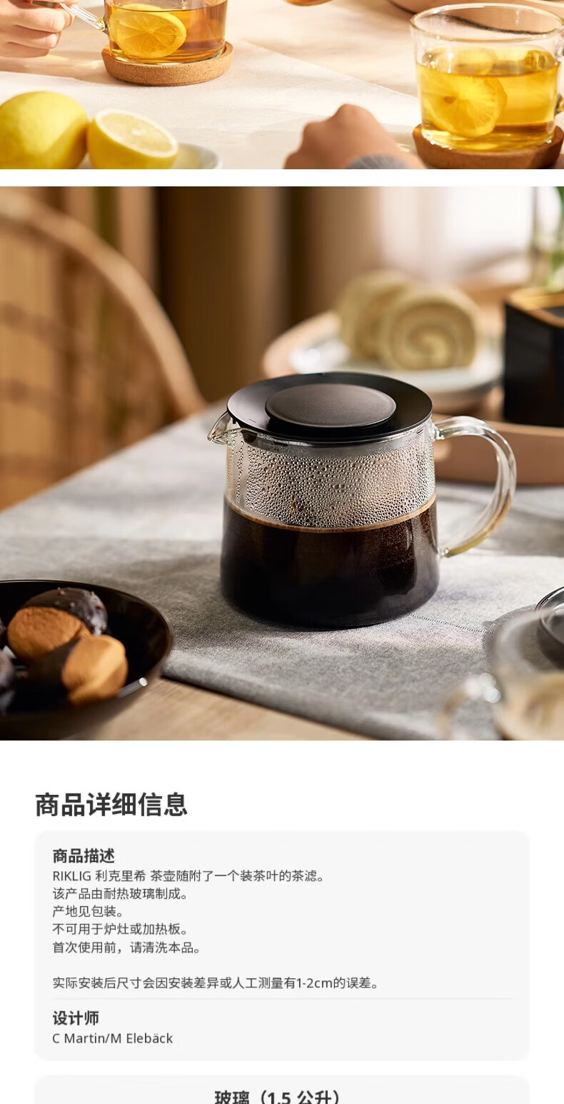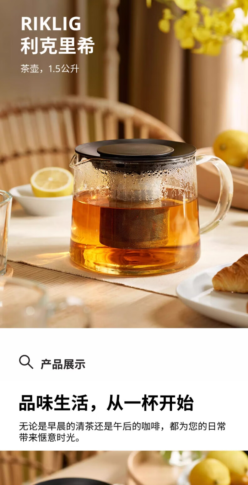 IKEA (IKEA) RIKLIG glass teapot glass household teapot large capacity glass tea set glass teapot 1.5L