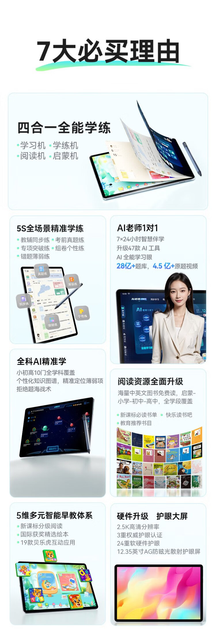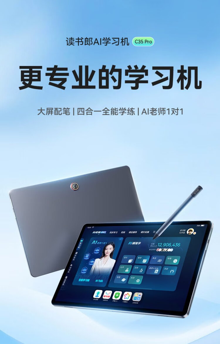 Dushulang C35pro learning machine AI intelligent student tablet early education machine English point reading machine primary school to high school curriculum synchronization general tutor machine learning machine tutoring machine picture book reading 2025 new product C35pro super cost-effective