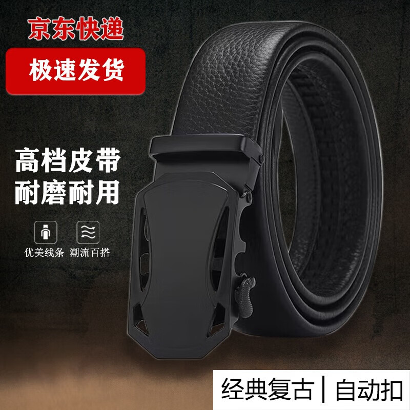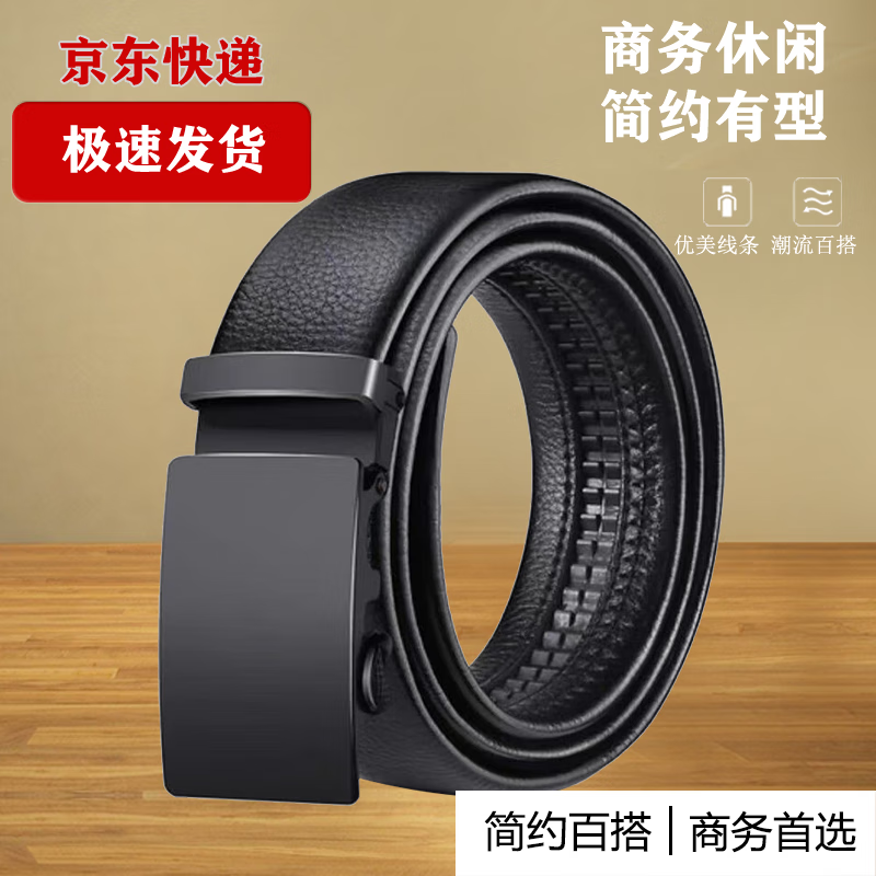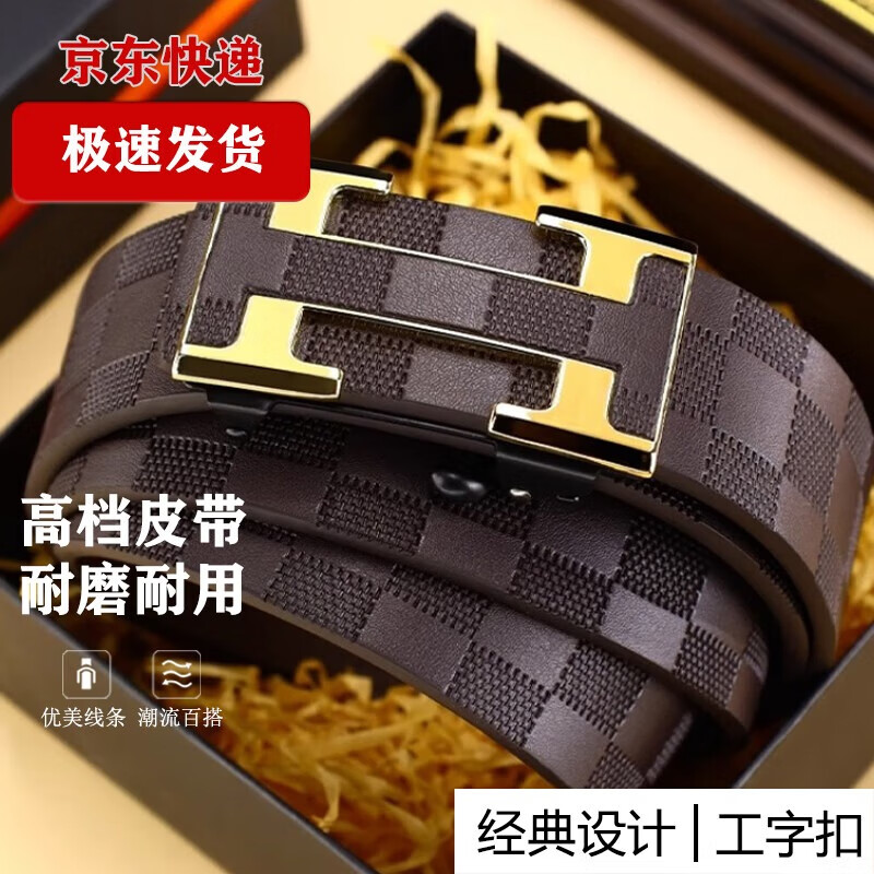 Automatic buckle men's trouser belt, fashionable and versatile, trendy casual belt, daily business men's trouser belt, gold edge B buckle 120cm