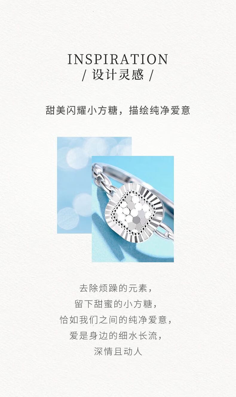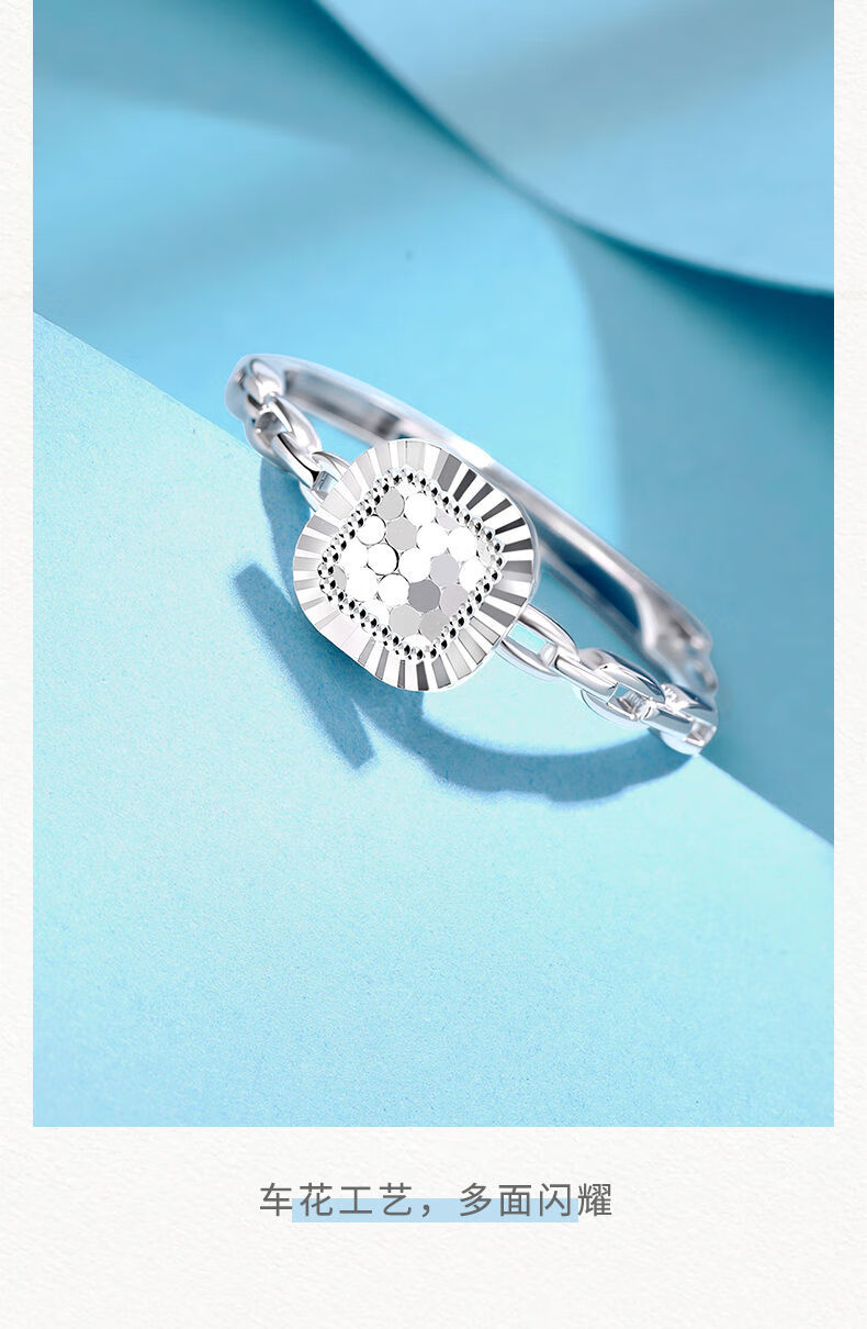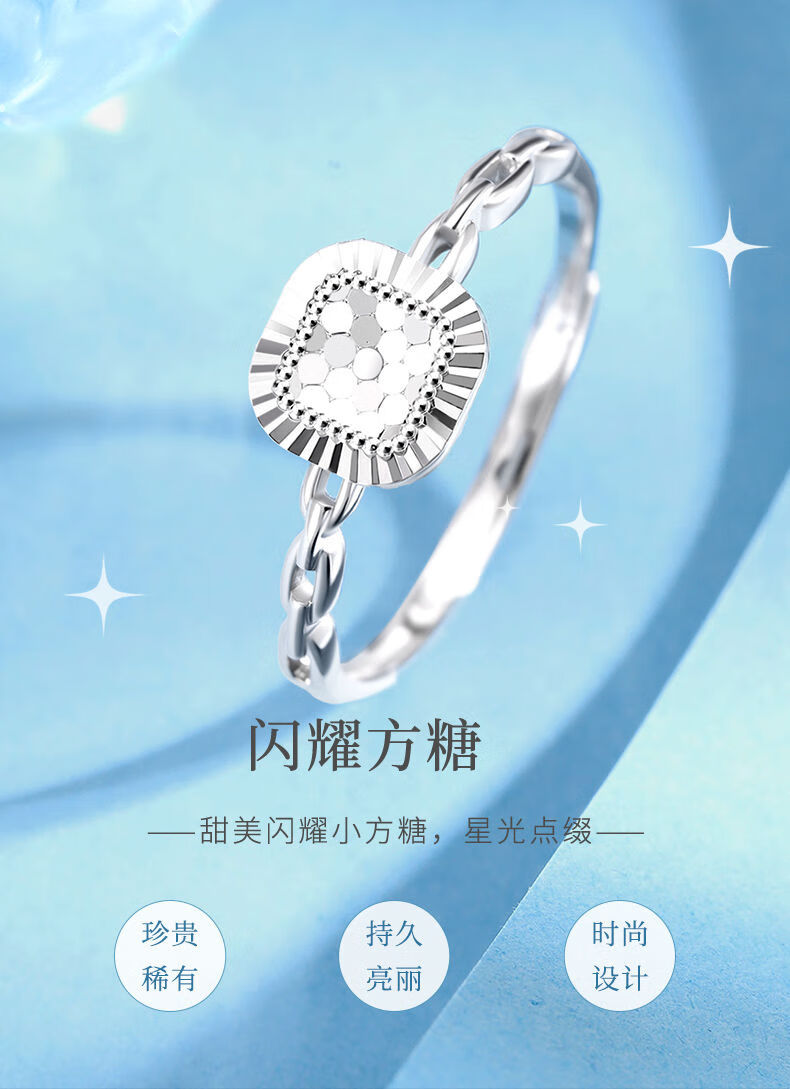 Zokai Platinum Ring Shining Sugar Cube Pt950 Platinum Hand Jewelry Live Mouth Adjustable Ring New Style Gift for Girlfriend Ring/Return More, Replenish Less (Live Mouth 10#-16#) 2.35g