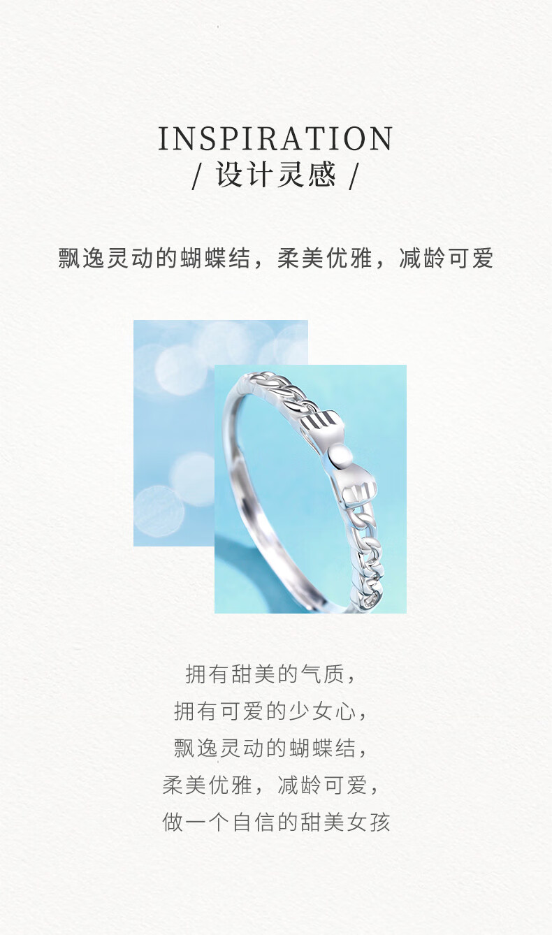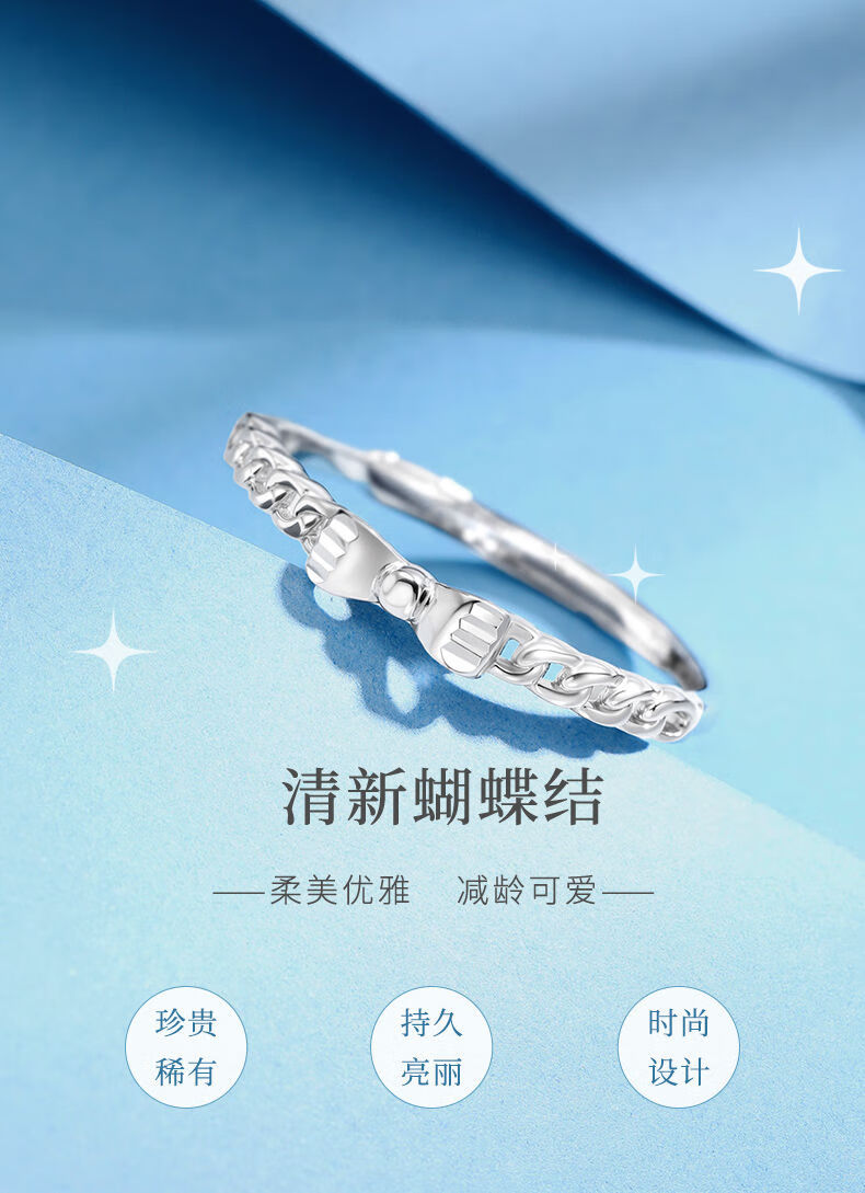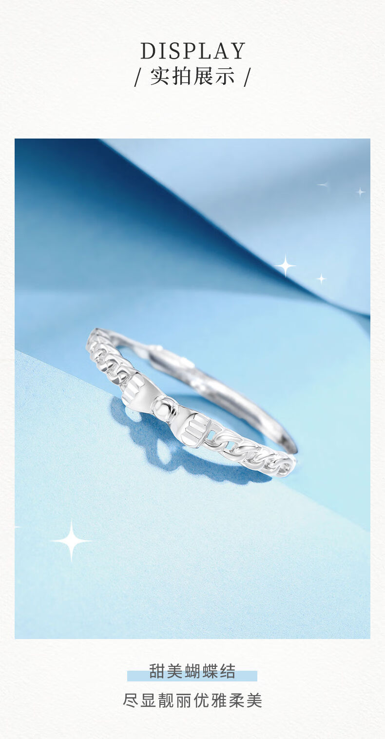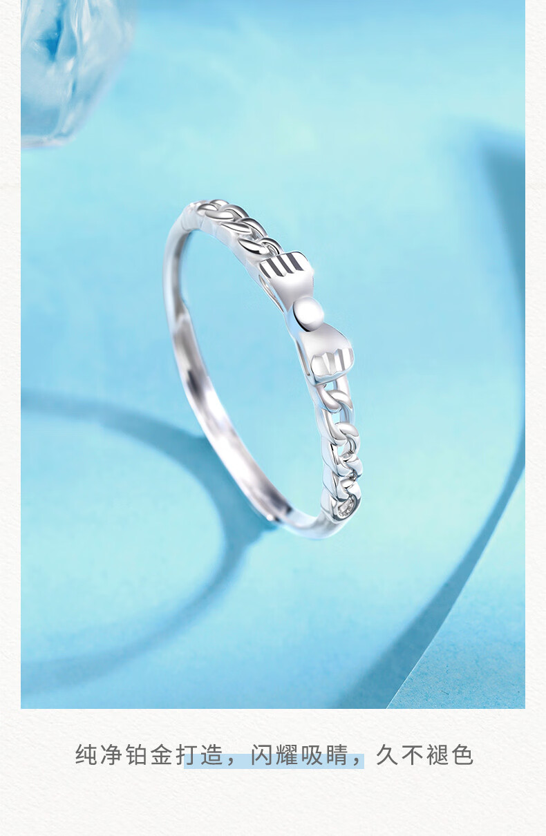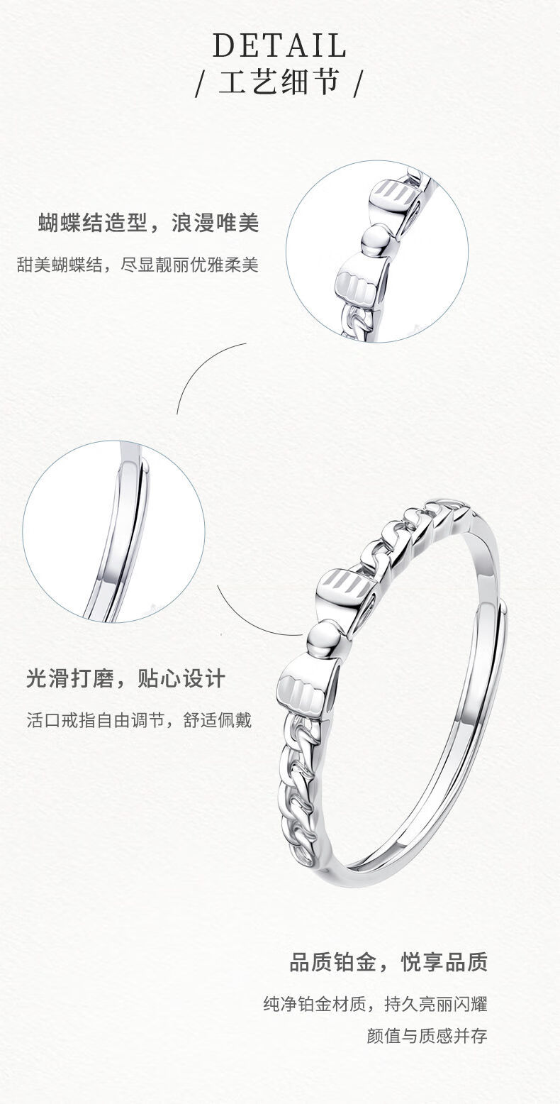Zokai Platinum Ring Fresh Bow Pt950 Platinum Live Mouth Adjustable Hand Jewelry New Women's Ring Gift for Girlfriend Ring/Return More, Replenish Less (Live Mouth 10#-16#) 1.69g