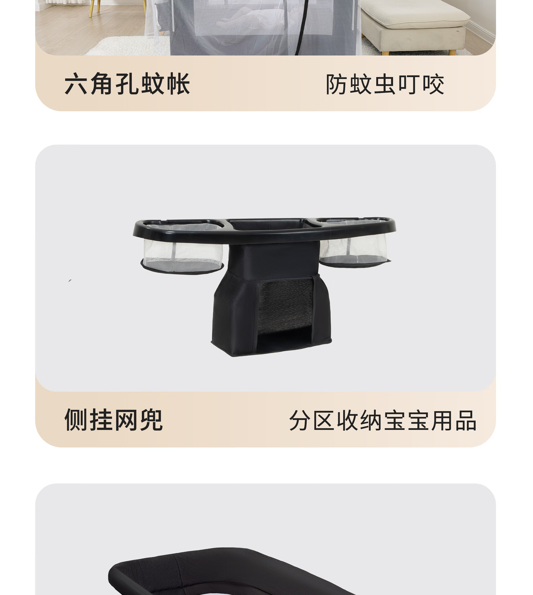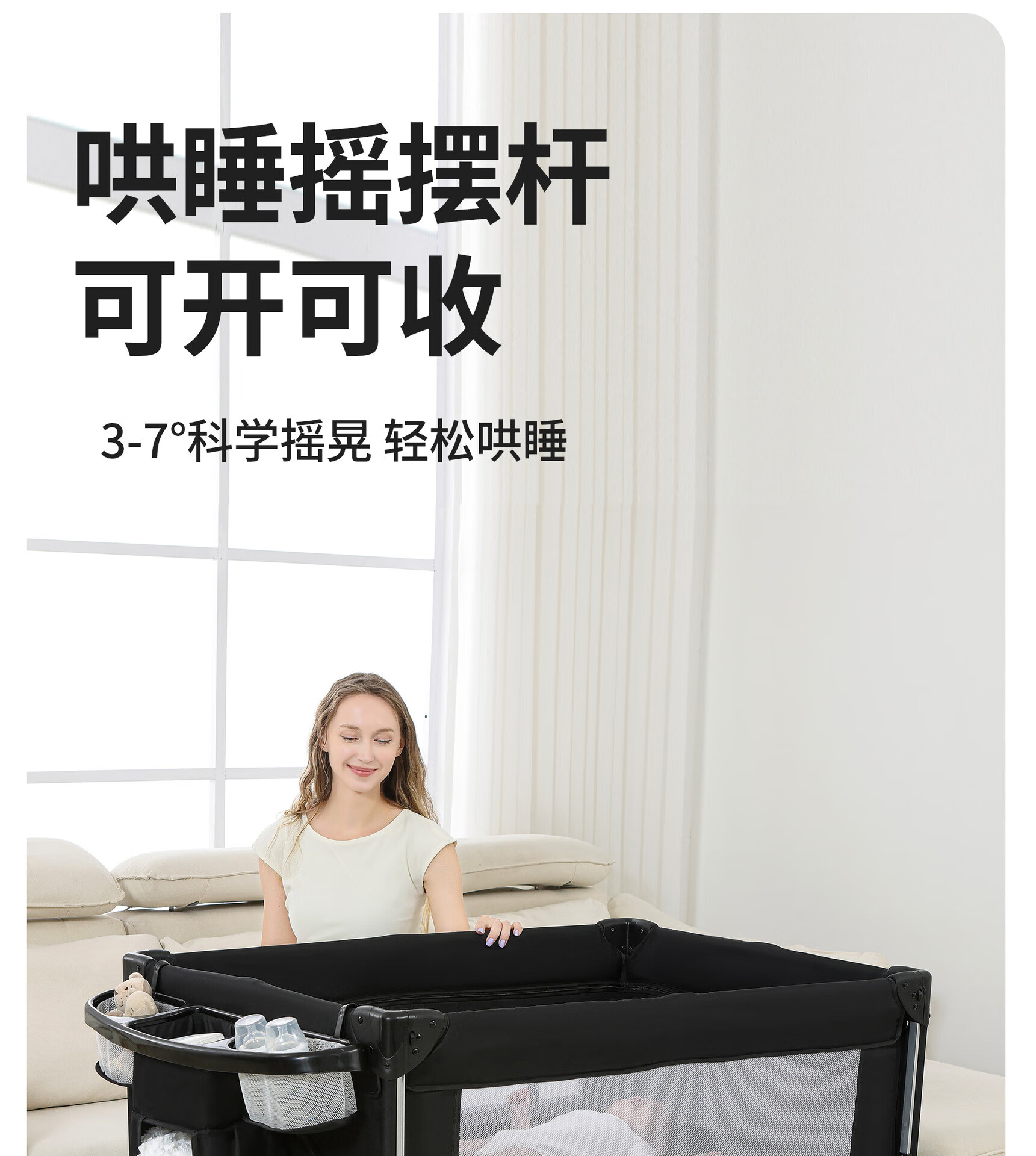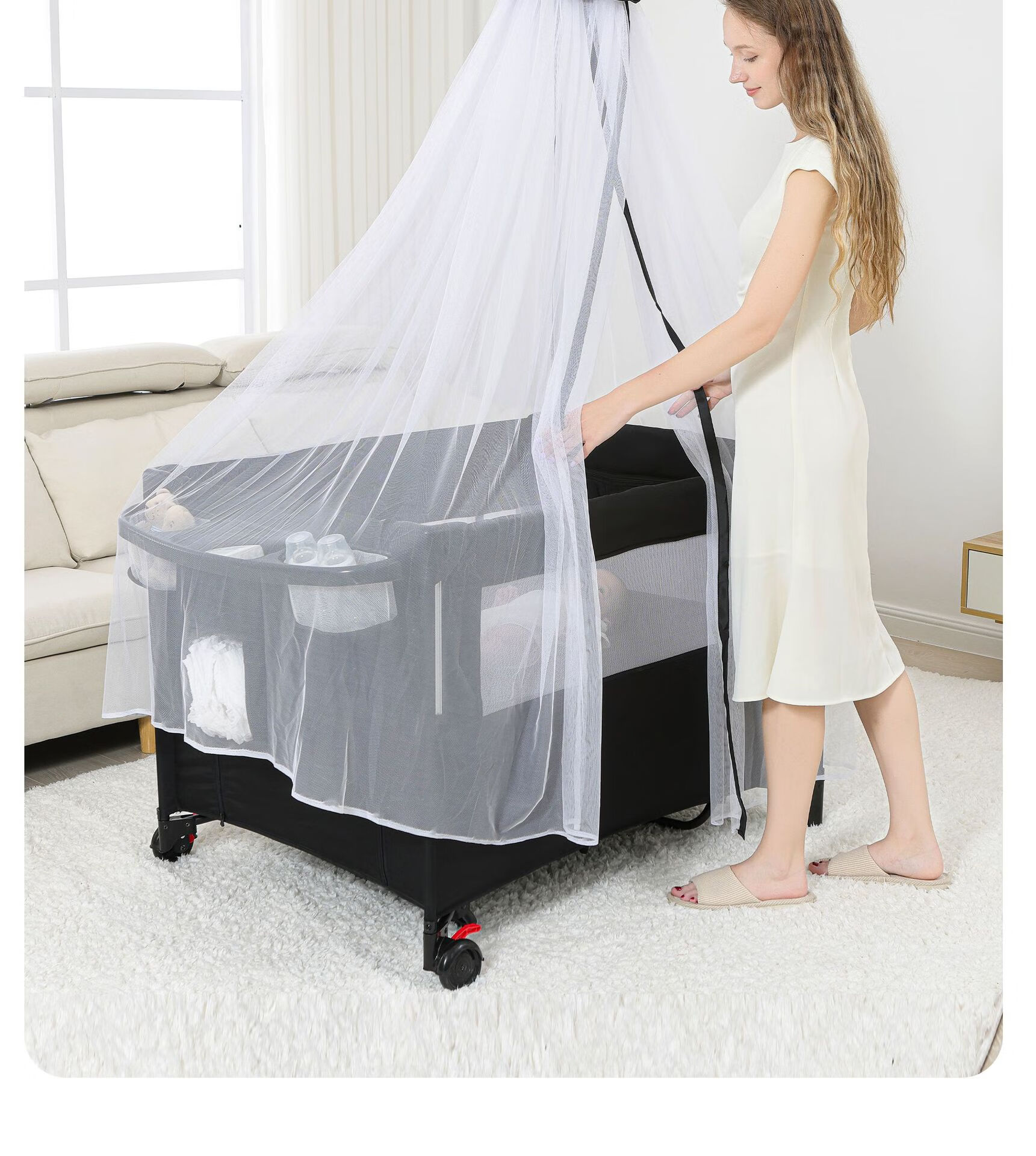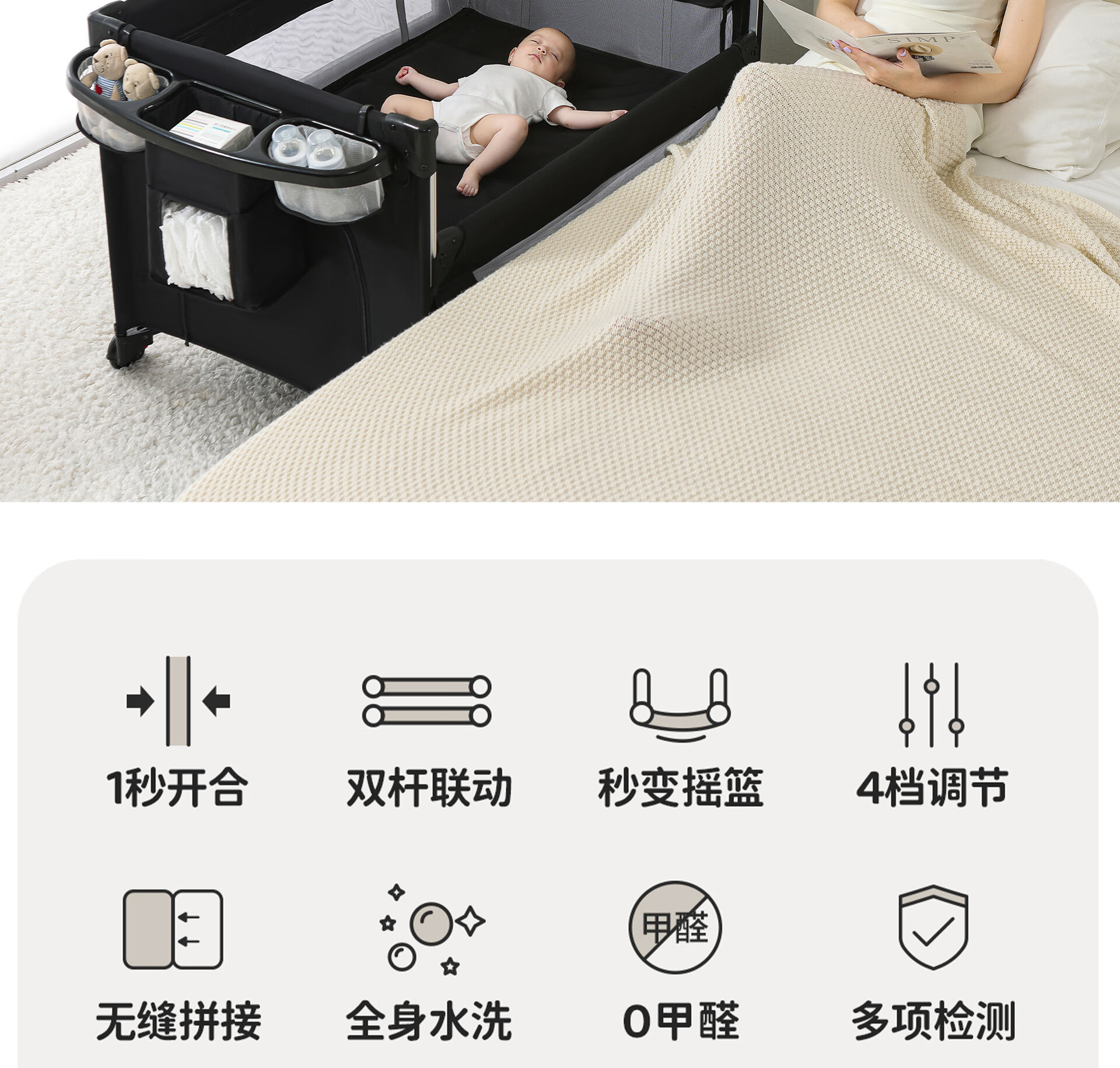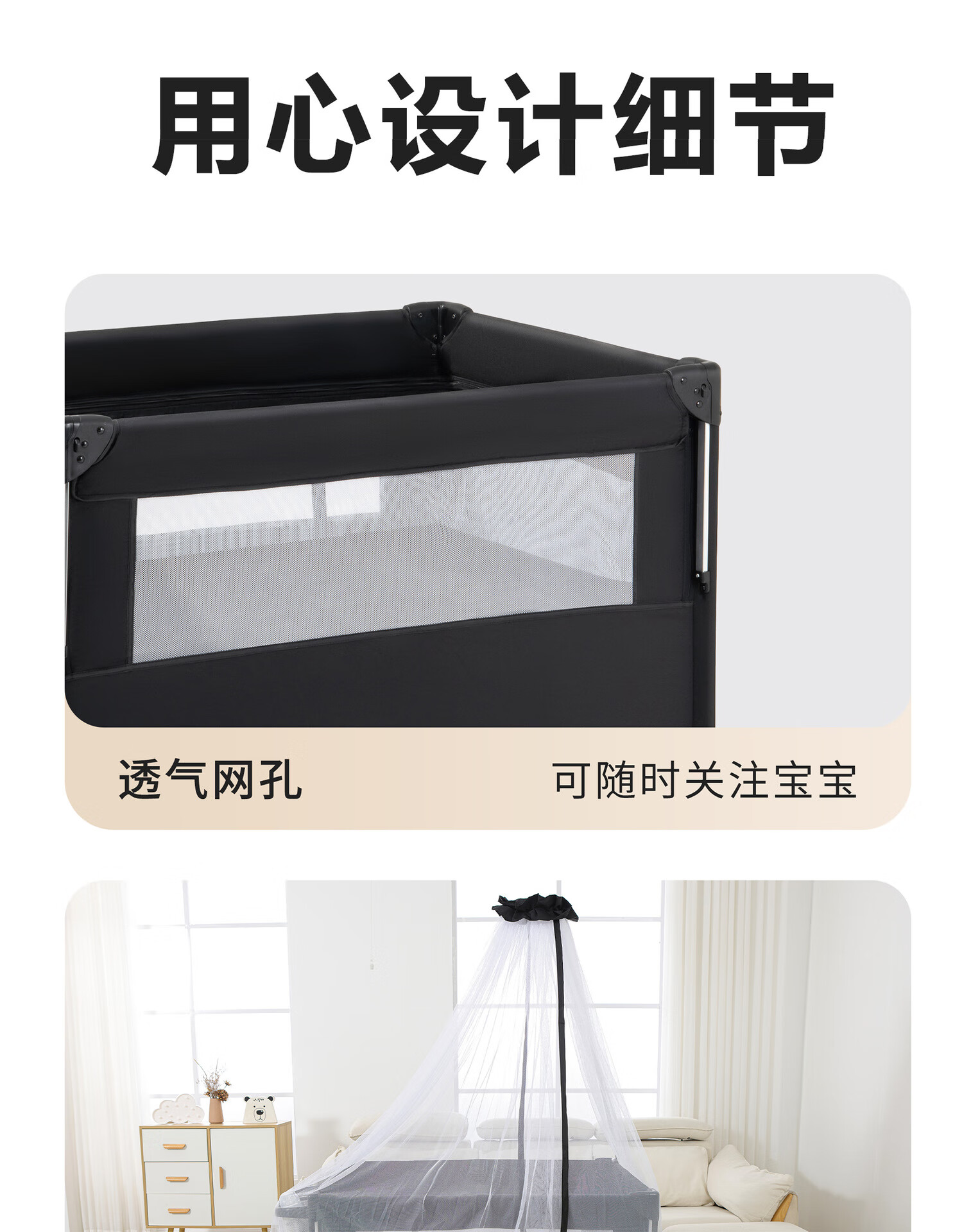 Foldable crib multi-functional mobile baby bed infant special bed portable newborn baby splicing bed game bed - black - 2-piece set mosquito net + rocking bar