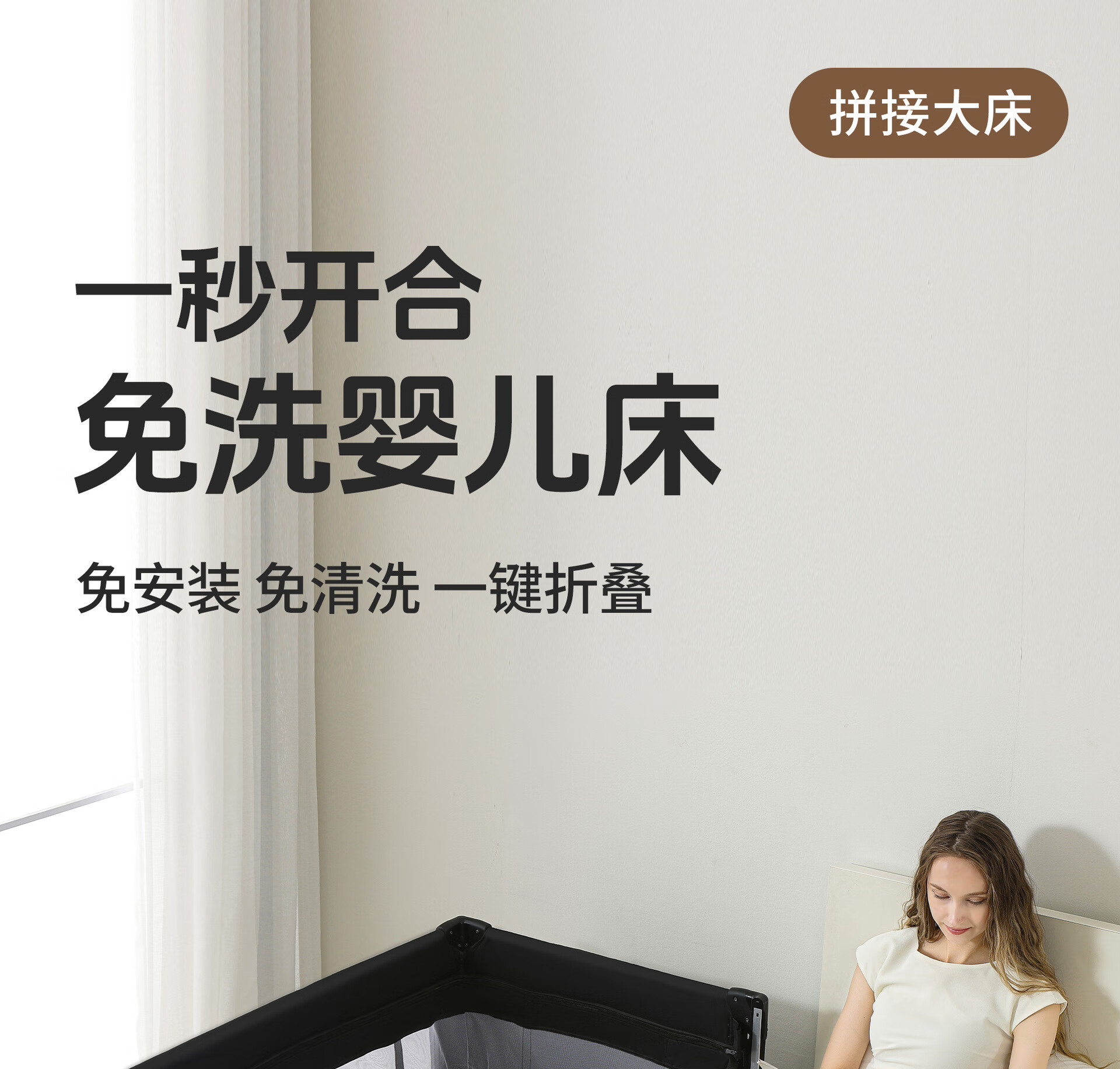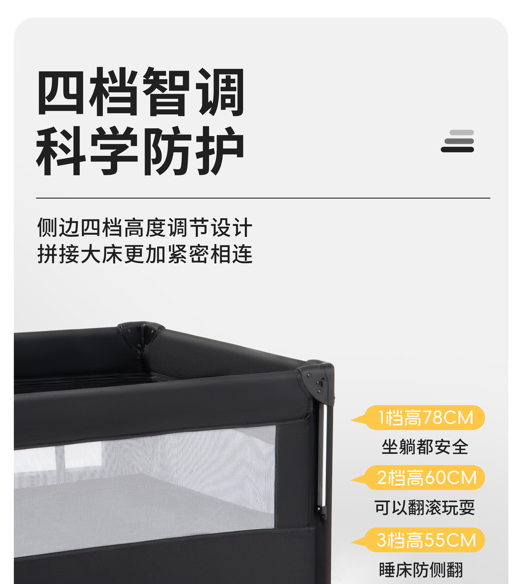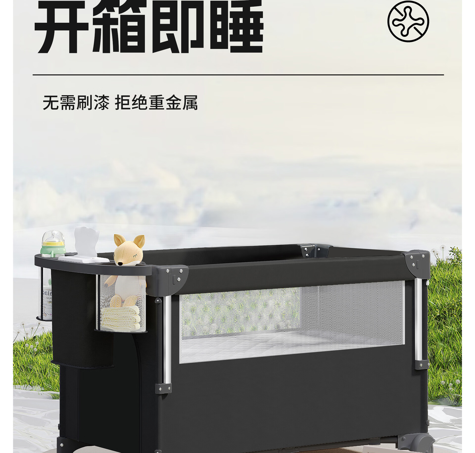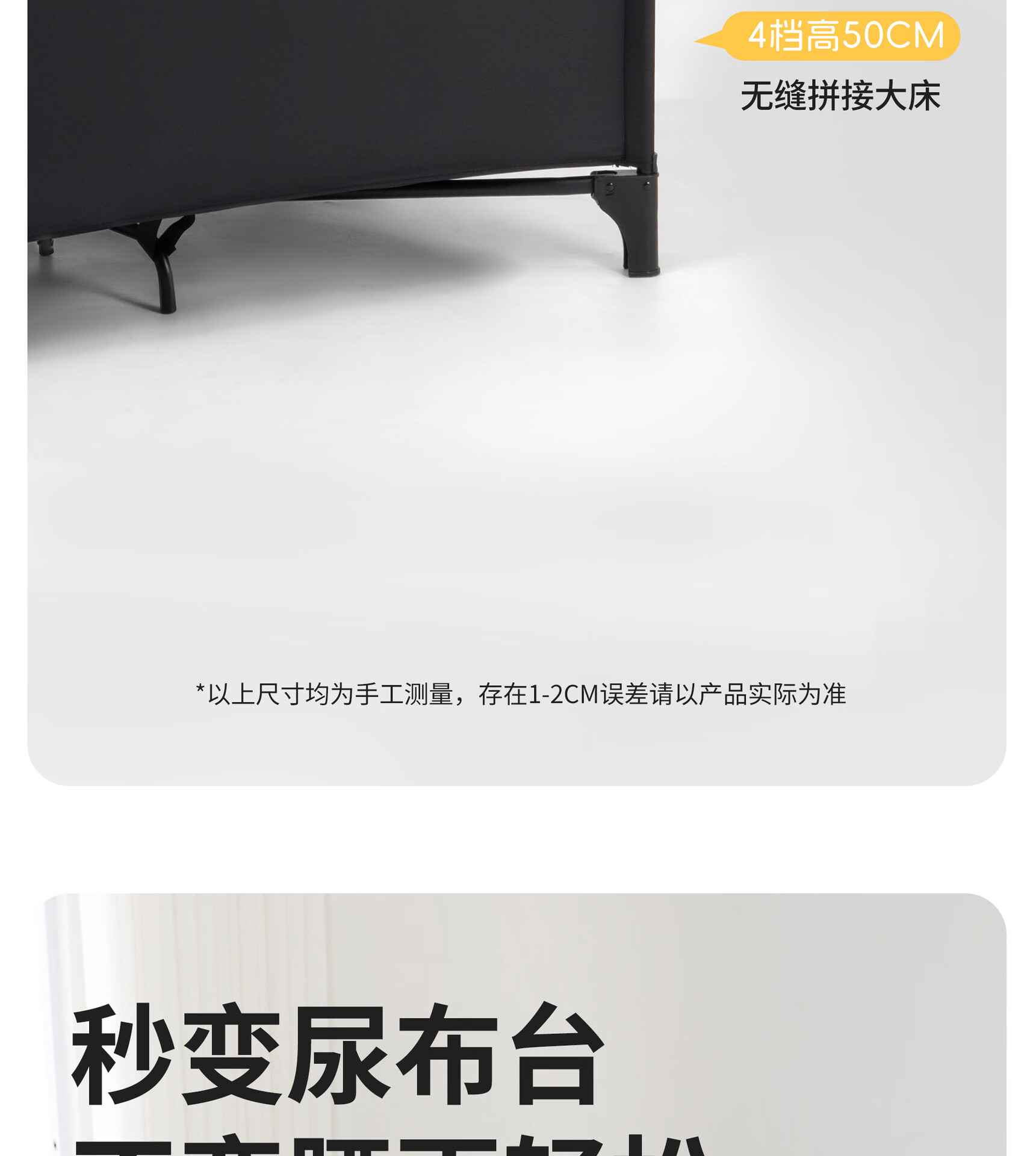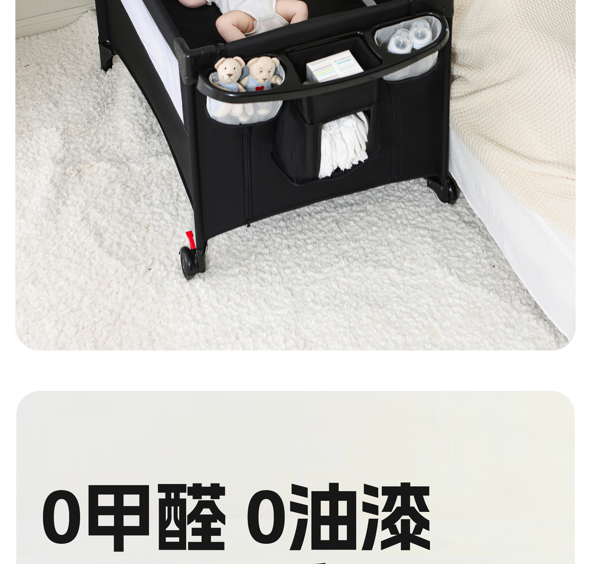 Foldable crib multi-functional mobile baby bed infant special bed portable newborn baby splicing bed game bed - black - 2-piece set mosquito net + rocking bar