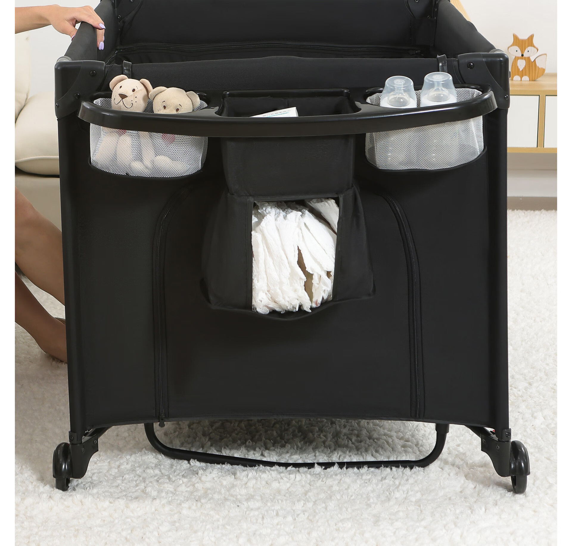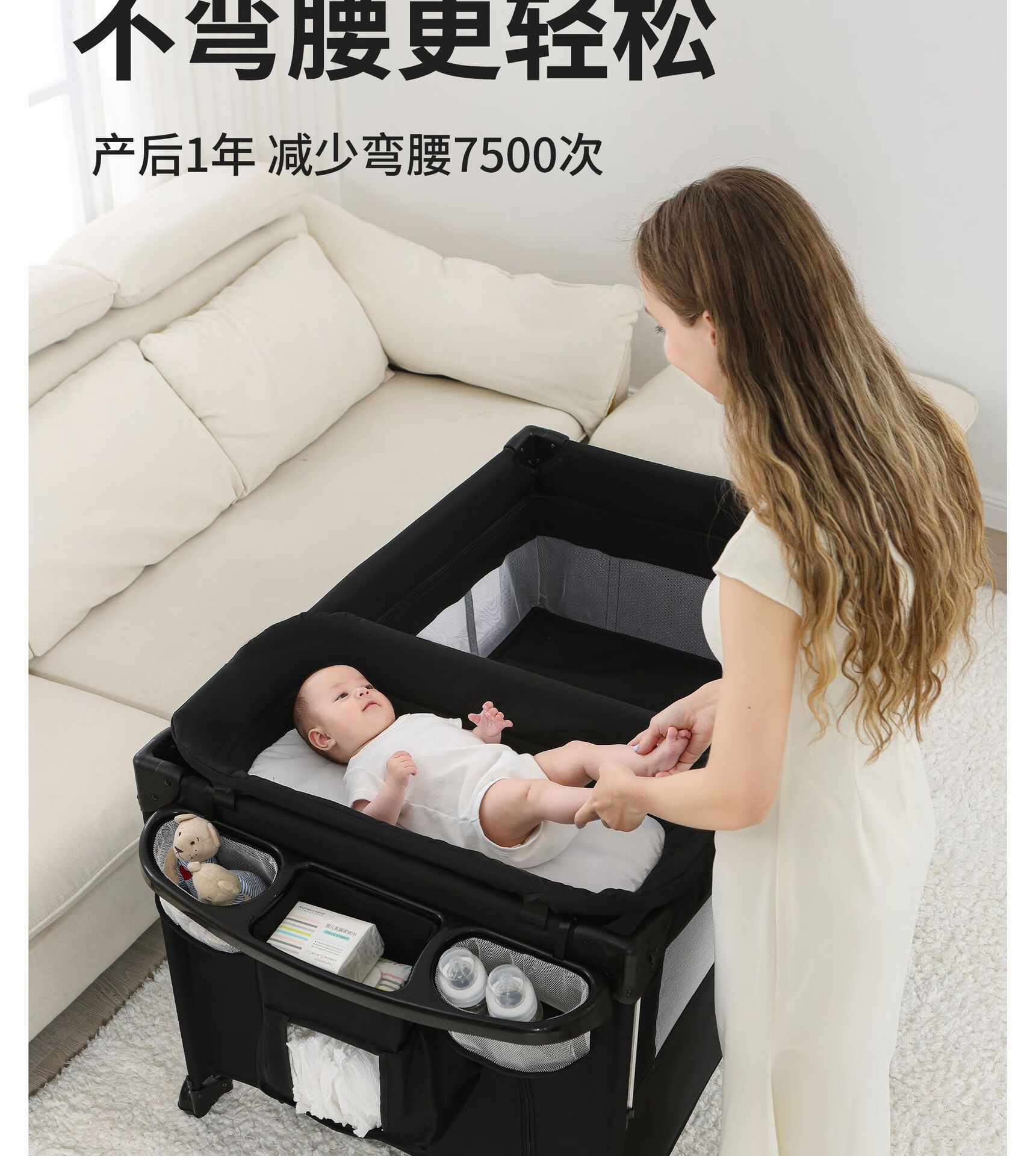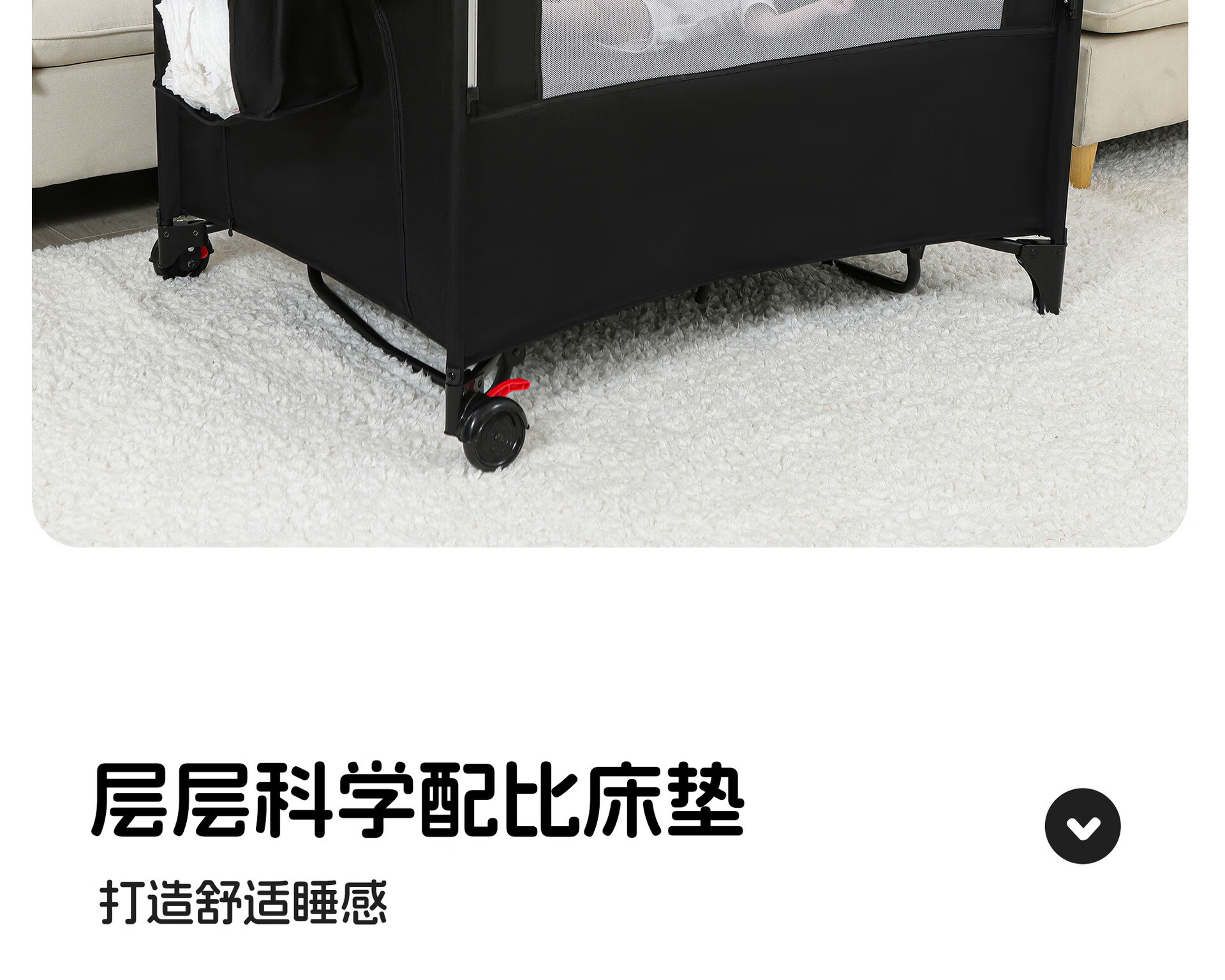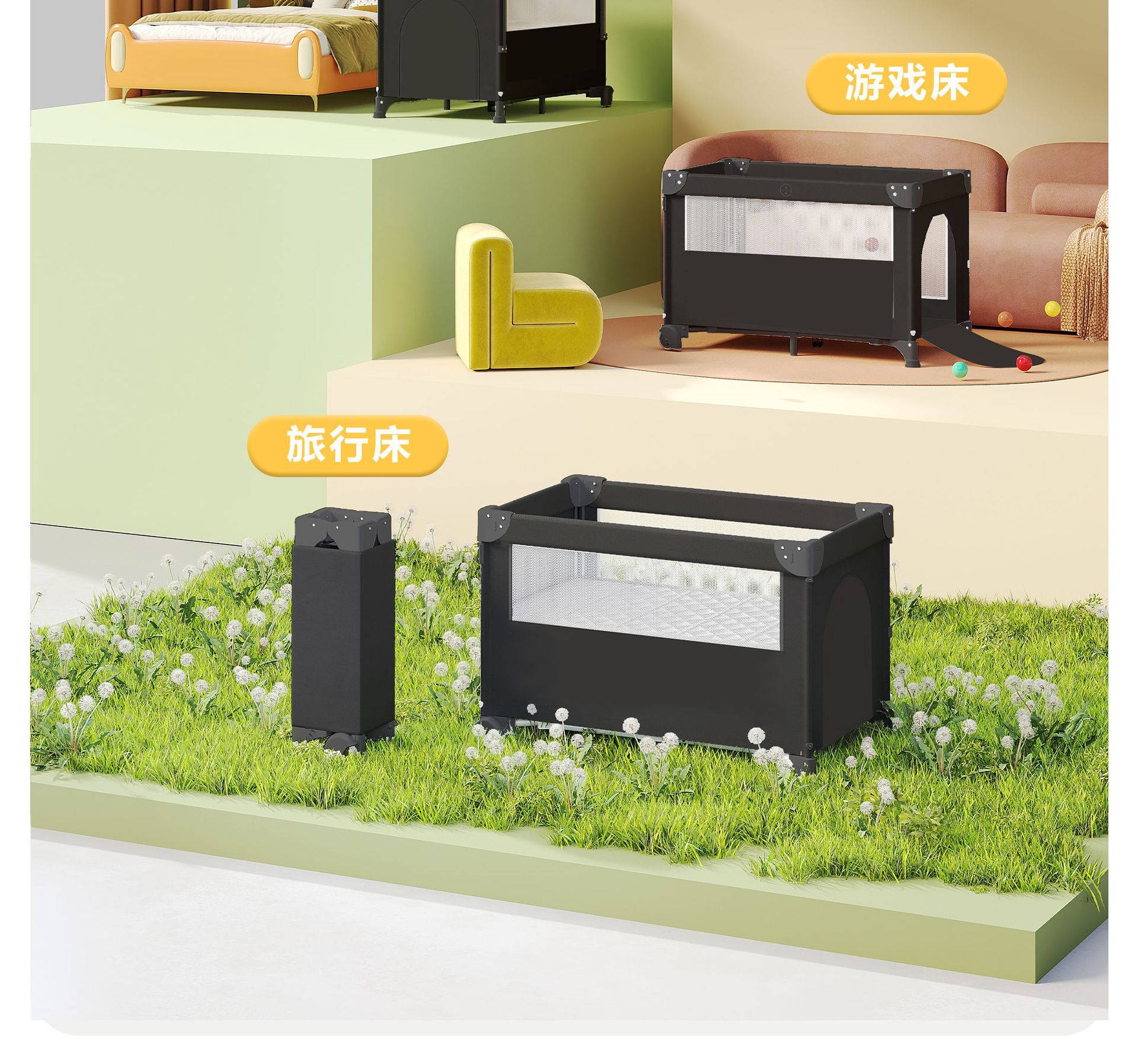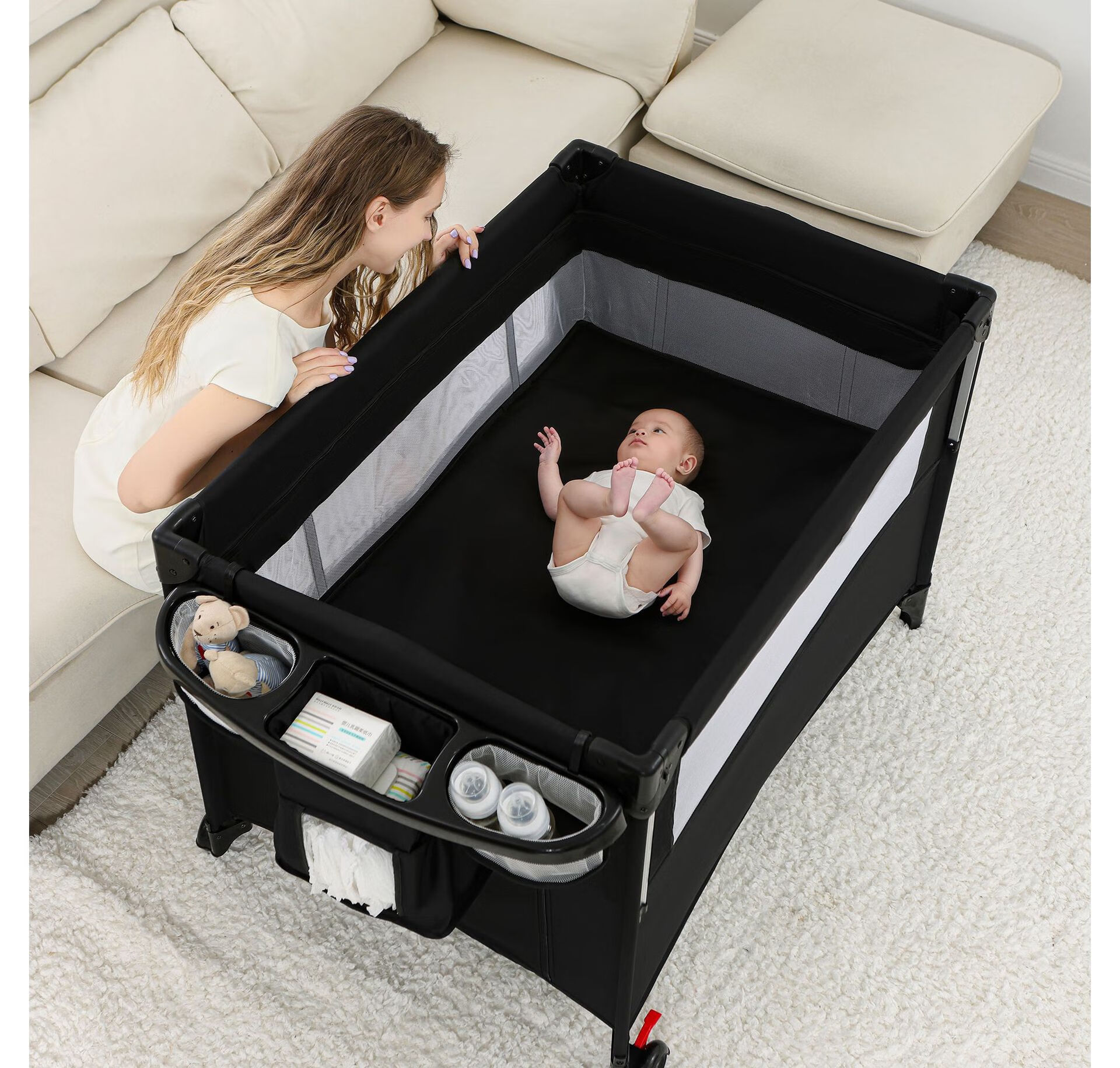 Foldable crib multi-functional mobile baby bed infant special bed portable newborn baby splicing bed game bed - black - 2-piece set mosquito net + rocking bar