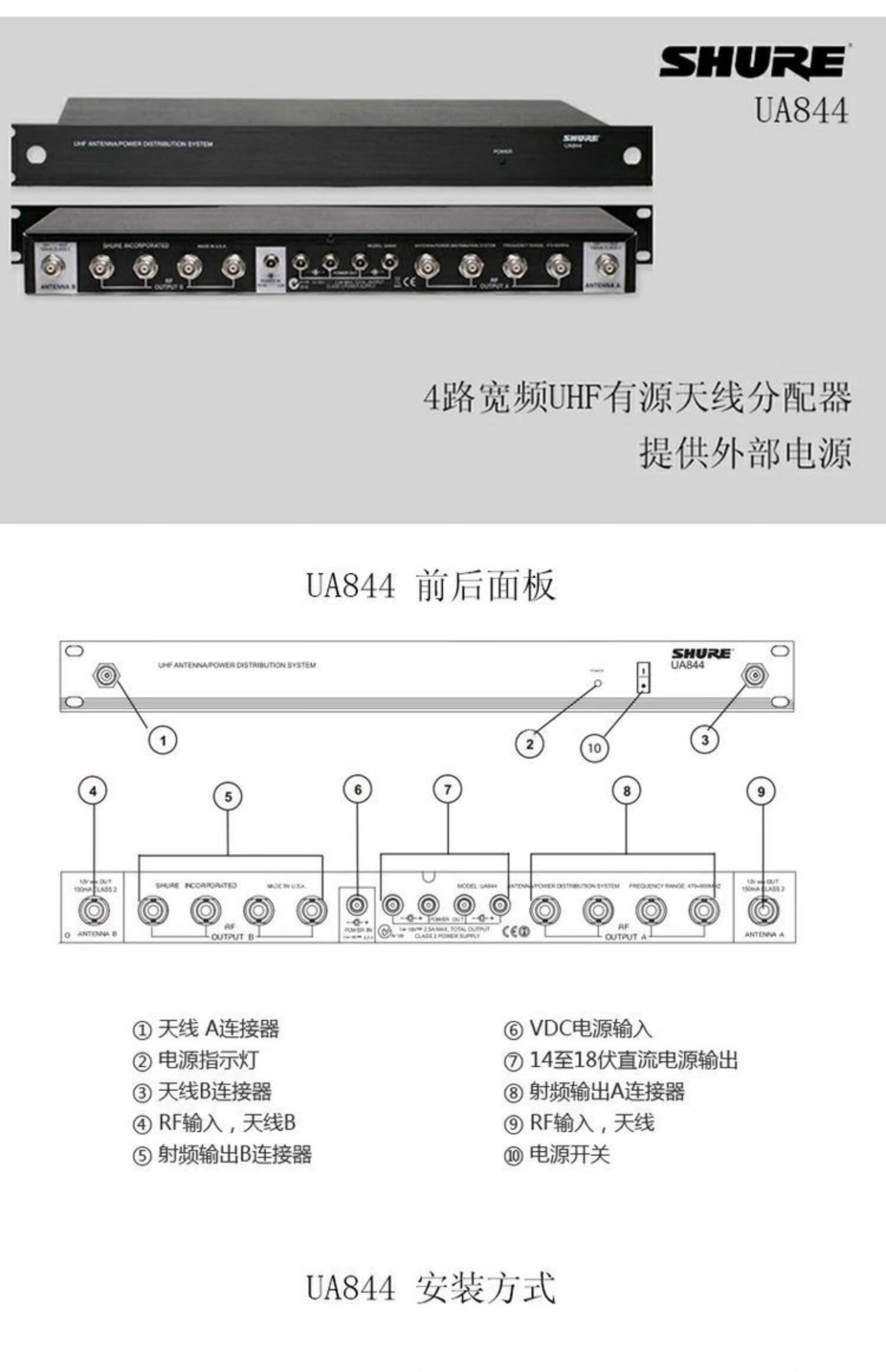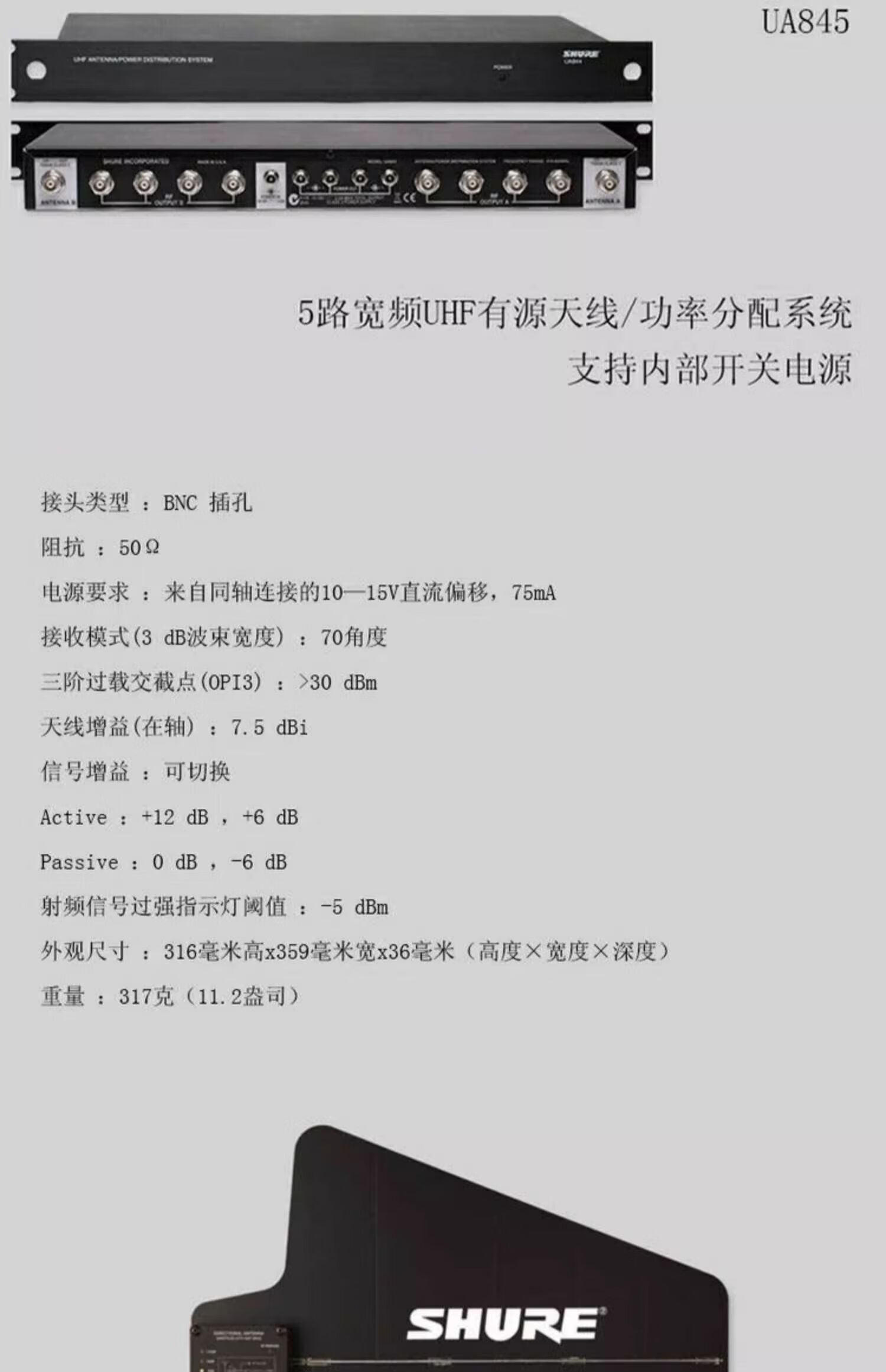 SHURE UA844 antenna splitter UA874 UA845 active directional antenna signal amplifier system UA834 (antenna amplifier)