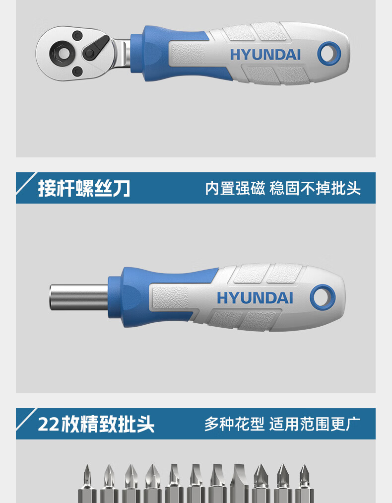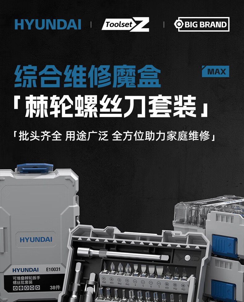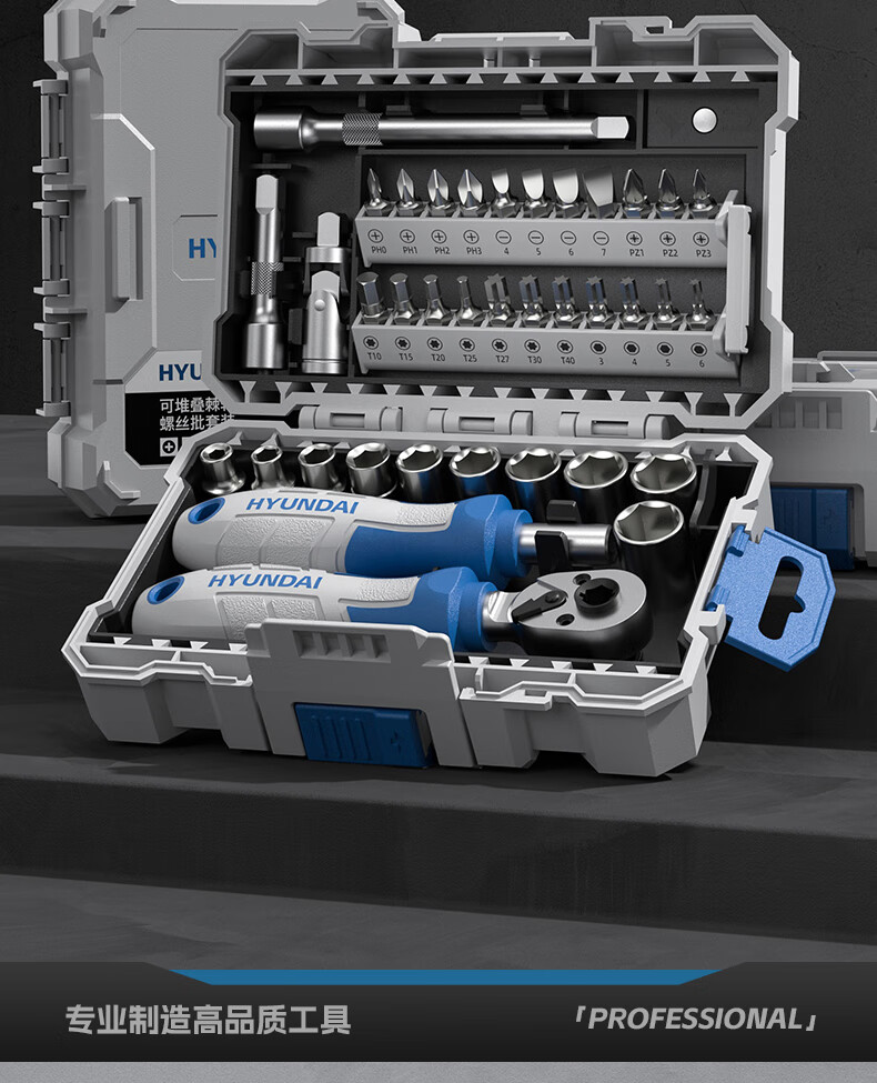 HYUNDAI ratchet wrench set home repair motorcycle repair tool sleeve two-way fast torque screwdriver set stackable ratchet wrench & screwdriver 38-piece set