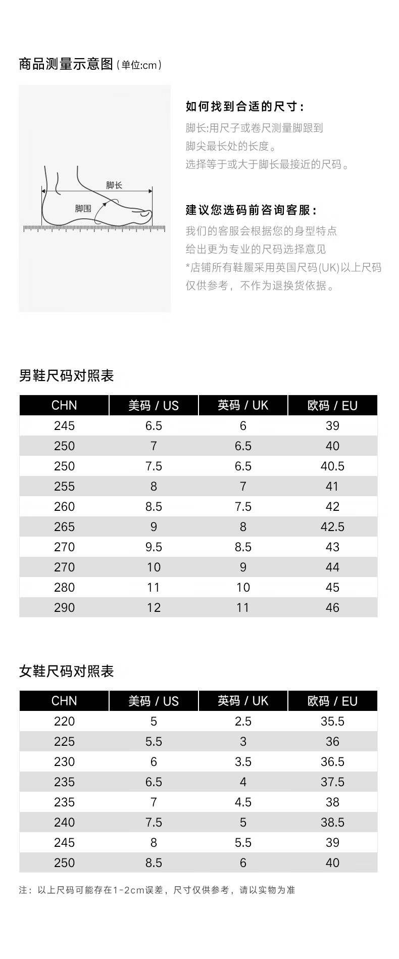 China (cm) 36 - 37 38 - 39 40 - 42 43 - 44 45 - 47
