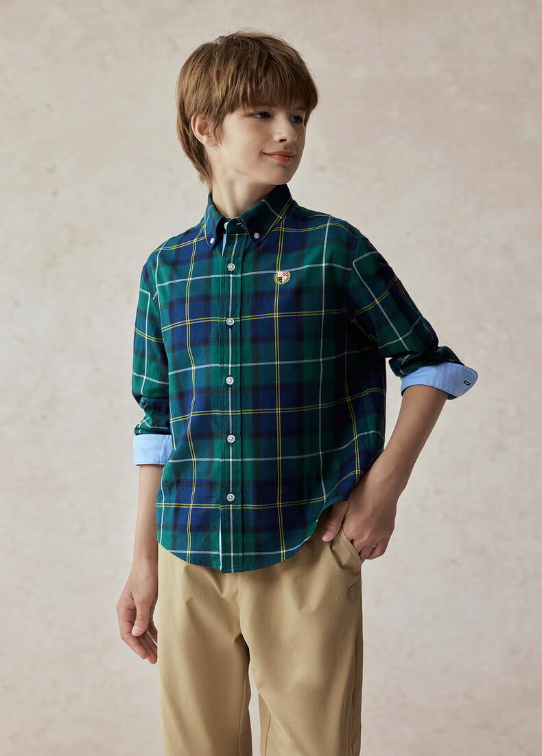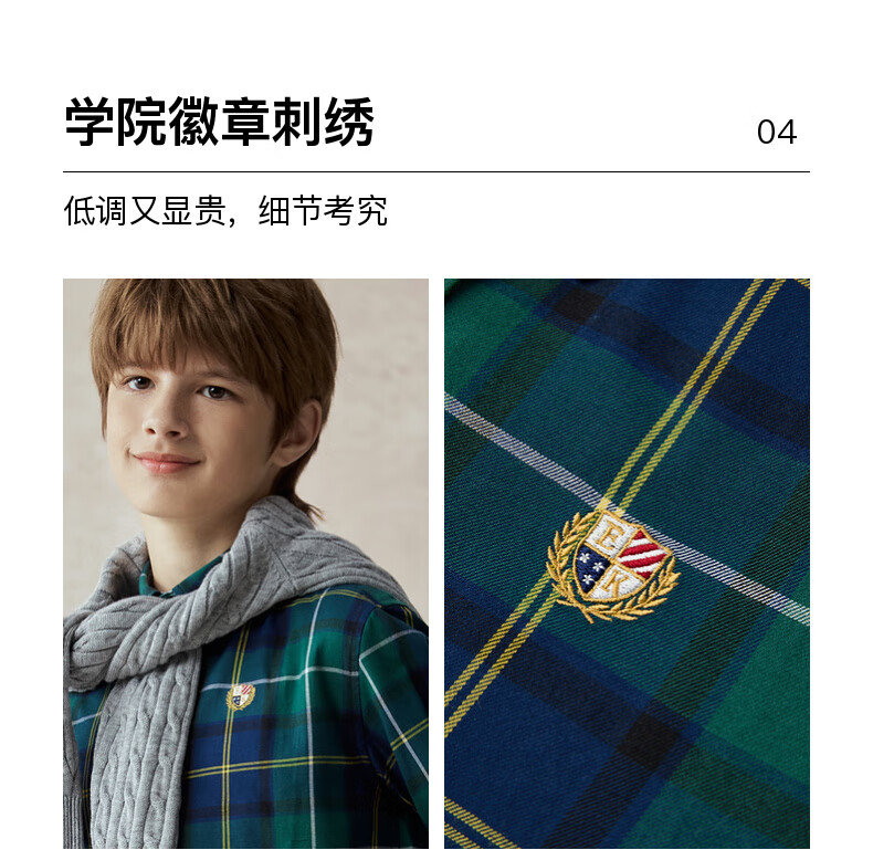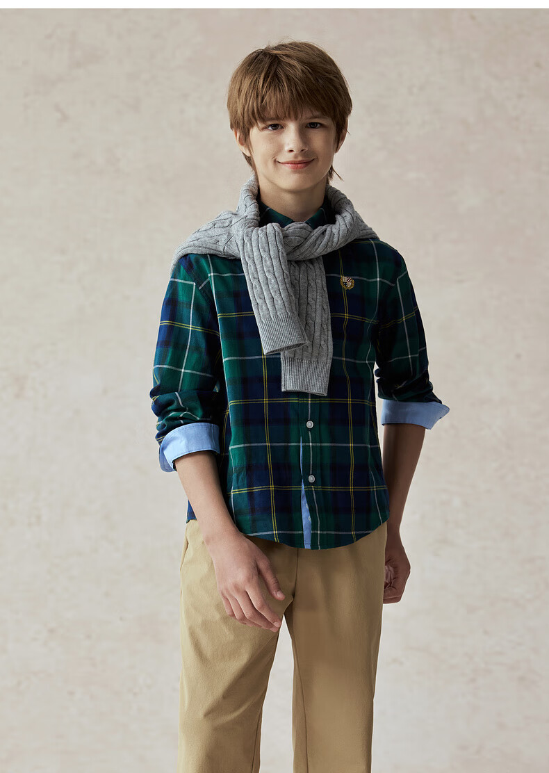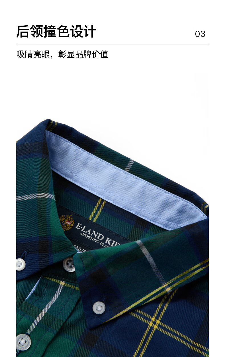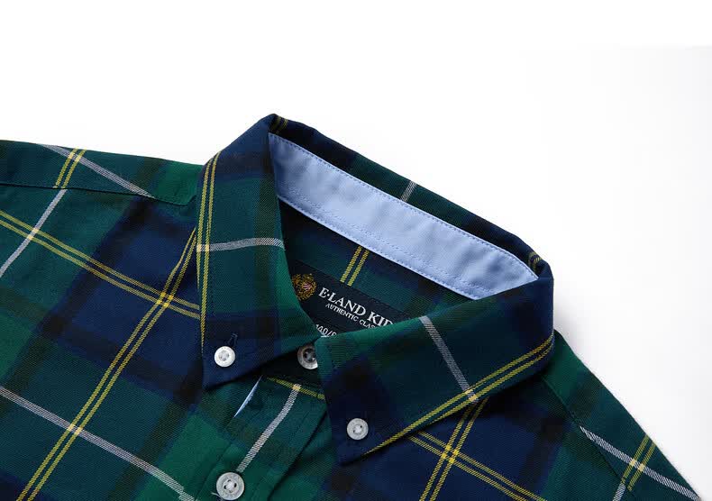 E LAND KIDS children's clothing boys' shirt season new retro British plaid long-sleeved top Green green/40 160