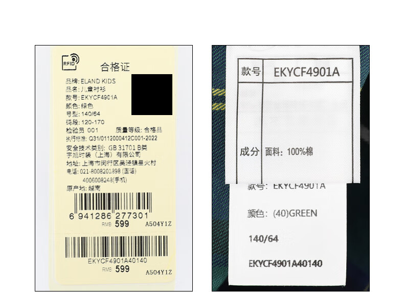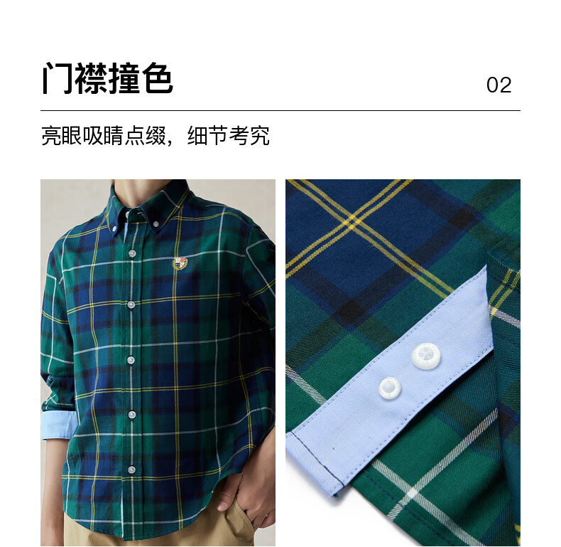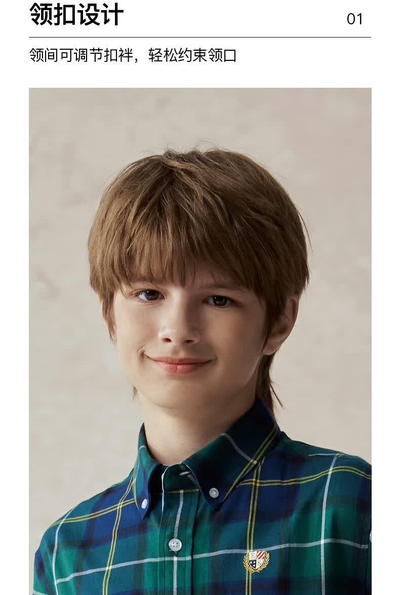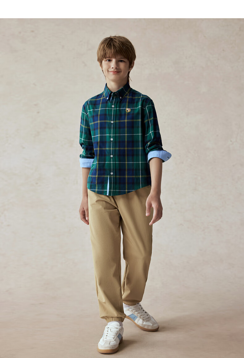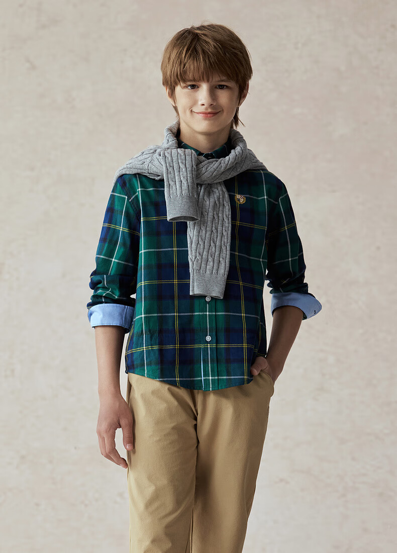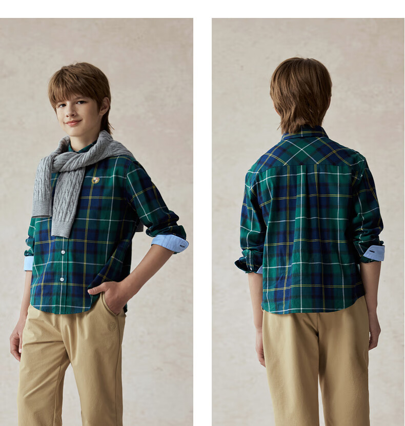 E LAND KIDS children's clothing boys' shirt season new retro British plaid long-sleeved top Green green/40 160