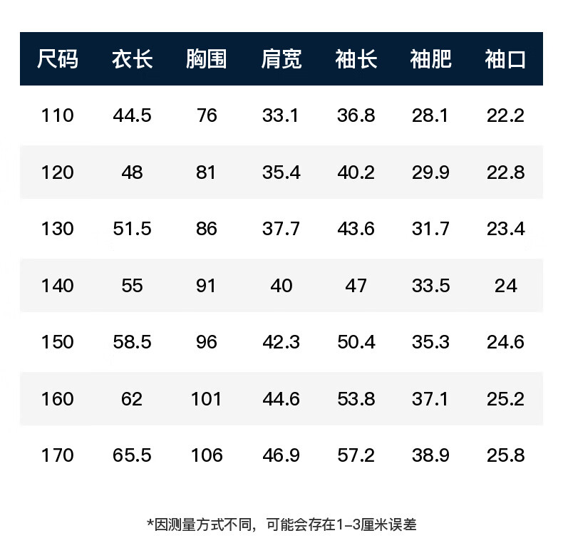 China (cm) 160-165/84-86 165-170 / 88-90 167-172 / 92-96 168-173 / 98-102 170-176 / 106-110