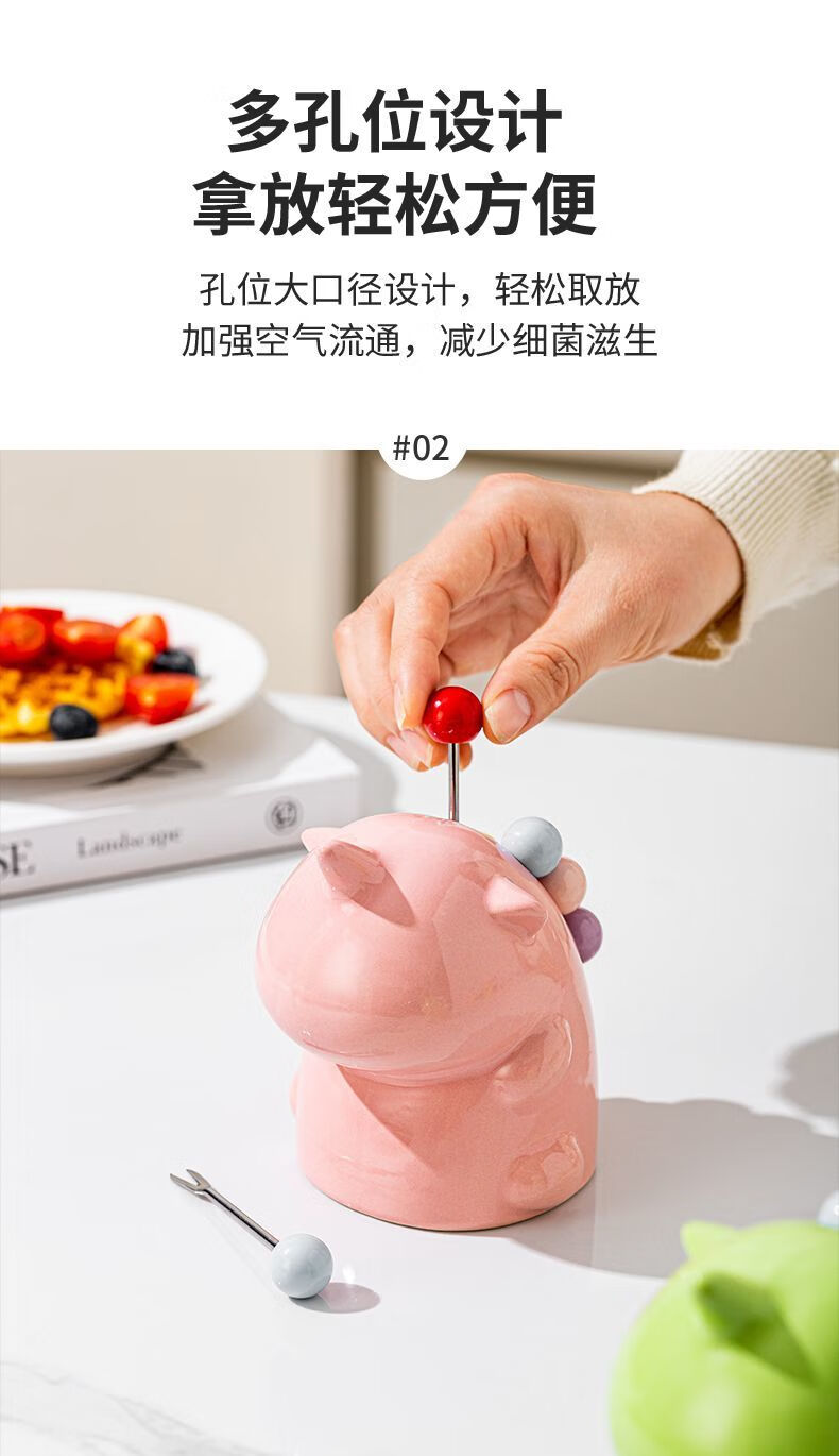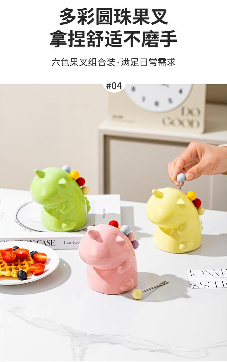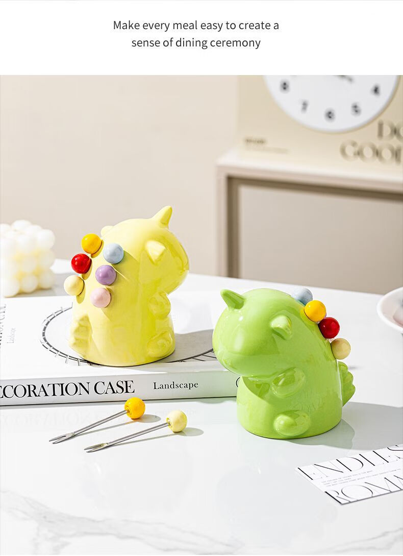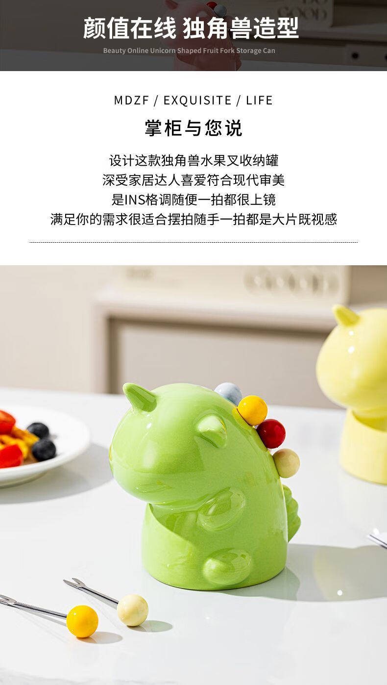 Unicorn Fruit Light Luxury Ceramic Tableware Set Home Cute High-grade Stainless Steel Storage Safe Fruit Fork Ceramic Macaron Custard Unicorn + 6 Forks