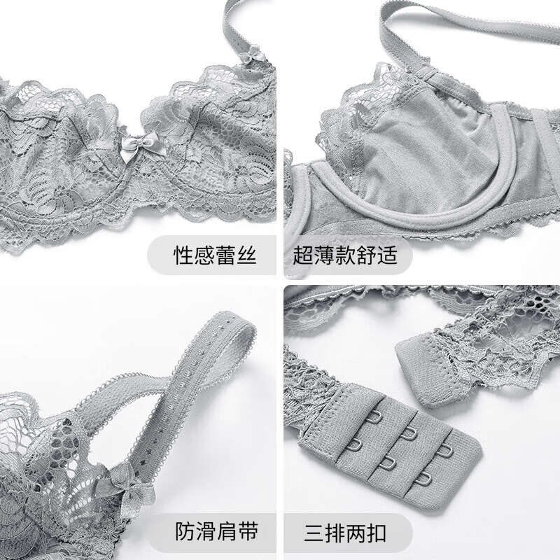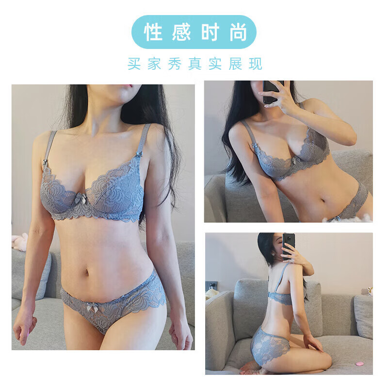 Victoria's Secret Sexy Victoria's Secret Underwear Women's Pure Desire Lace Big Breast Revealing Small Breast Push Up Bra Set Gray Underwear + Panties Set Comes with Anti-Dent Pad L Suitable for 36/80BC