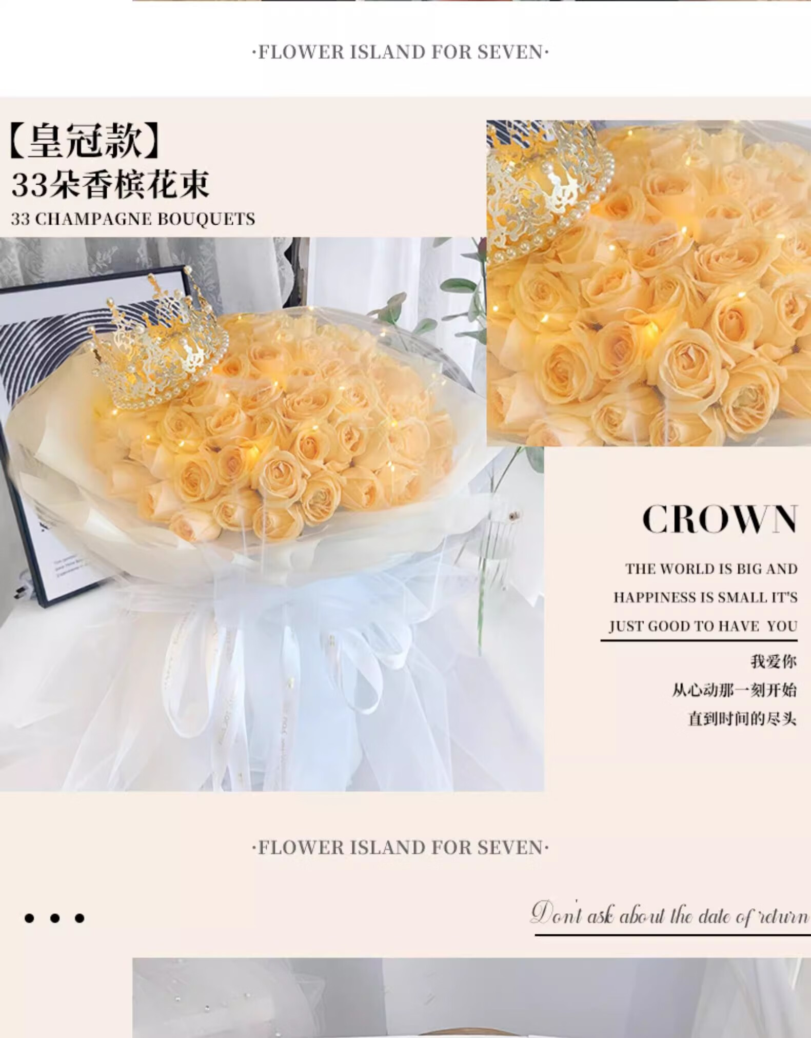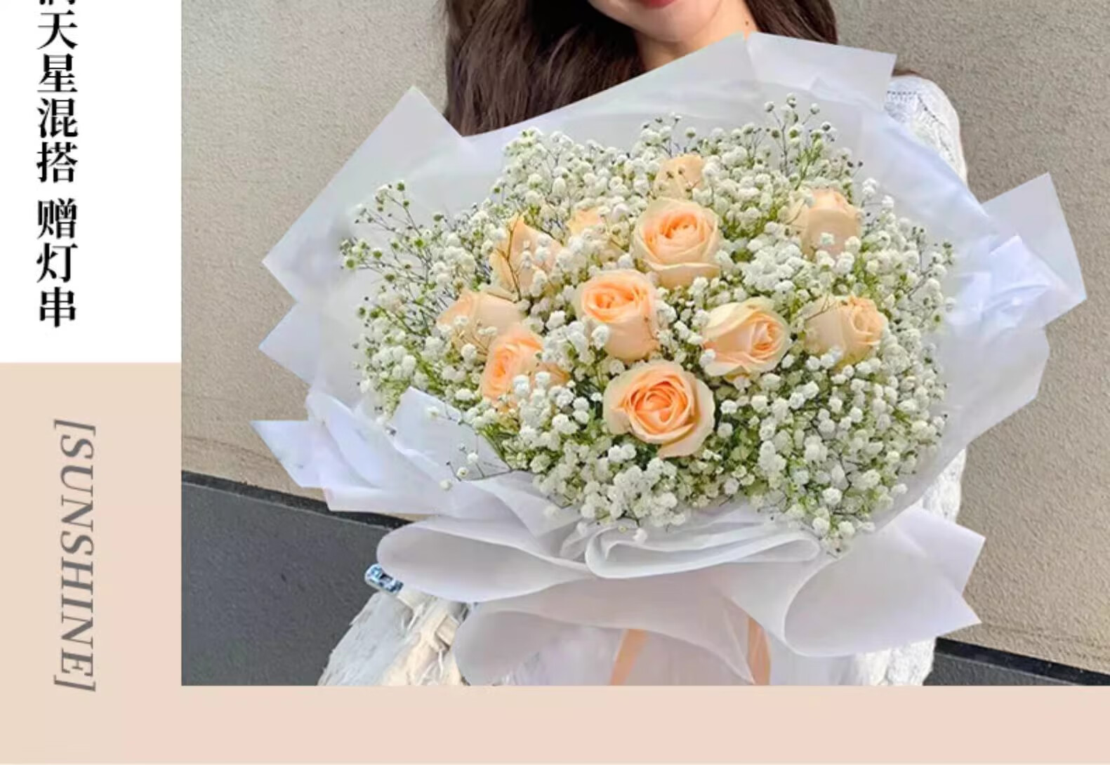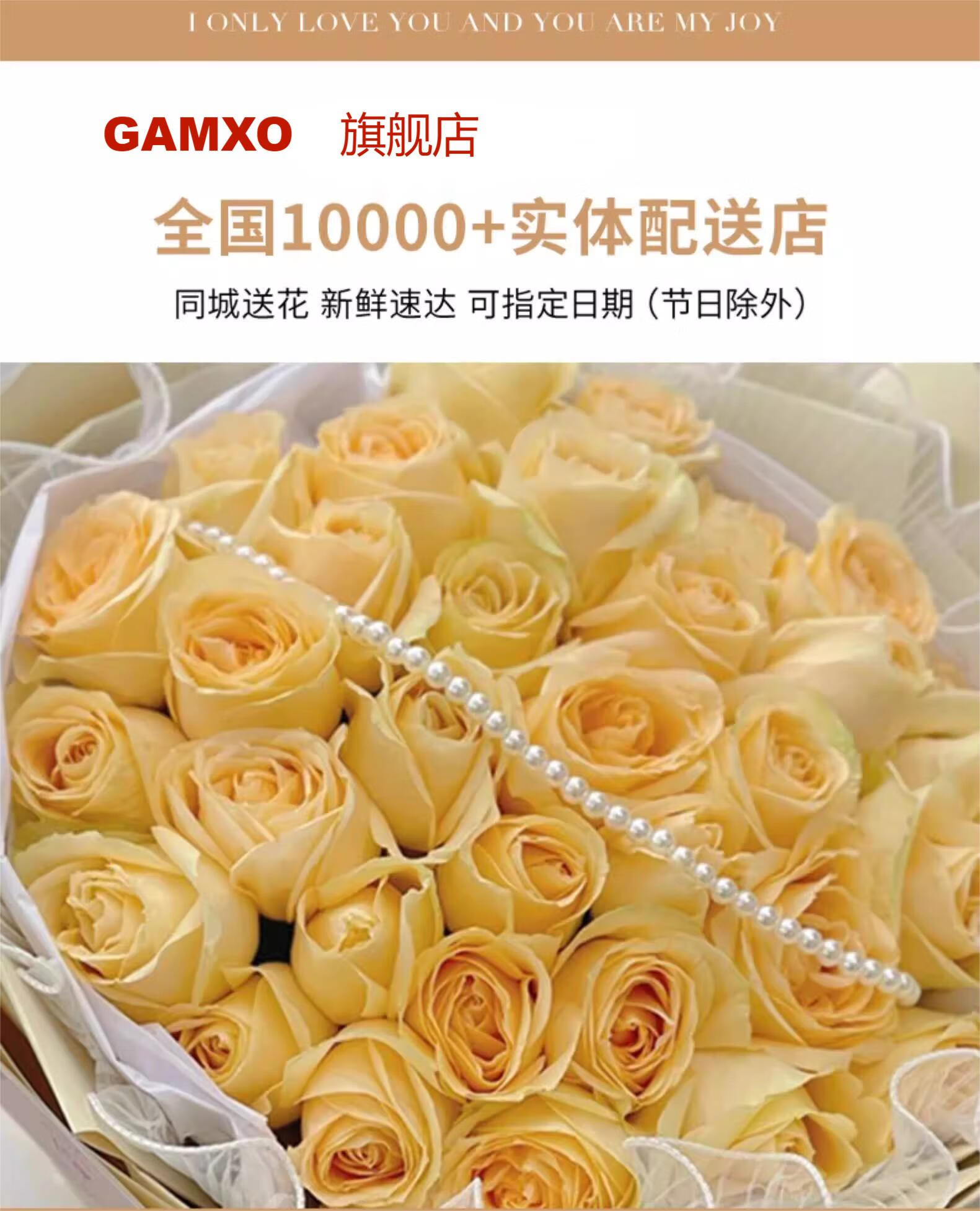 Yehuawa champagne flower express delivery, 33 roses bouquet birthday gift for girlfriend, same-day delivery in the same city, hot sale 11 champagne + baby's breath