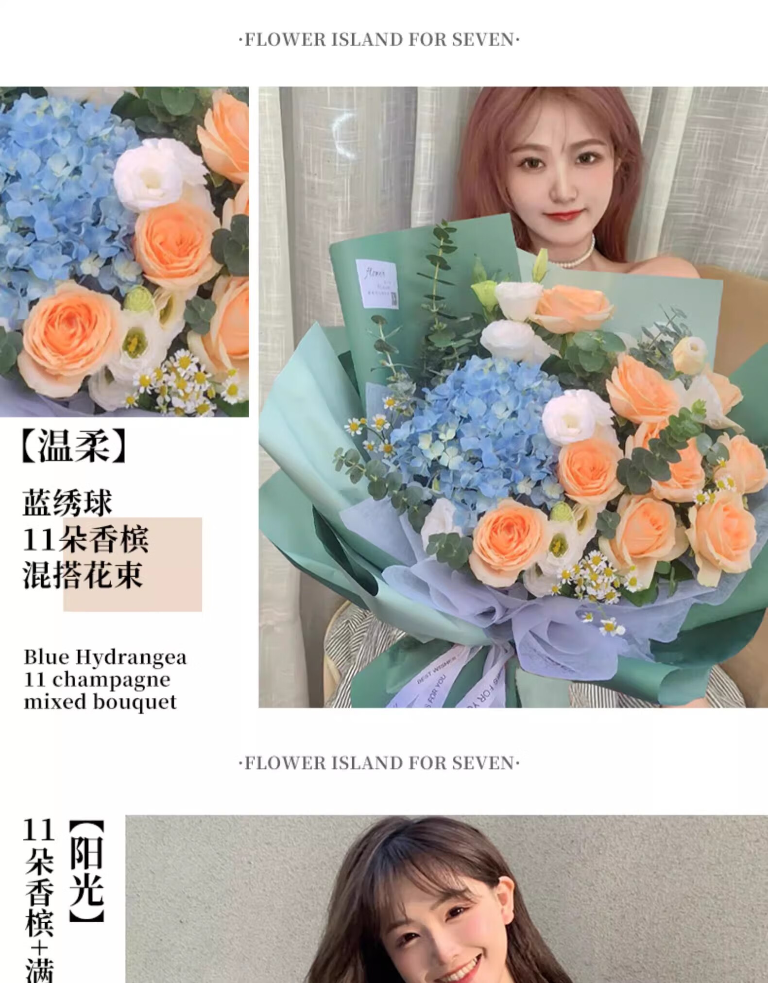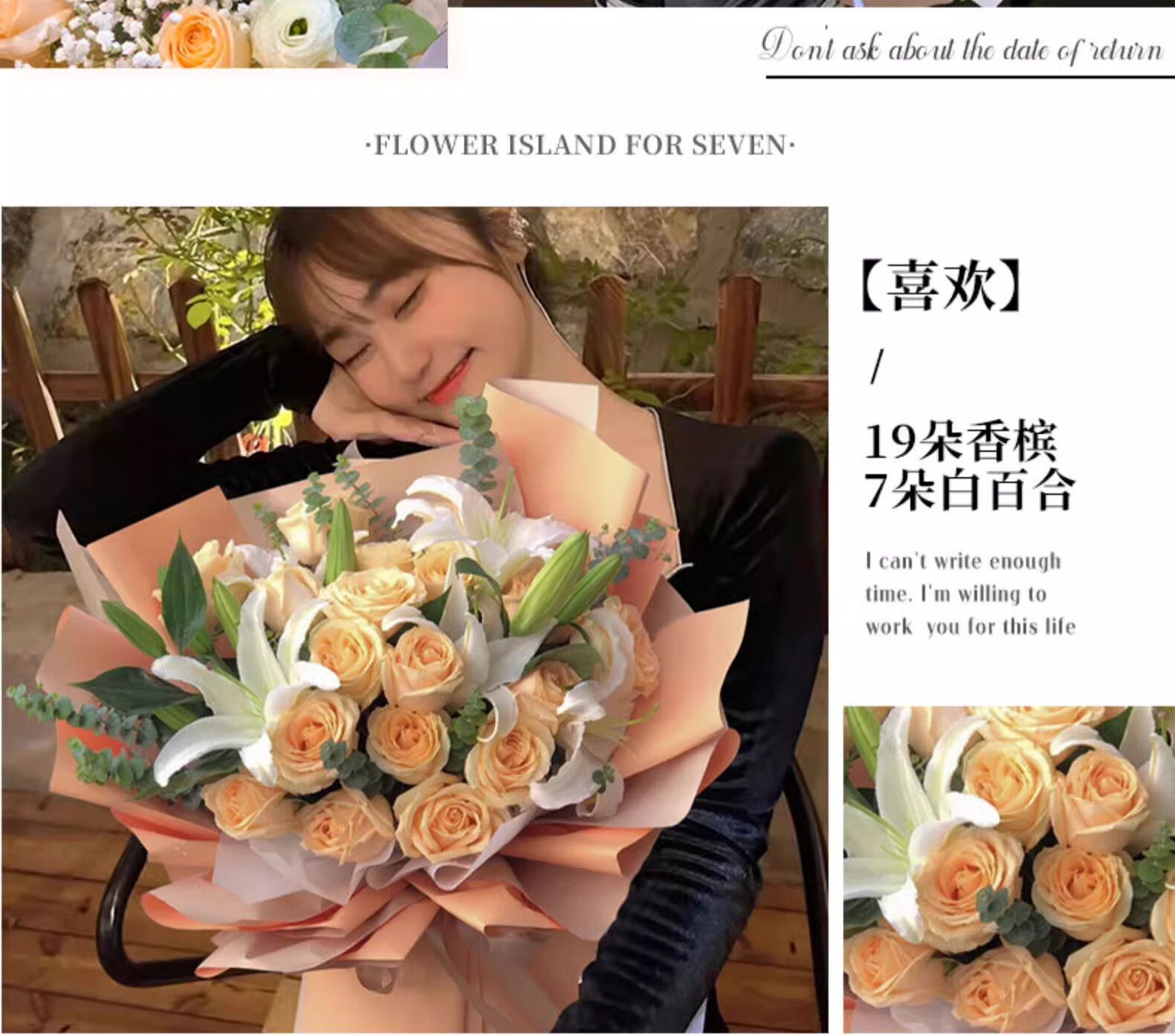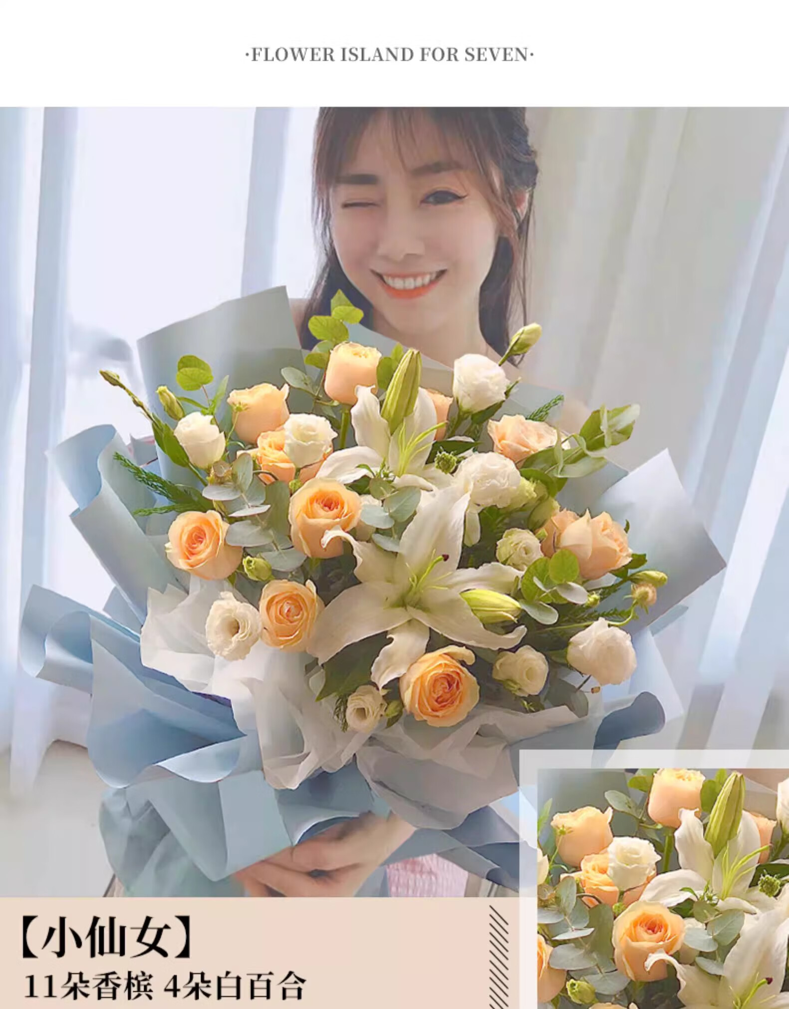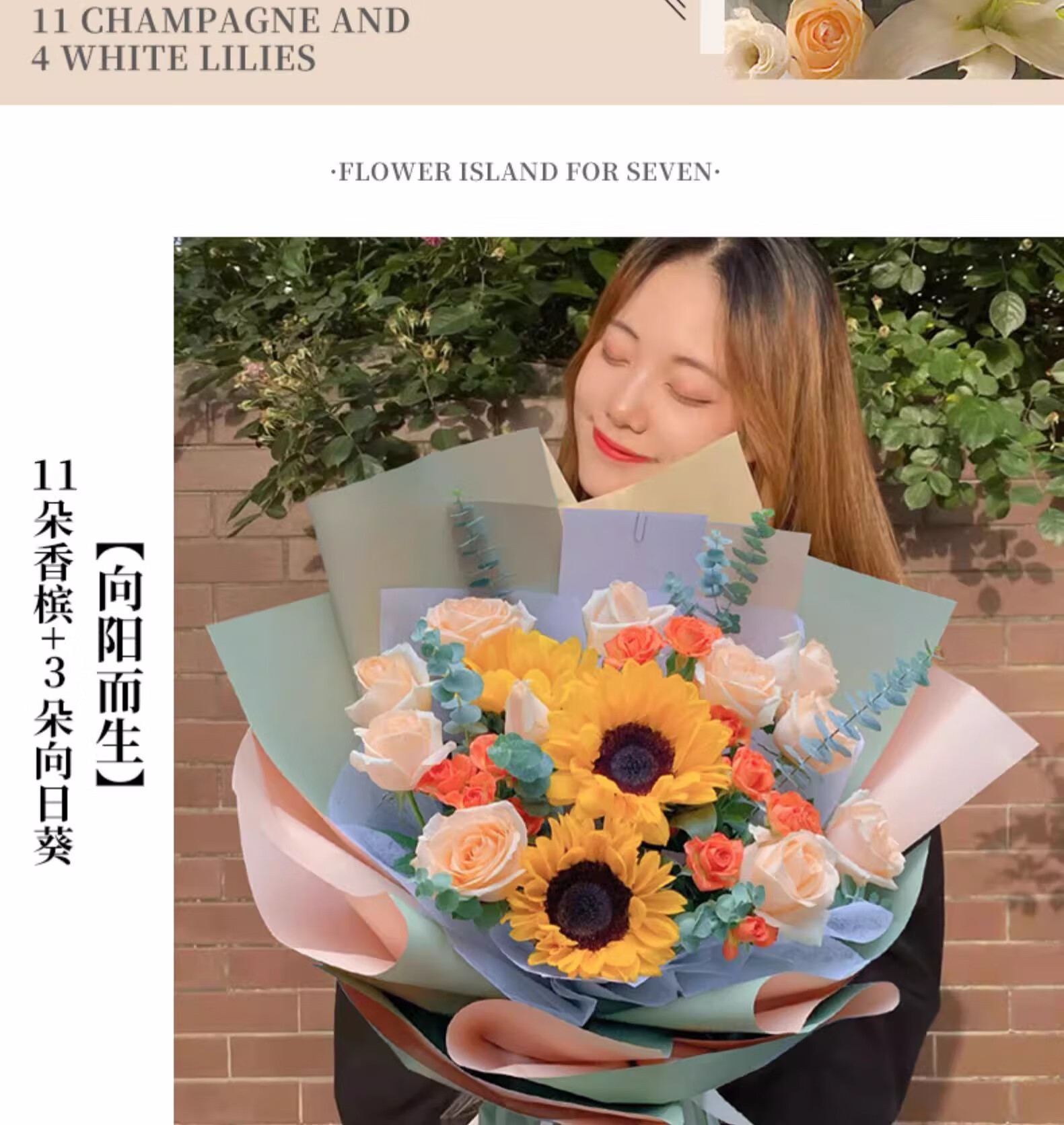 Yehuawa champagne flower express delivery, 33 roses bouquet birthday gift for girlfriend, same-day delivery in the same city, hot sale 11 champagne + baby's breath