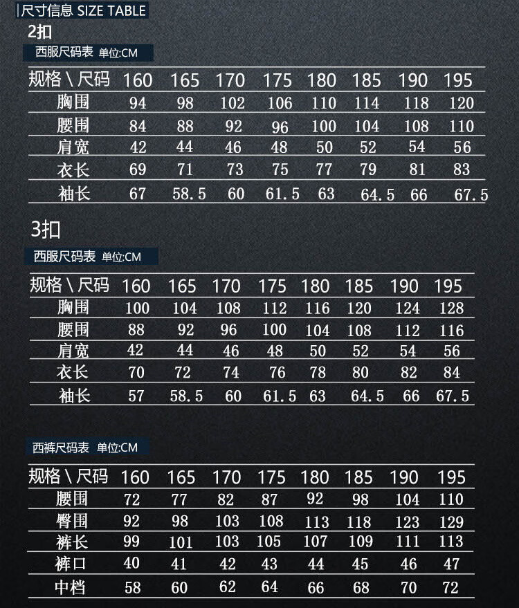 China (cm) 165 / 88-90 170 / 96-98 175 / 108-110 180 / 118-122 185 / 126-130