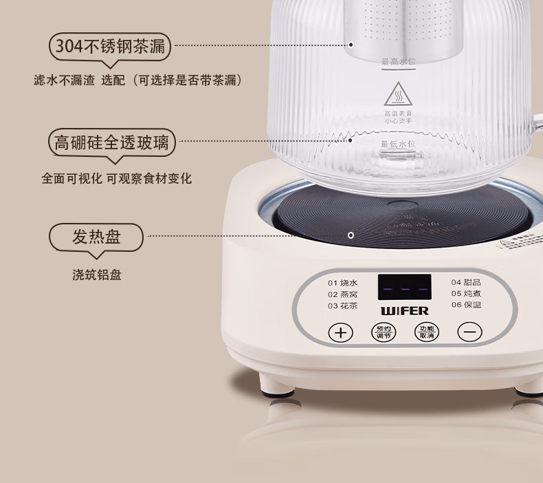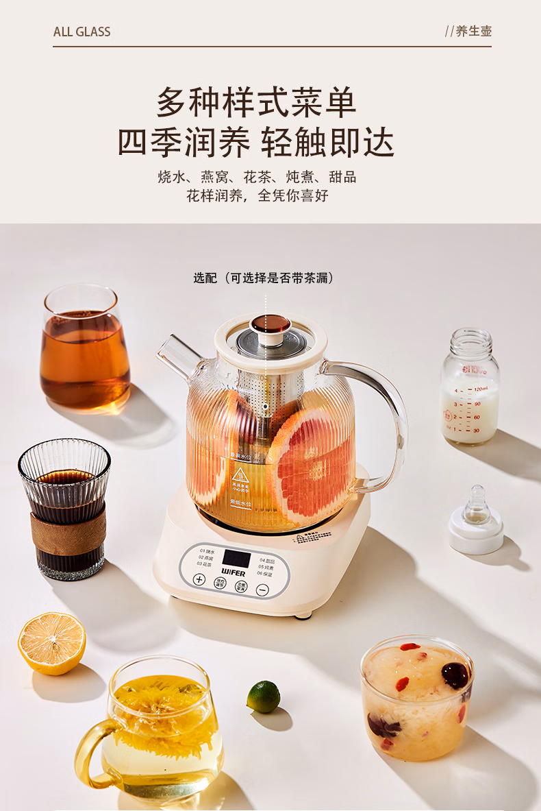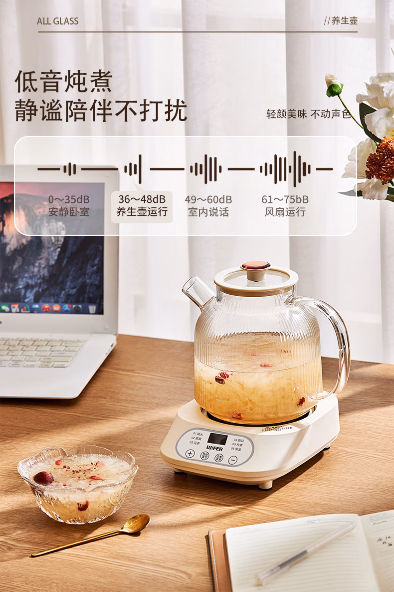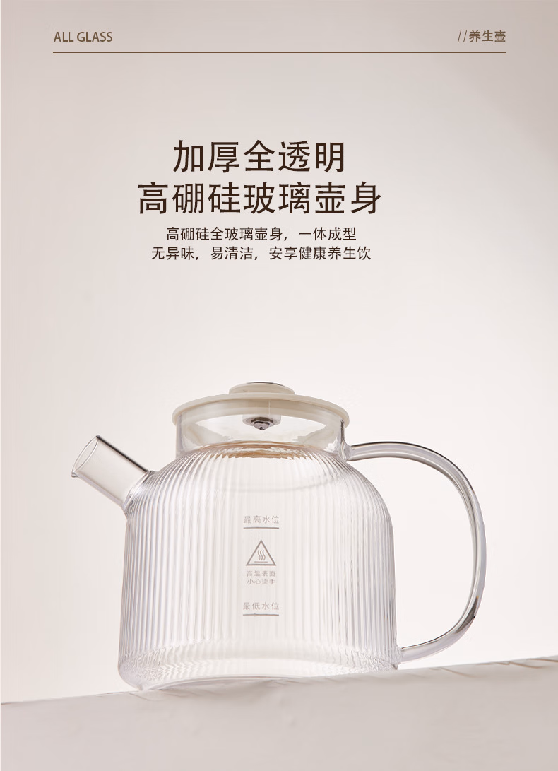 Taste the life of the good lady health pot high borosilicate glass household mini kettle tea maker all glass constant temperature pot office brewing tea 1.2L with stainless steel tea drain high borosilicate glass health pot 4H constant temperature