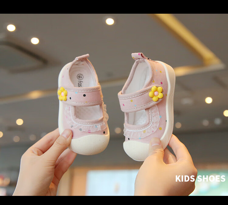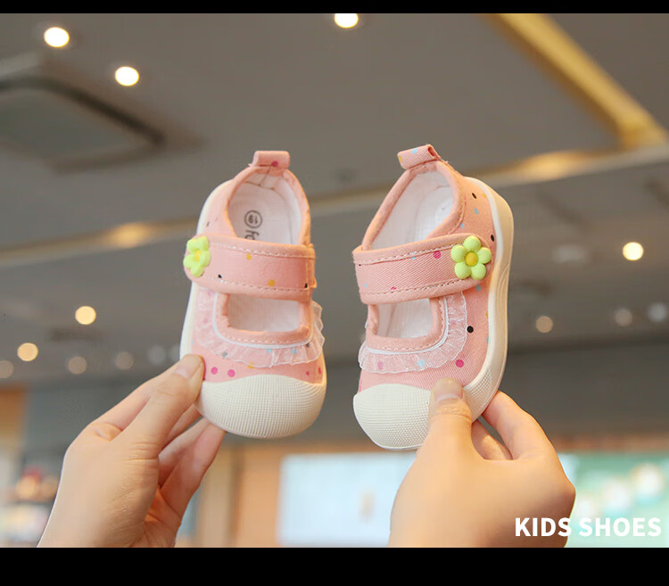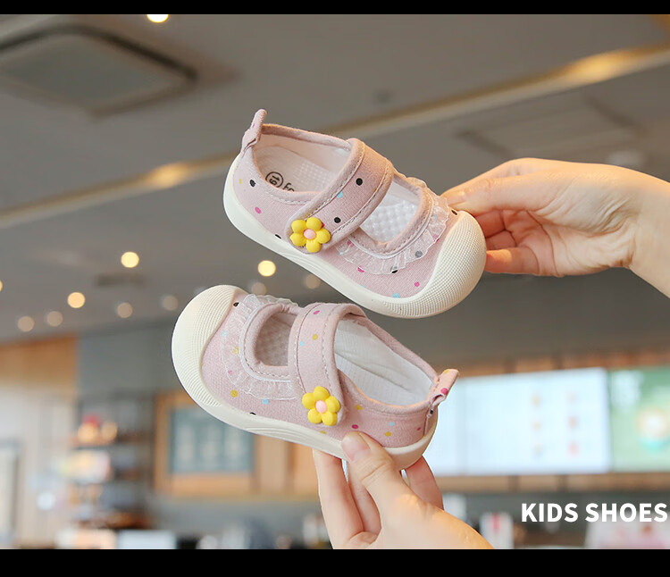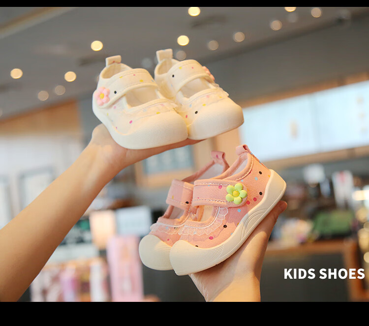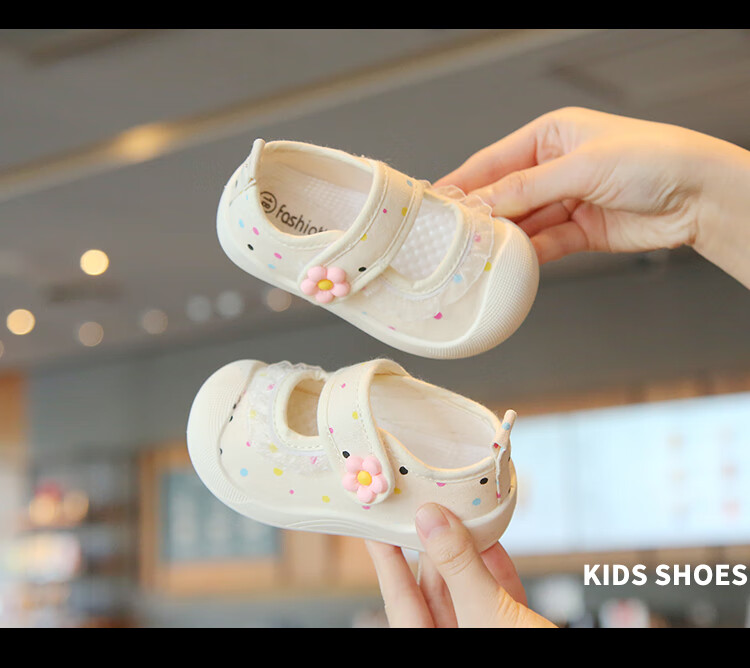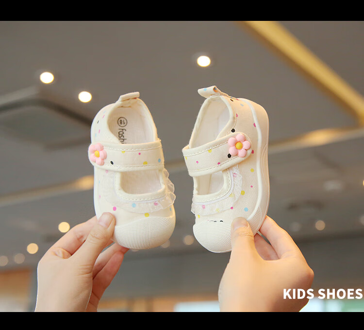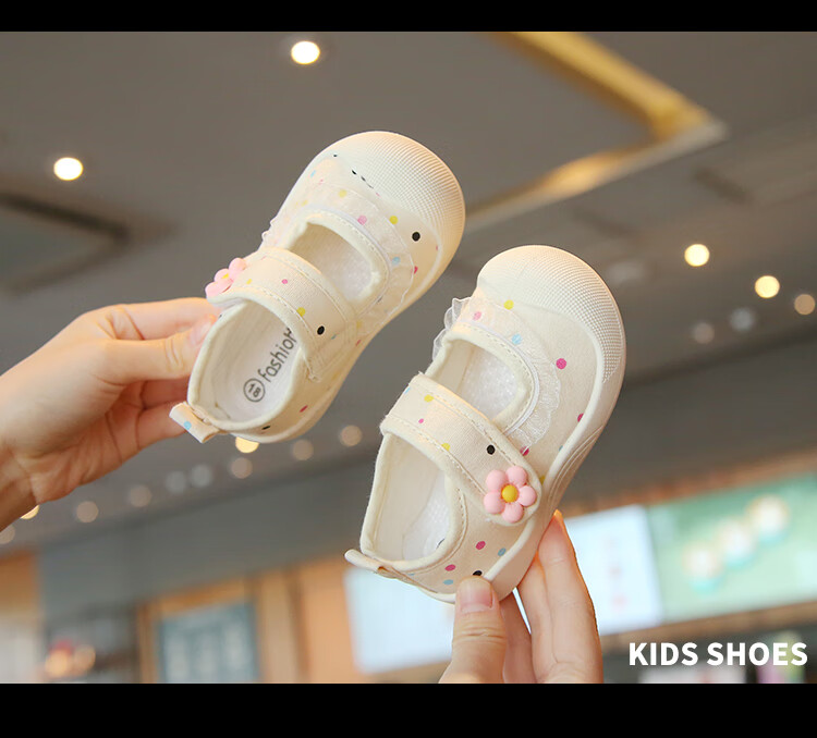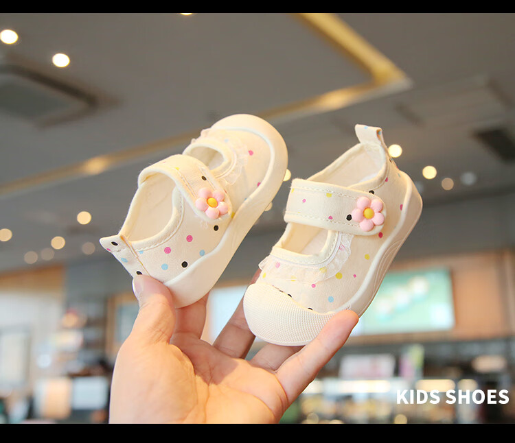 Spring and summer single shoes, breathable and sweat-absorbent, children's canvas shoes for 1-3 years old, girls' shallow sneakers, baby non-slip cloth shoes, light color, beige 21, inner length 13.5cm