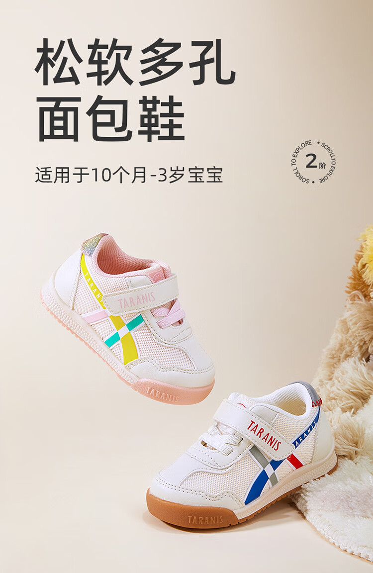 Terranis Autumn and Winter Children's Shoes for Girls Baby Soft Sole Toddler Shoes Boys' Sports Shoes Mesh Breathable Bread Shoes White/Blue Autumn Microfiber 26 Inner Length 16.5cm Foot Length 15.5cm