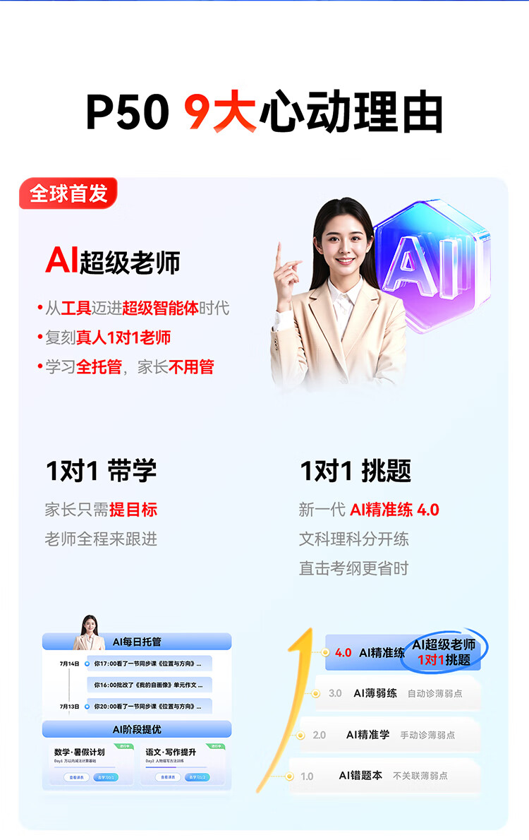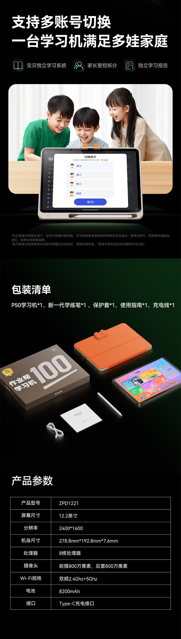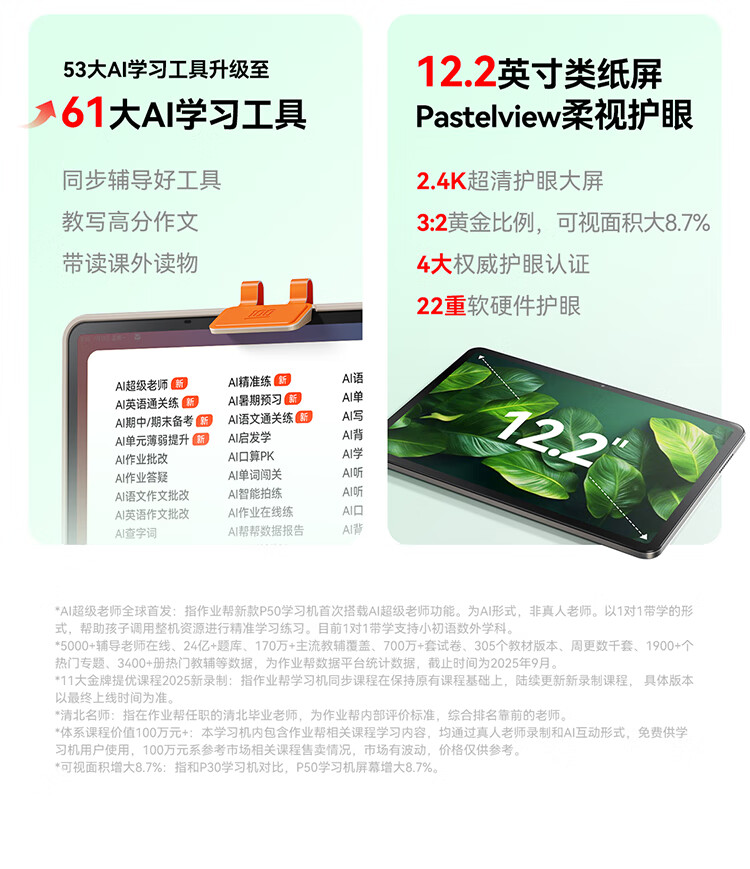 Homework Helper Learning Machine P50 Guaranteed Double 11 AI Super Teacher 1 to 1 Primary School to High School Textbook Synchronous Homework Correction BZ23A Eye-Protect Large Screen AI Learning Machine Homework Helper Learning Machine P50 6+256G