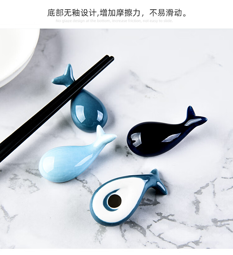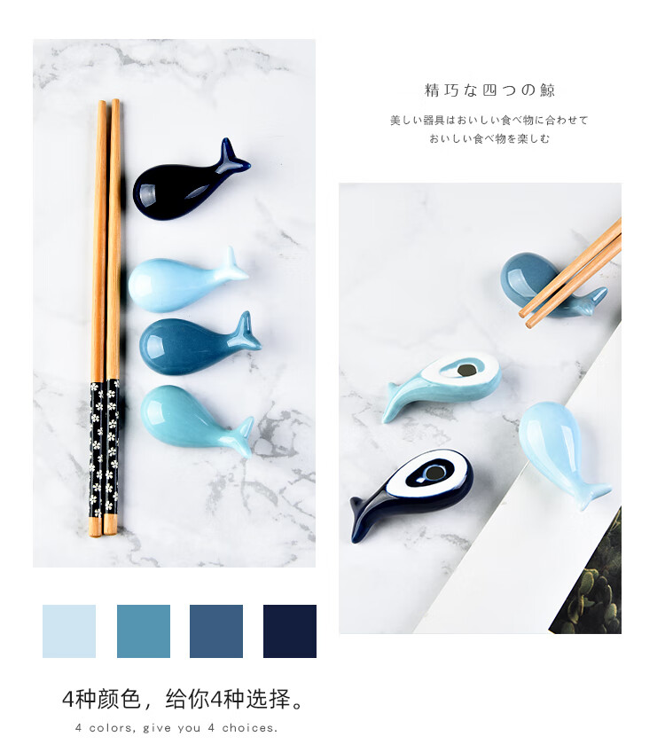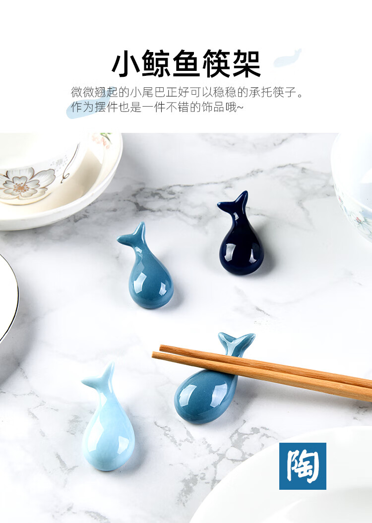 MZXM Japan imported quality 4 pack creative cute spoon holder spoon holder whale ceramic chopstick holder chopstick holder chopstick pillow home use sapphire blue 1 pack