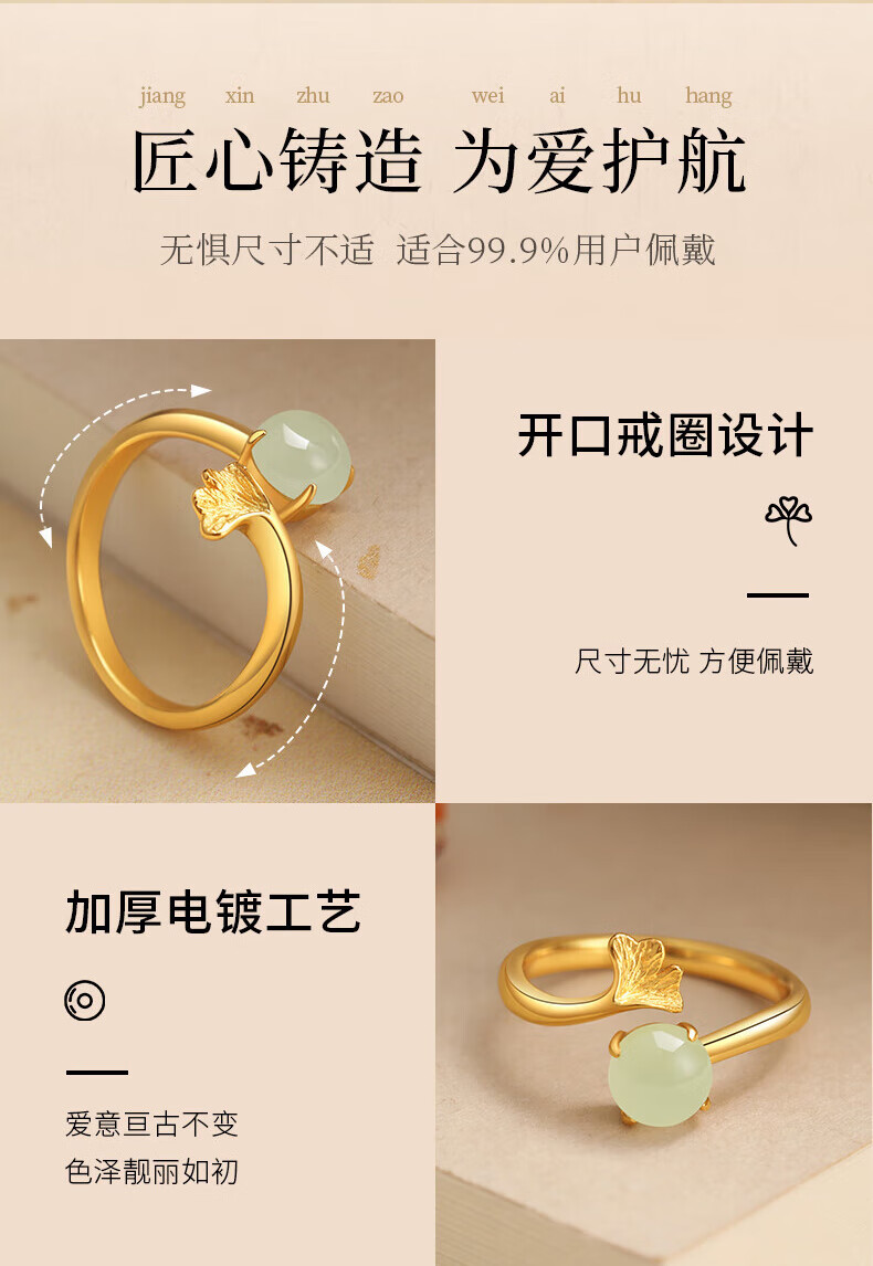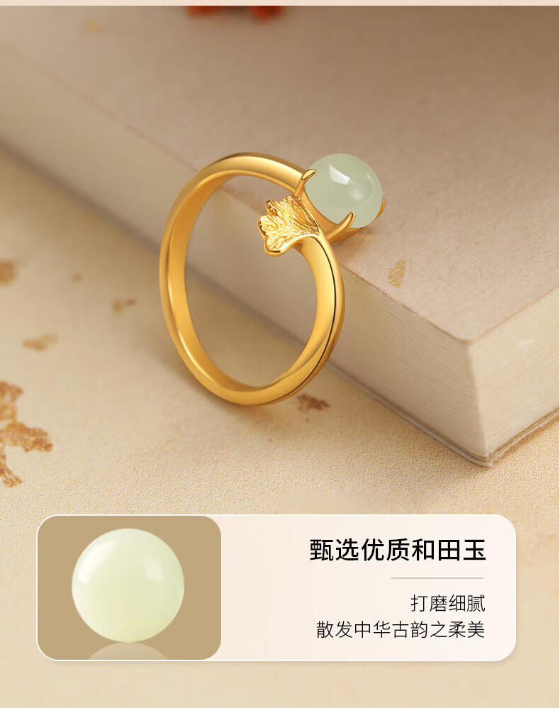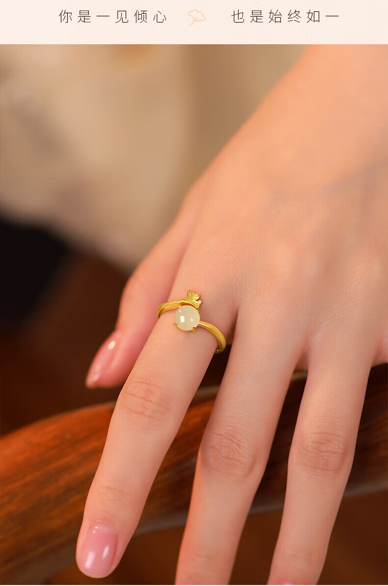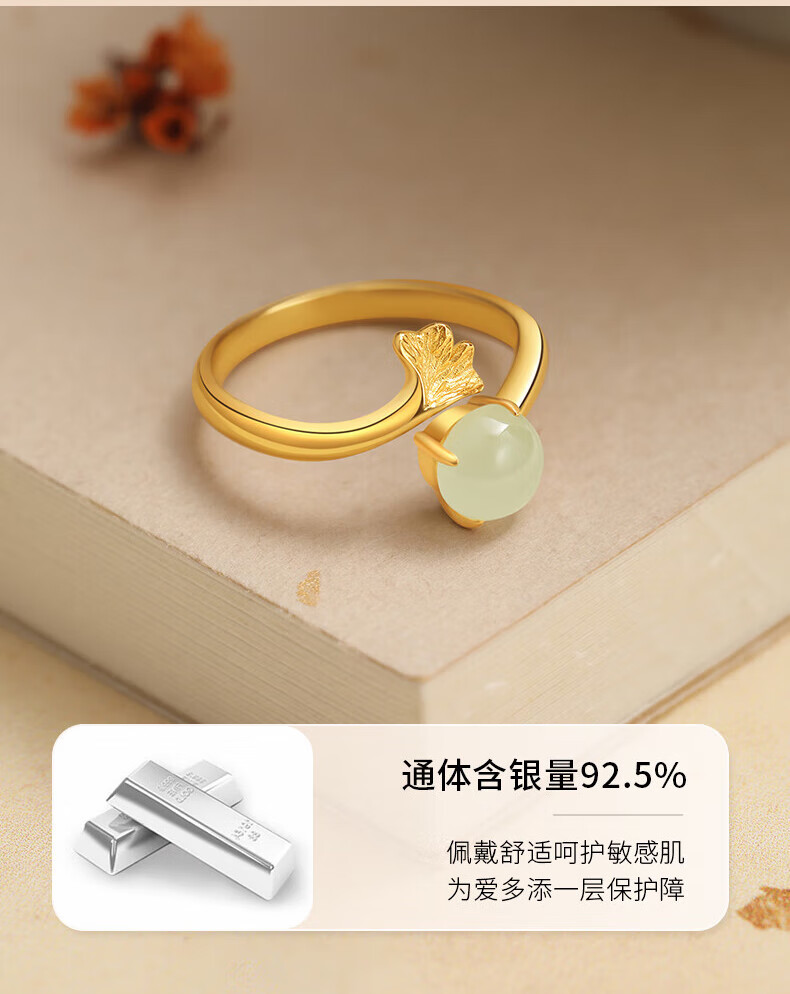 Lao Fengxiang S925 sterling silver Sansheng lucky ring women's Wada jade single ring birthday gift, fast delivery *Jingdong Bakura/Nearest delivery