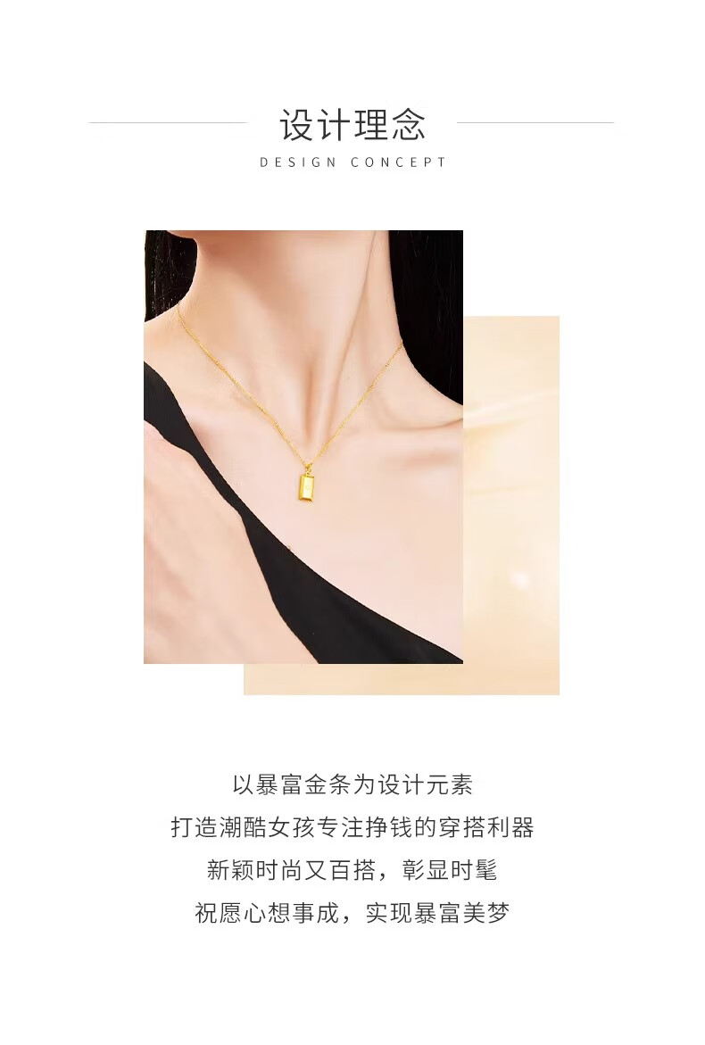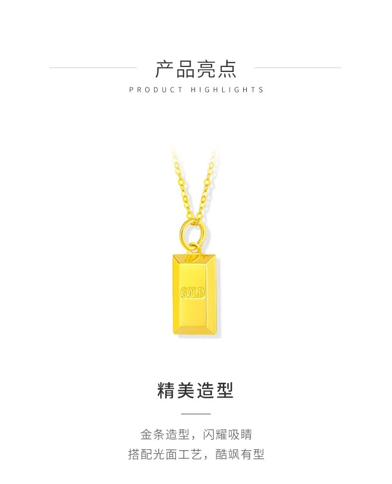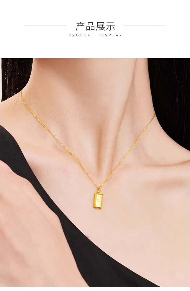 China Gold (CHINA GOLD) 18K gold small gold bar pendant for women, new gold brick necklace, Valentine's Day birthday gift for girlfriend and wife, 18K gold small gold bar pendant, free sterling silver chain + brand gift box, about 0.22 grams