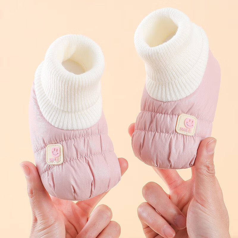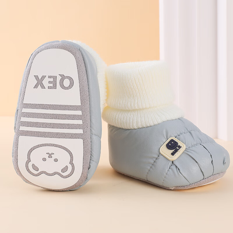 Baby shoes autumn and winter baby toddler shoes thickened with velvet and warm for men and women newborn shoes 6-12 months, smiley coffee color, velvet and waterproof 13, inner length 13cm, L size, 10-13 months