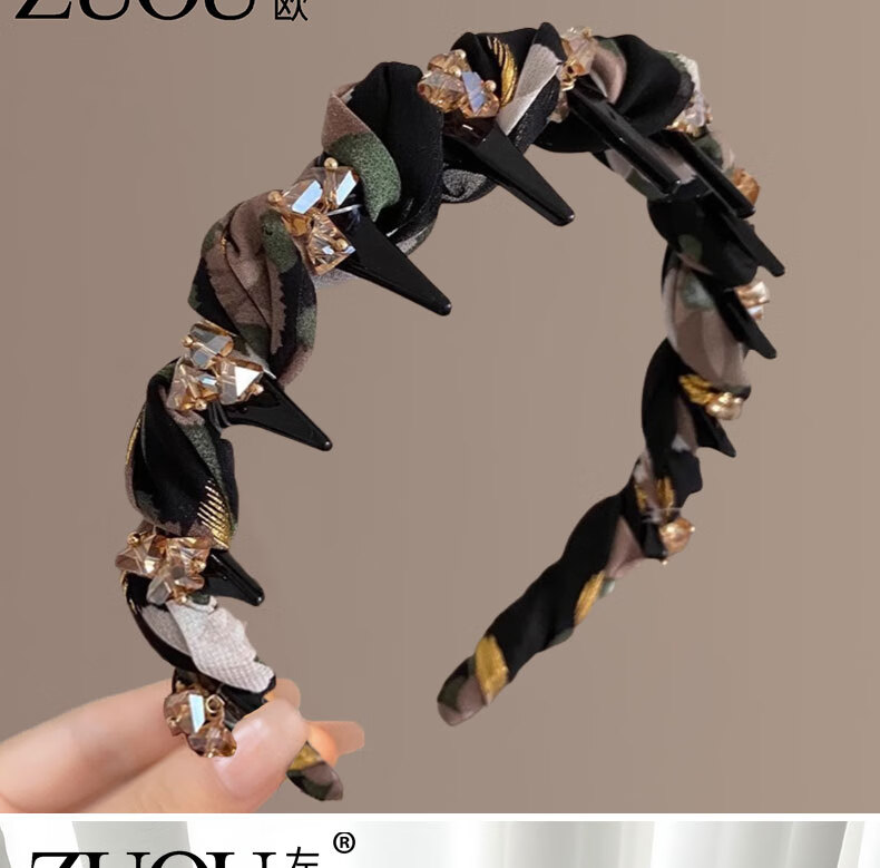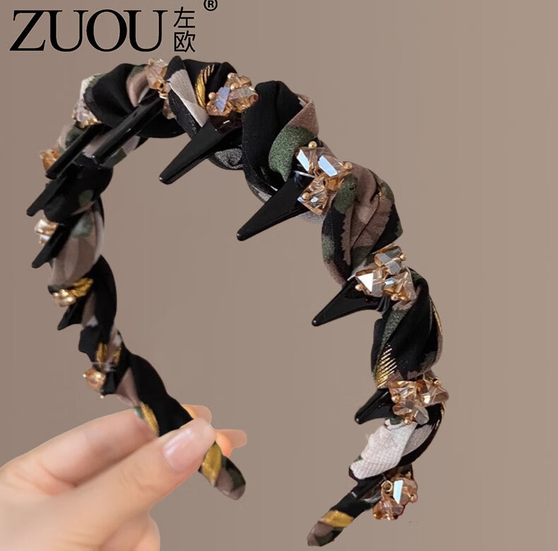 Zuoou Princess of Paris headband high skull headband women's high-end fashion ink painting toothed rhinestone headband hairpin headdress ink drill headband
