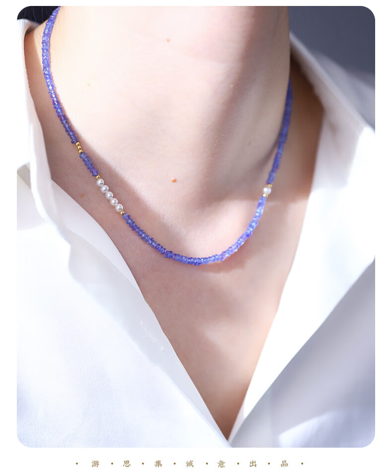DYAI natural colored treasure high-grade Rhine blue tanzanite necklace women's fashion light luxury temperament gold clavicle chain Mengliuguang high-end full body tanzanite