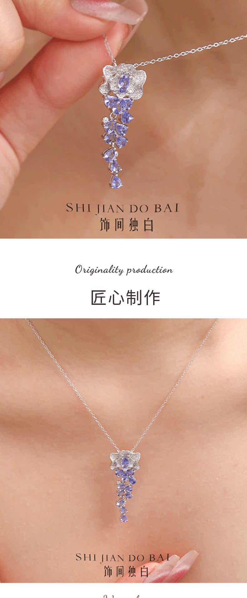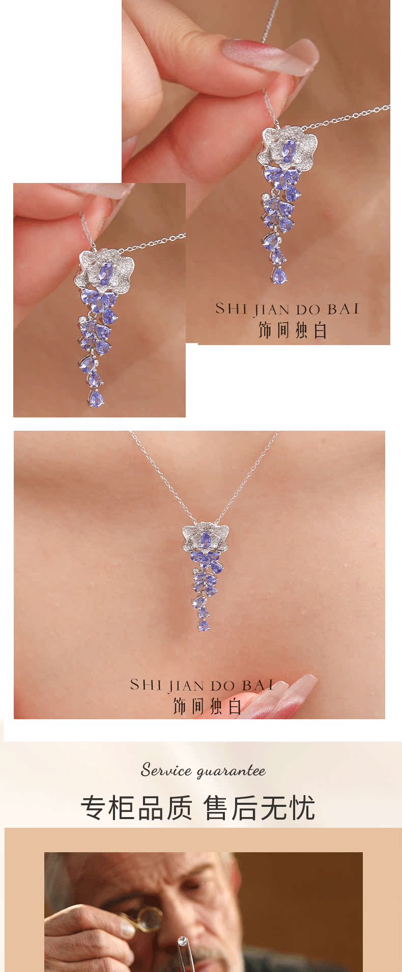DYAI natural tanzanite necklace for women 925 silver inlaid original design coconut tree simple clavicle chain pendant tanzanite necklace