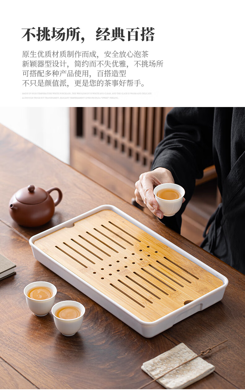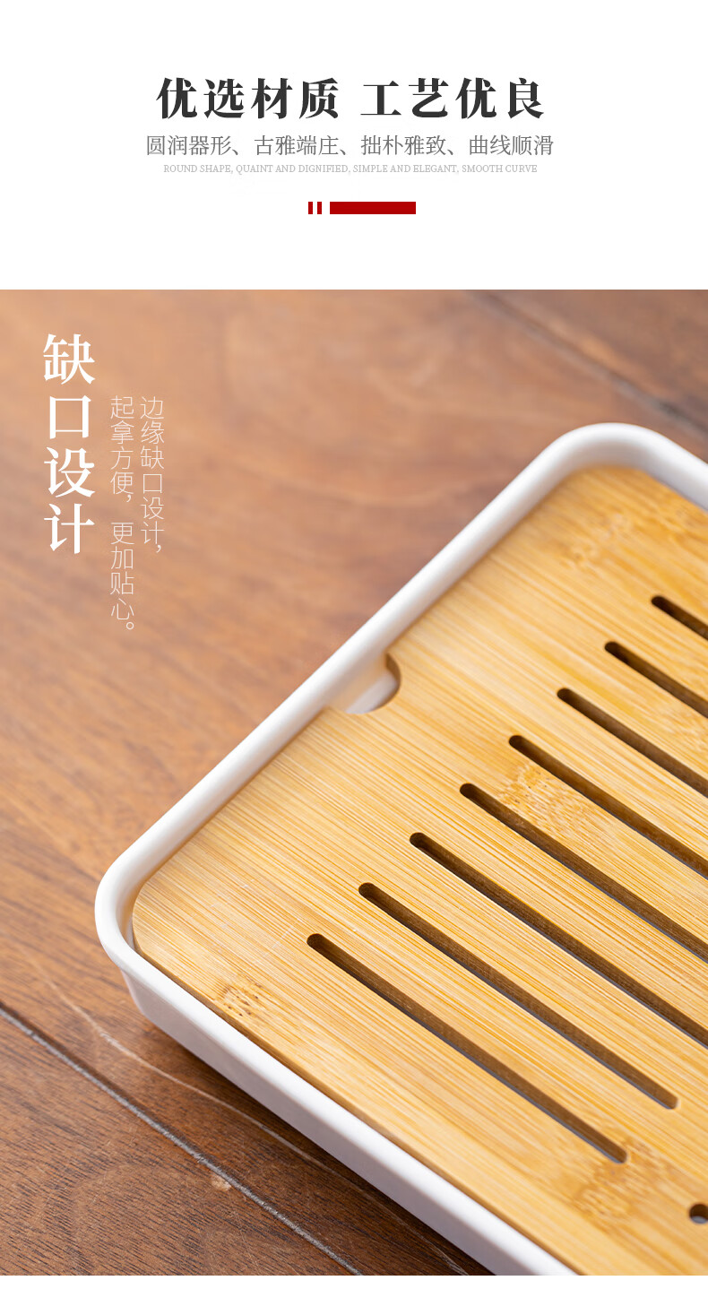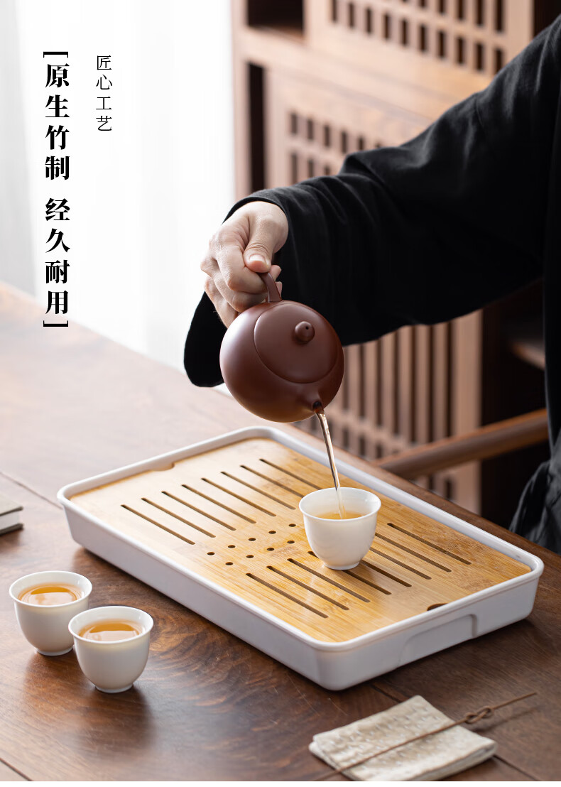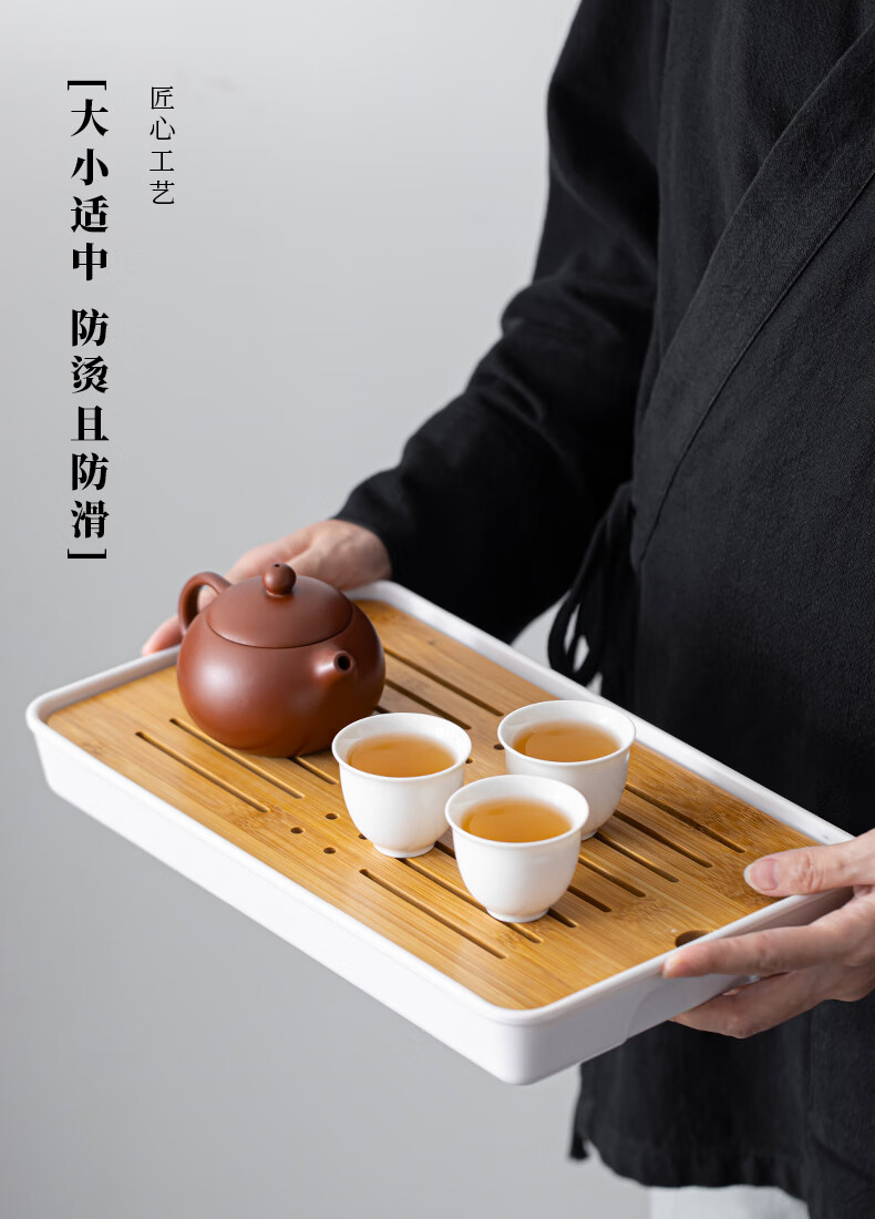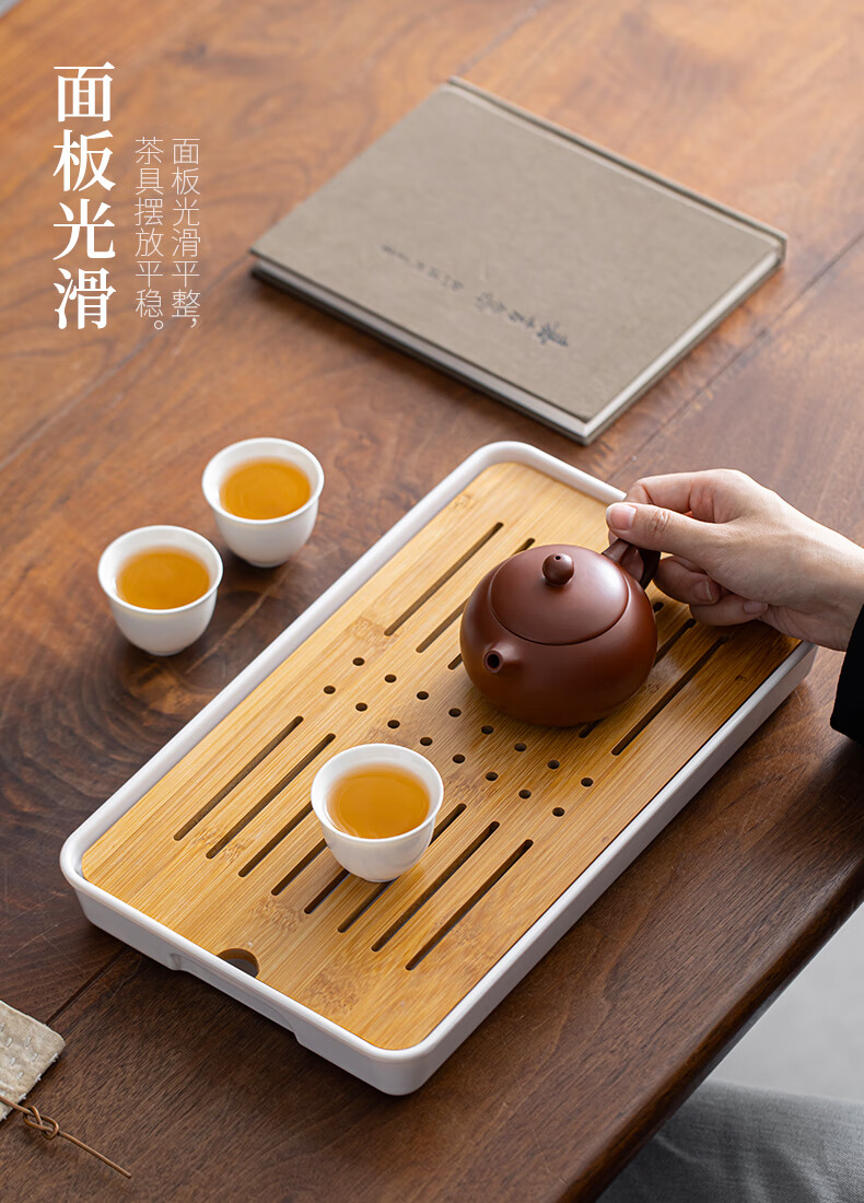 Bamboo tea tray household simple small tea table drain tray tea tray tea set saucer tea sea Kungfu tea small Xingyunzhong tea tray white 32*18 water storage type
