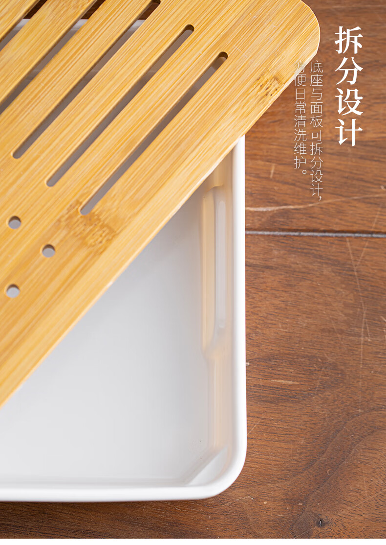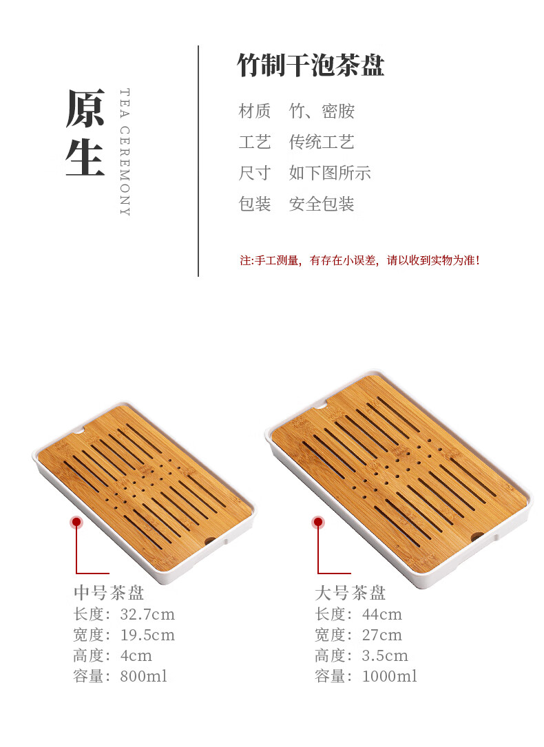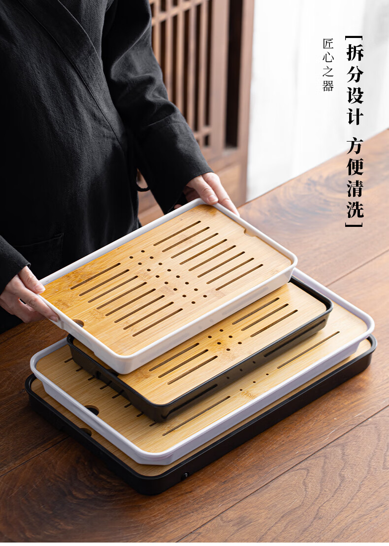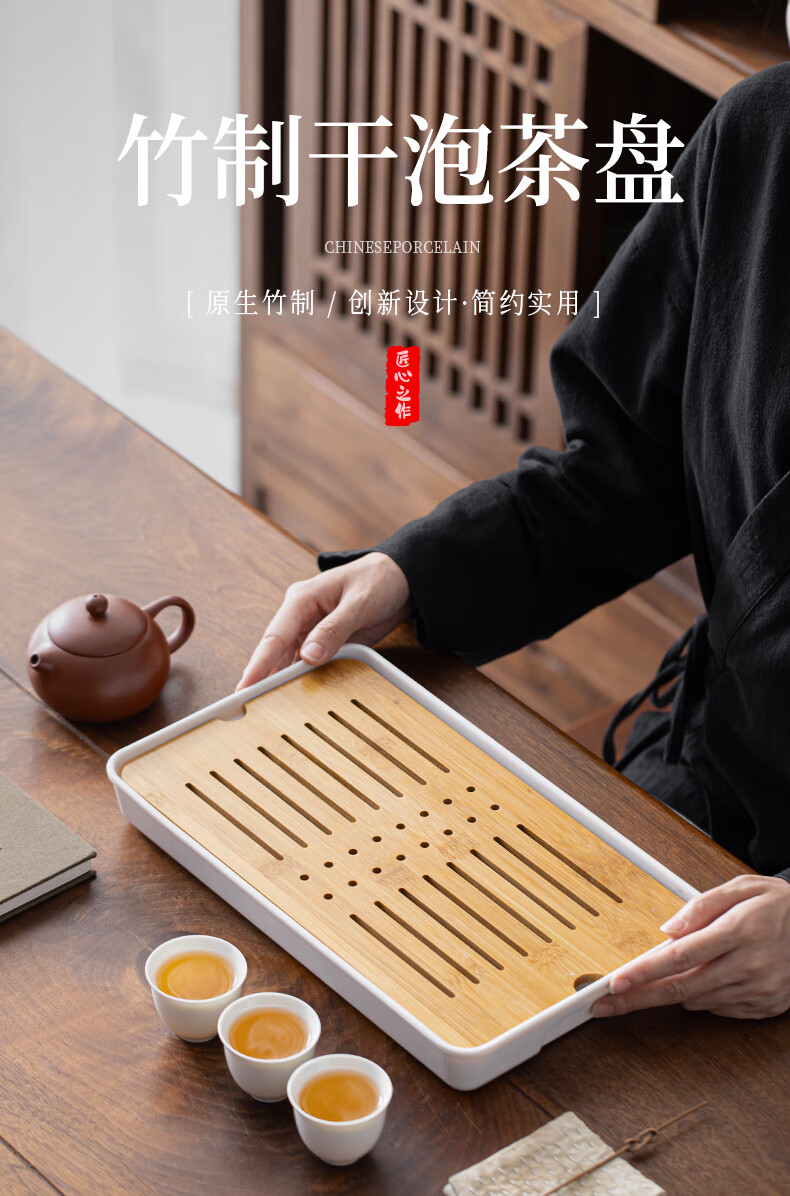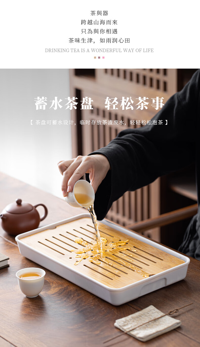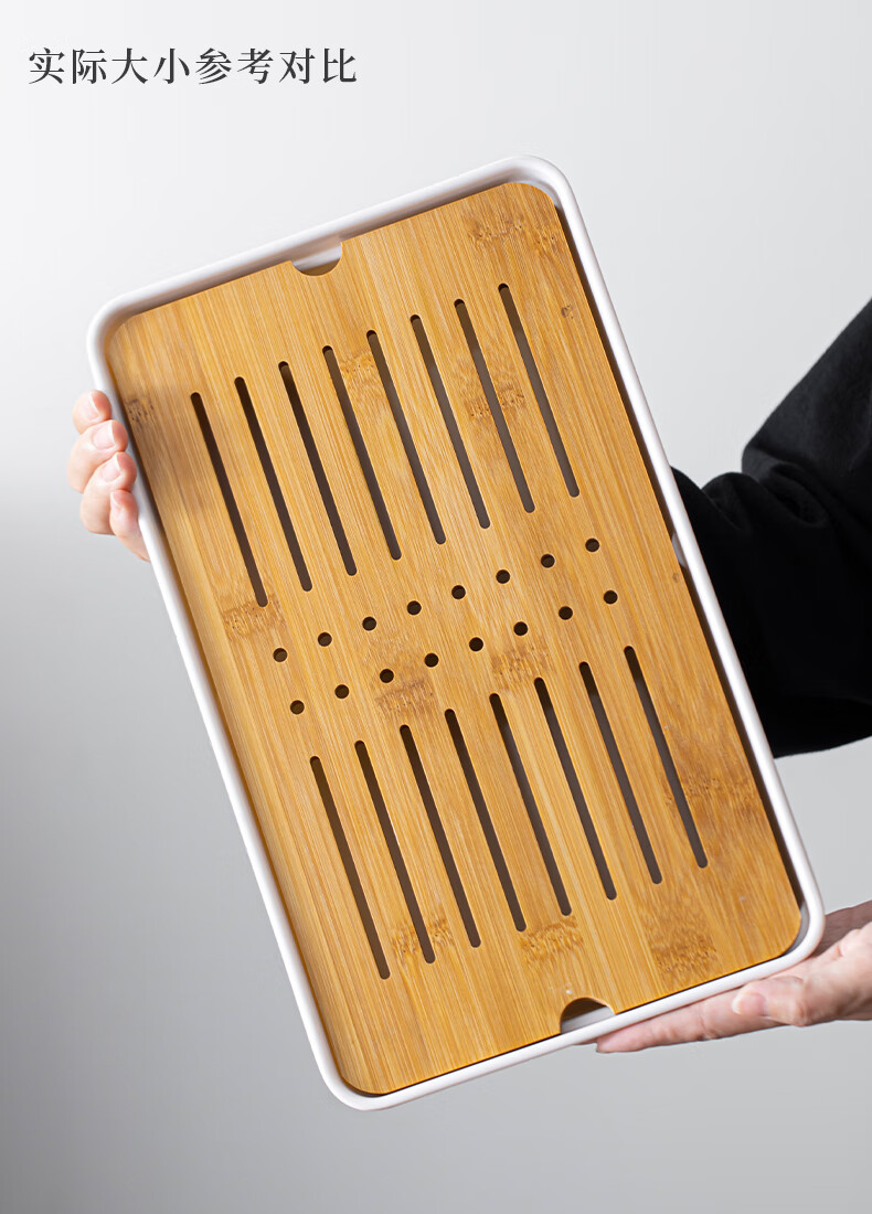 Bamboo tea tray household simple small tea table drain tray tea tray tea set saucer tea sea Kungfu tea small Xingyunzhong tea tray white 32*18 water storage type