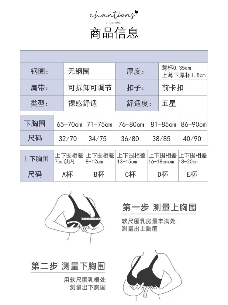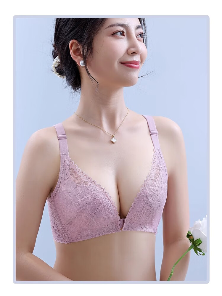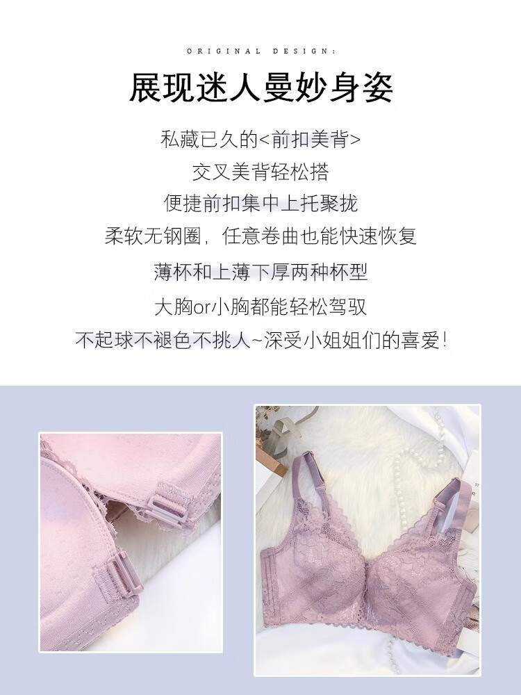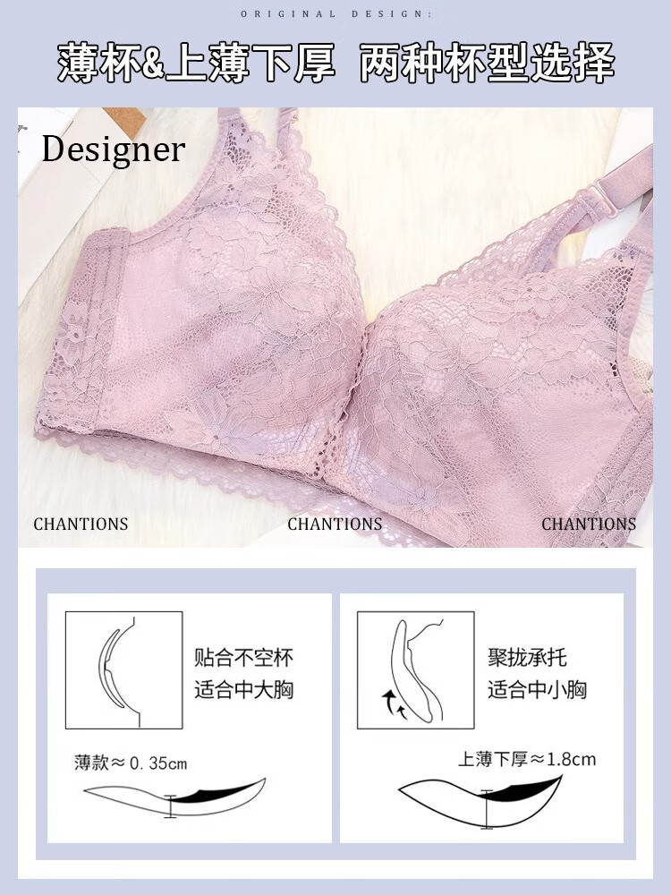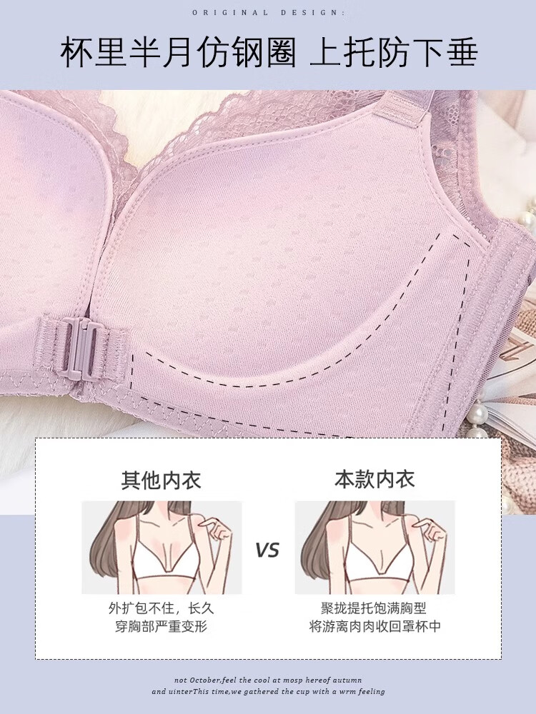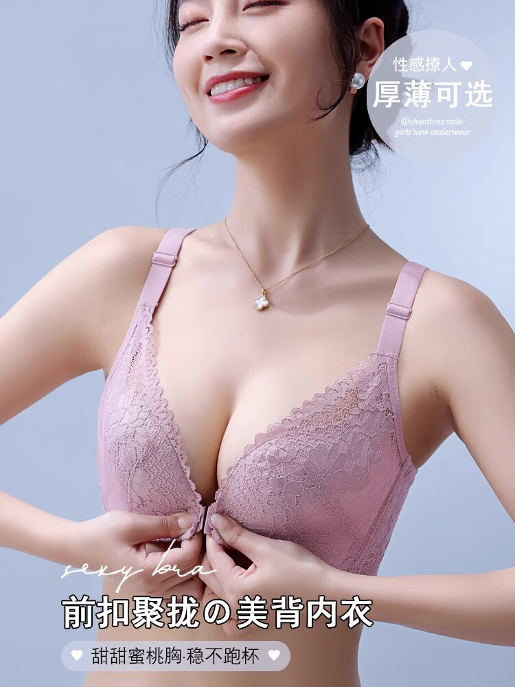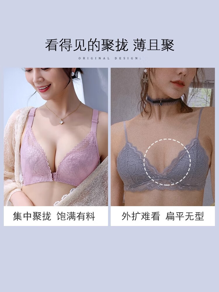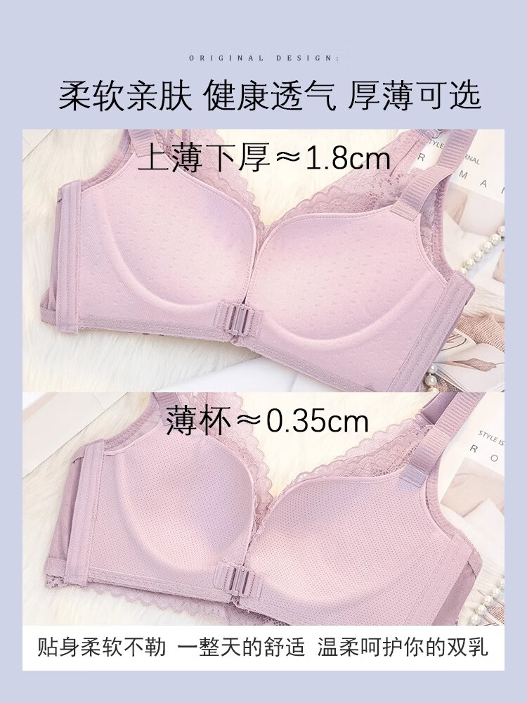 CURMOI 2 pieces front button bra, beautiful back underwear for women, thick style, small breasts look bigger/thin style, big breasts look smaller, anti-sagging, large size, light gray, a set including underwear, limited edition XL 38/85AB 2cm, thin at the top and thick at the bottom