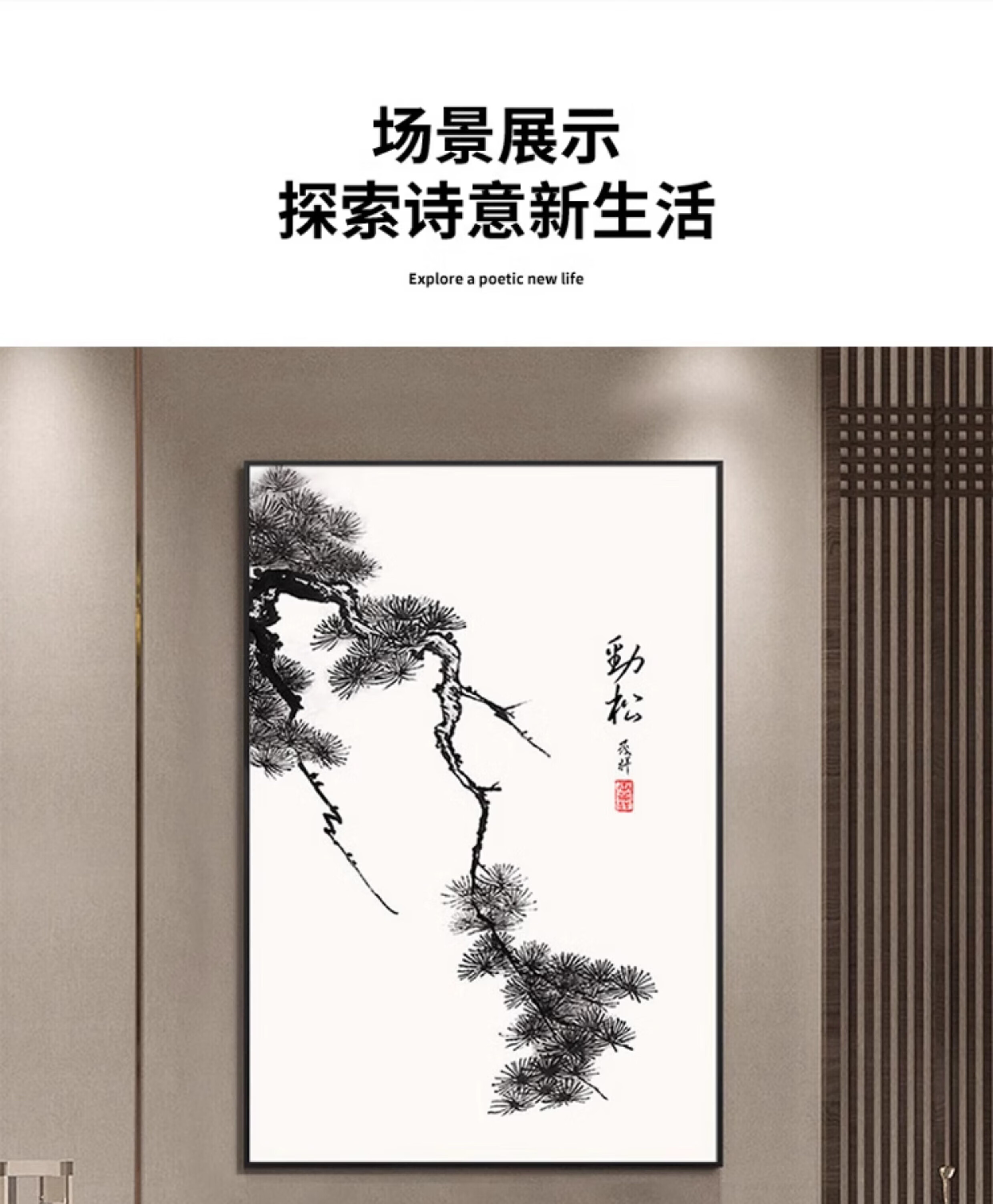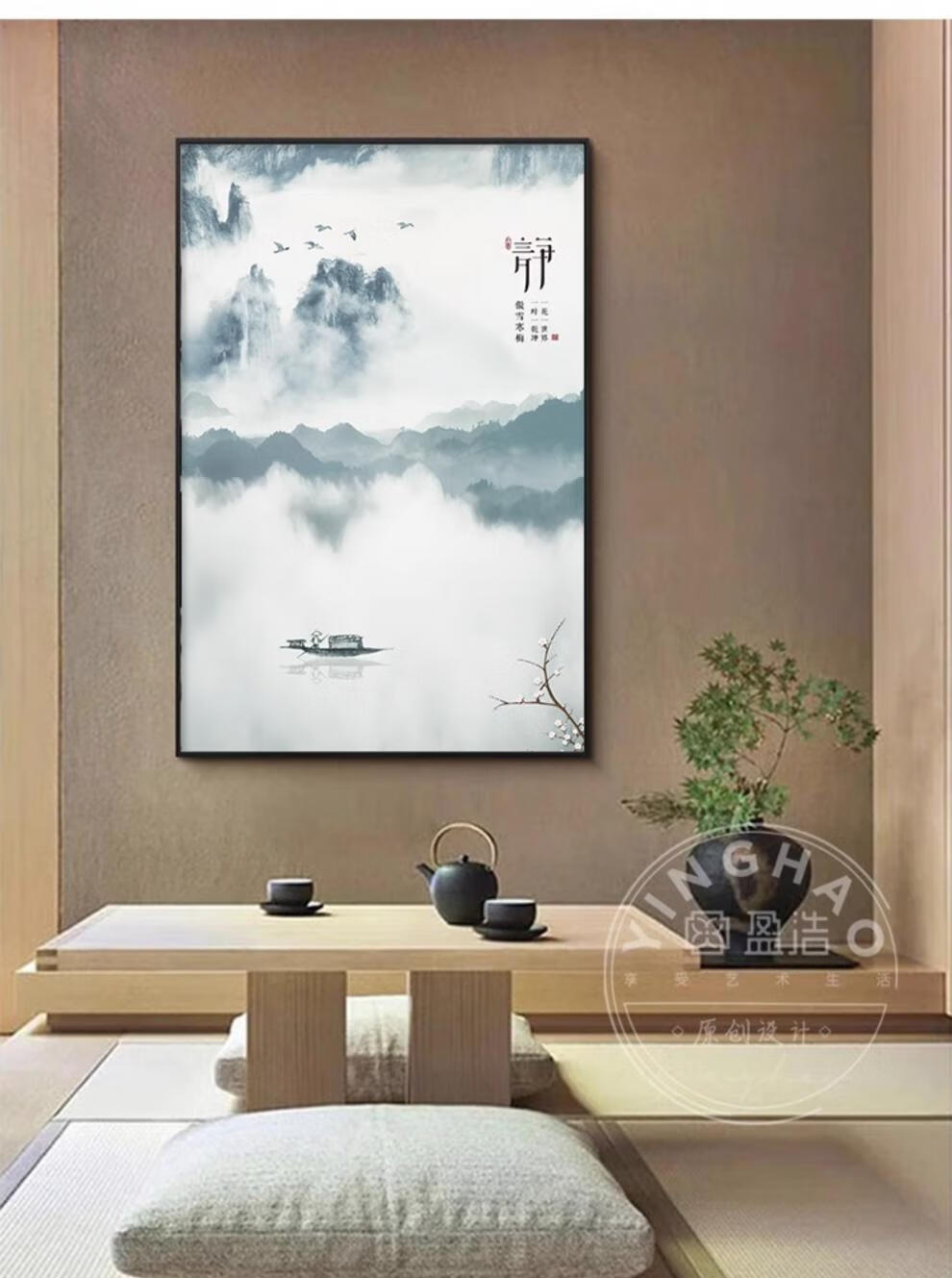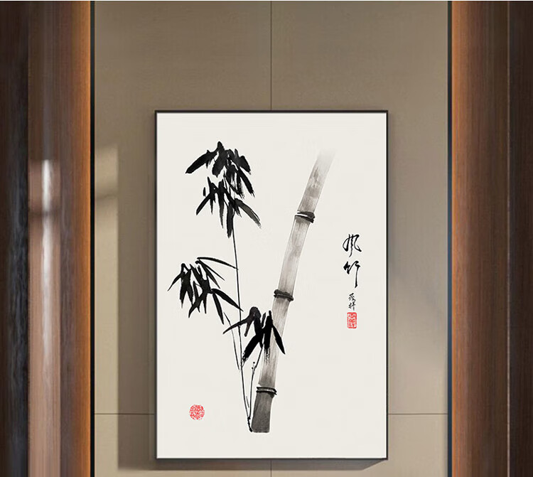 Detian calligraphy and painting living room decorative painting background wall bamboo hanging painting tea room calligraphy and painting mural Chinese painting office wall hanging ink painting wall L type - running water makes money black frame 60cm wide * 80cm high definition texture picture