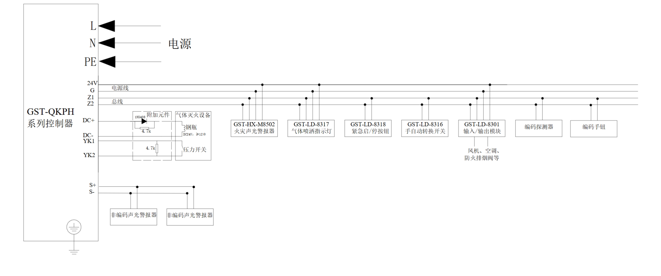 Gulf gas alarm host GST-QKP01H gas fire extinguishing controller complete set of gas fire extinguishing host one zone QKP01H gas fire extinguishing/fire controller