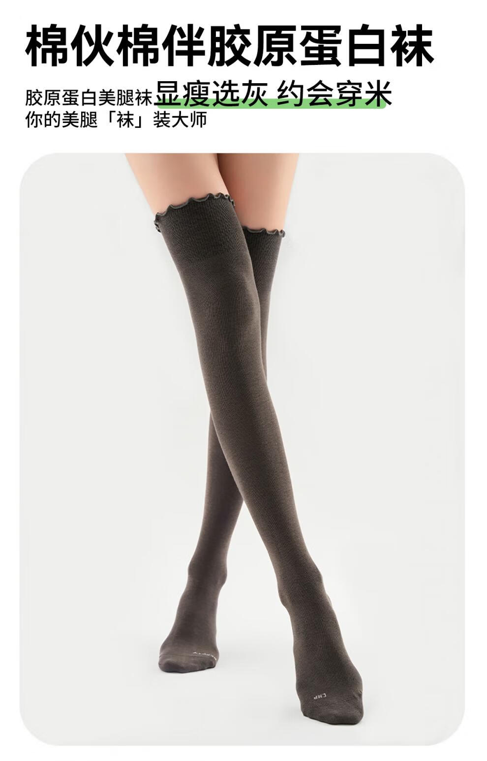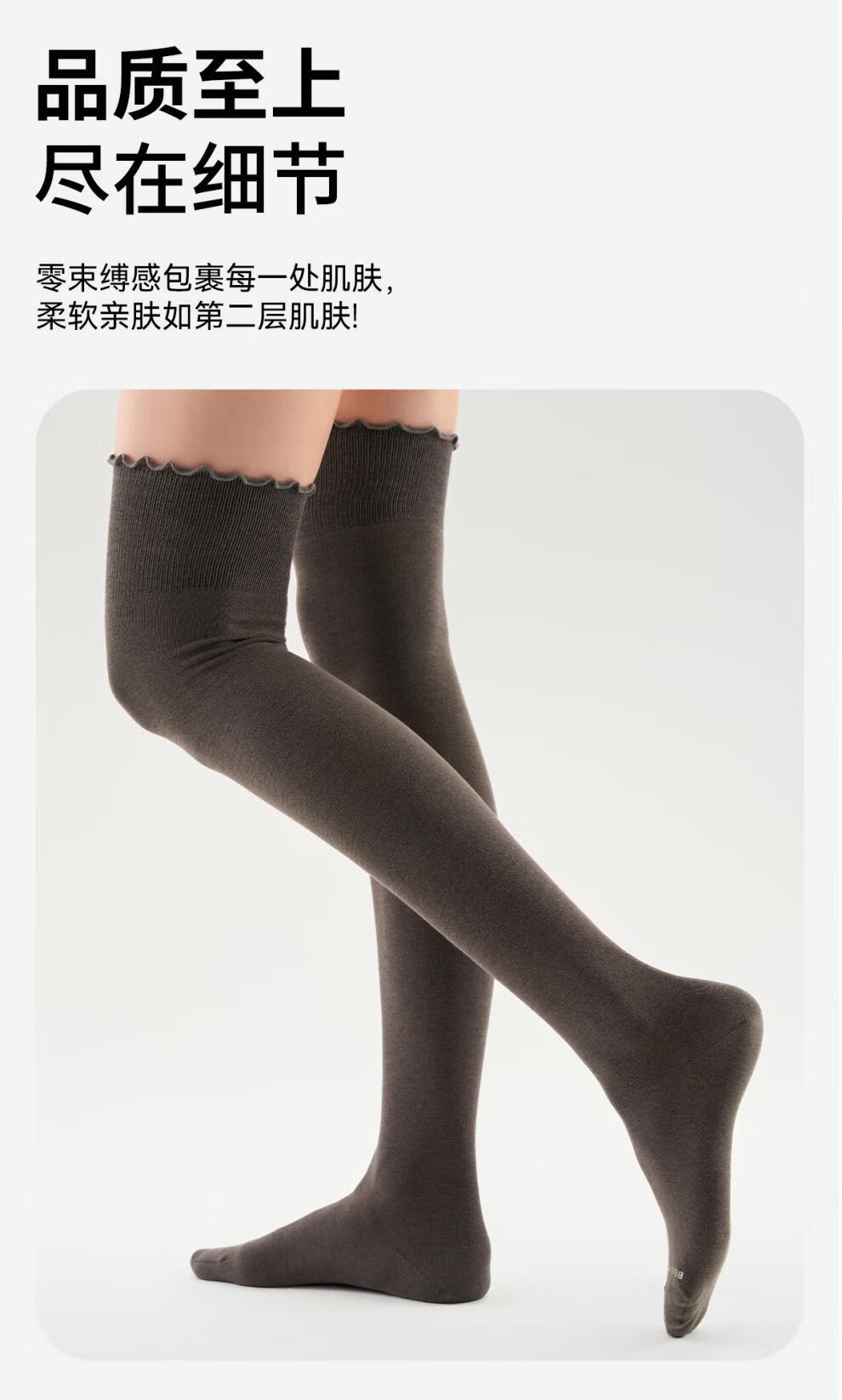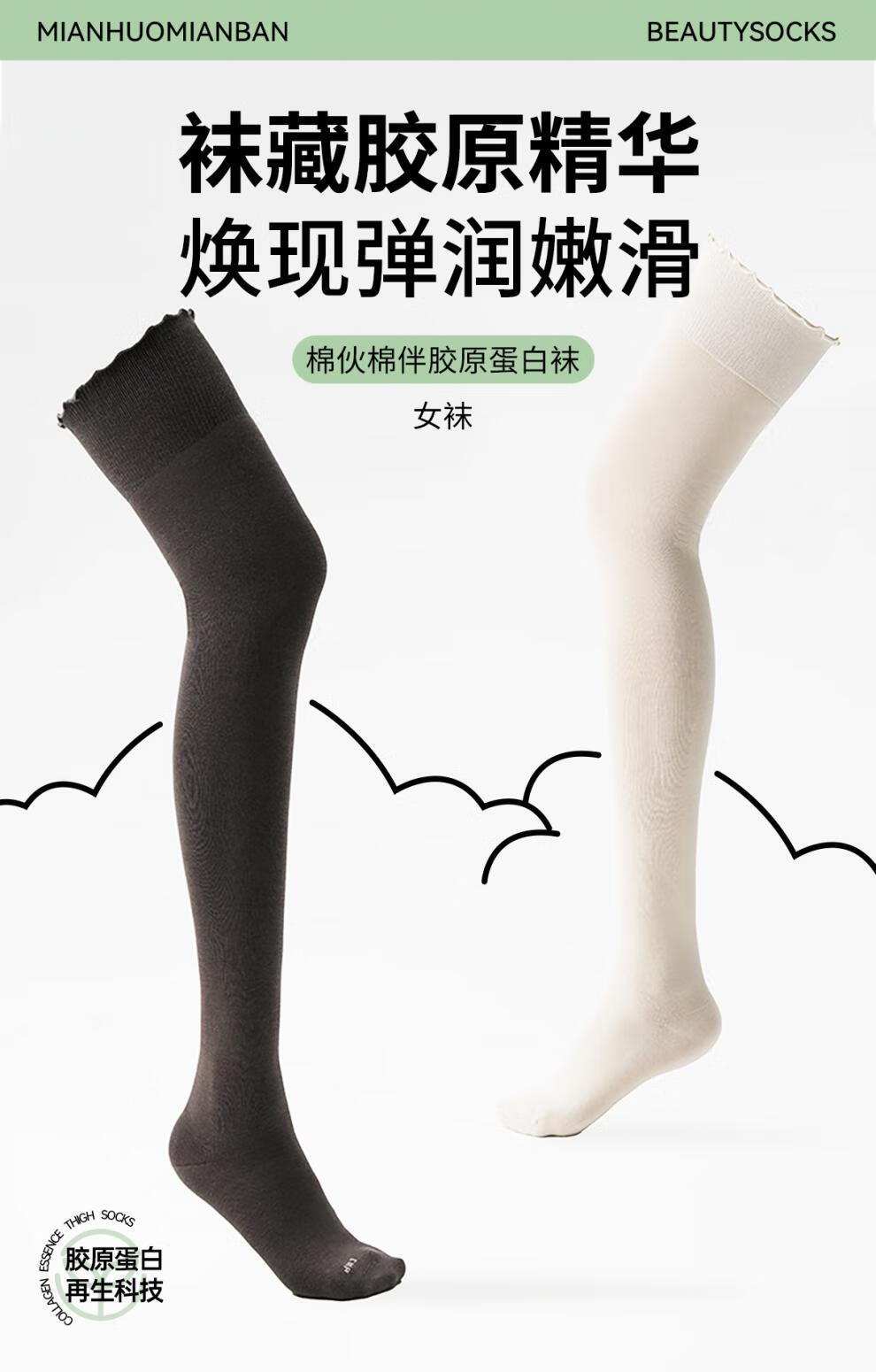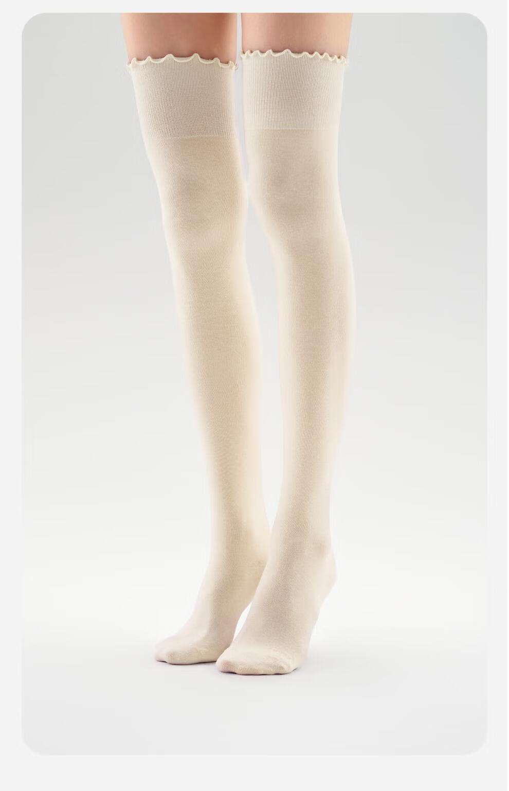 MIHOCOT INTELLIGENT TEXTILE TECHNOLOGY Cotton Partner Thigh Socks Women's One Size Colored Socks Cotton Socks Breathable Sports Simple Over-the-Knee Socks Beige Pack 2 Pairs